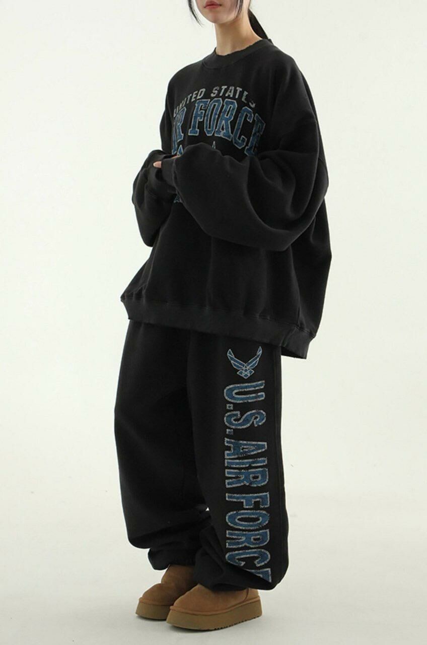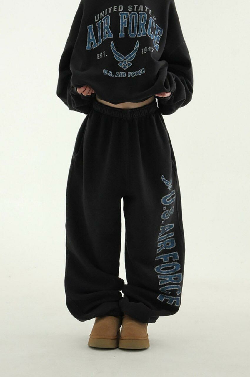 洗水英文字束腳鬆身運動褲(薄抓毛底) ARCHIVE-275P