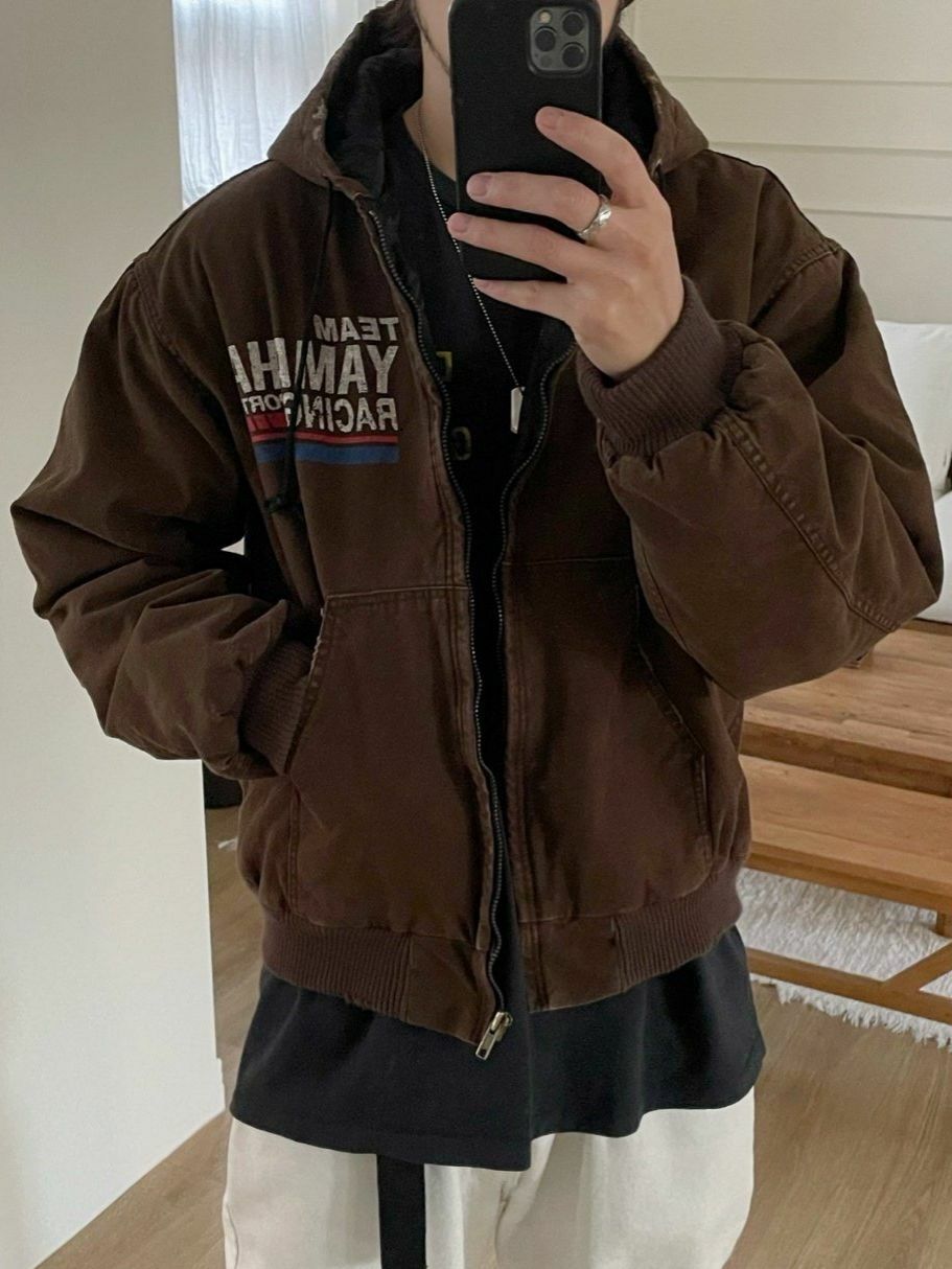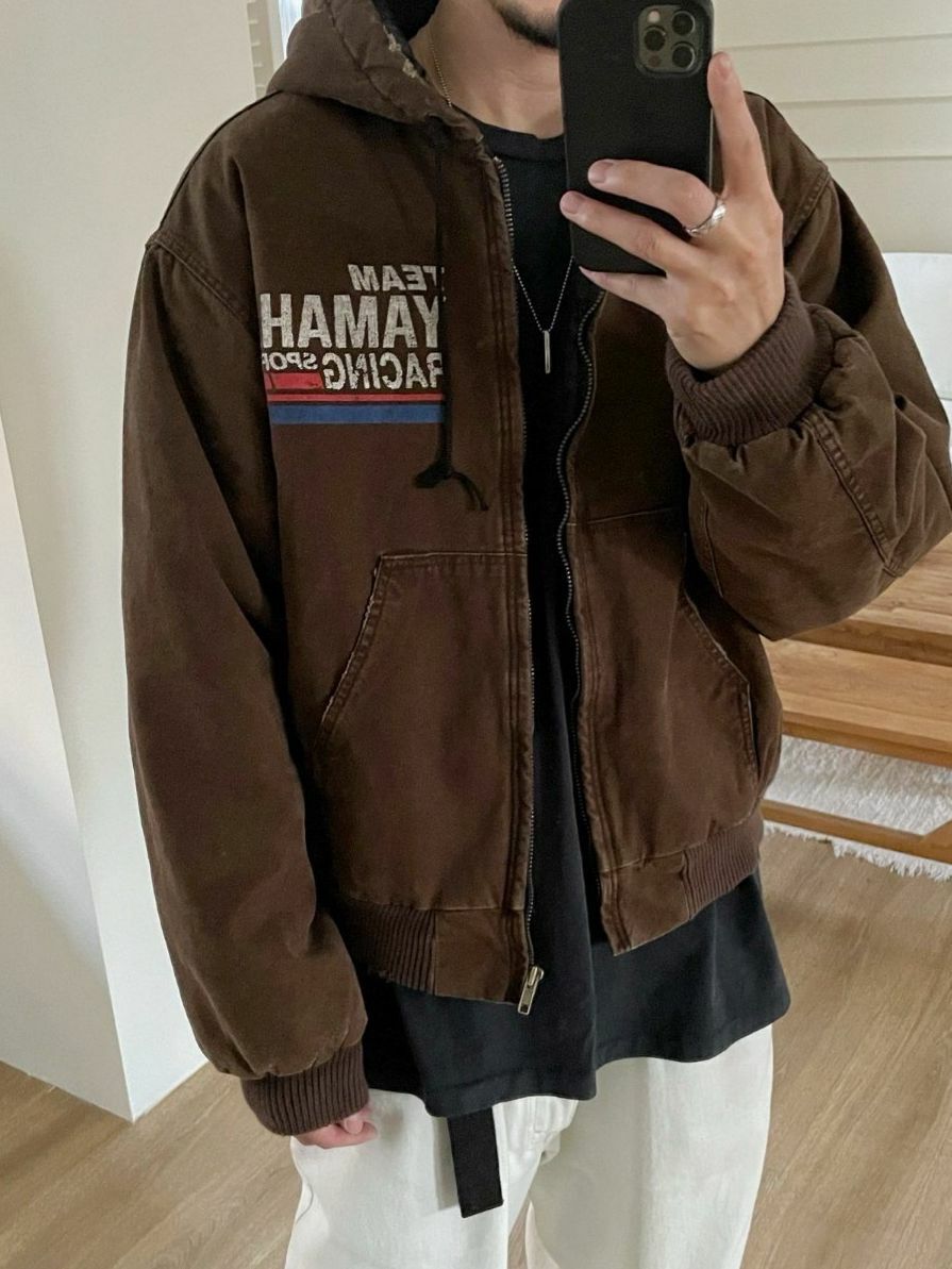 洗水英文字連帽拉鍊外套(夾棉) ARCHIVE-287JK