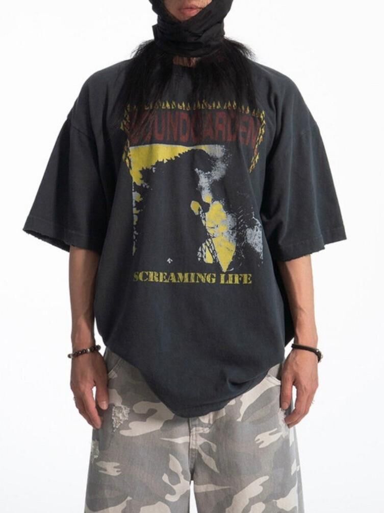 洗水英文字圖案短袖Tee ARCHIVE-362T