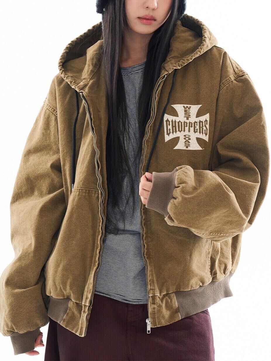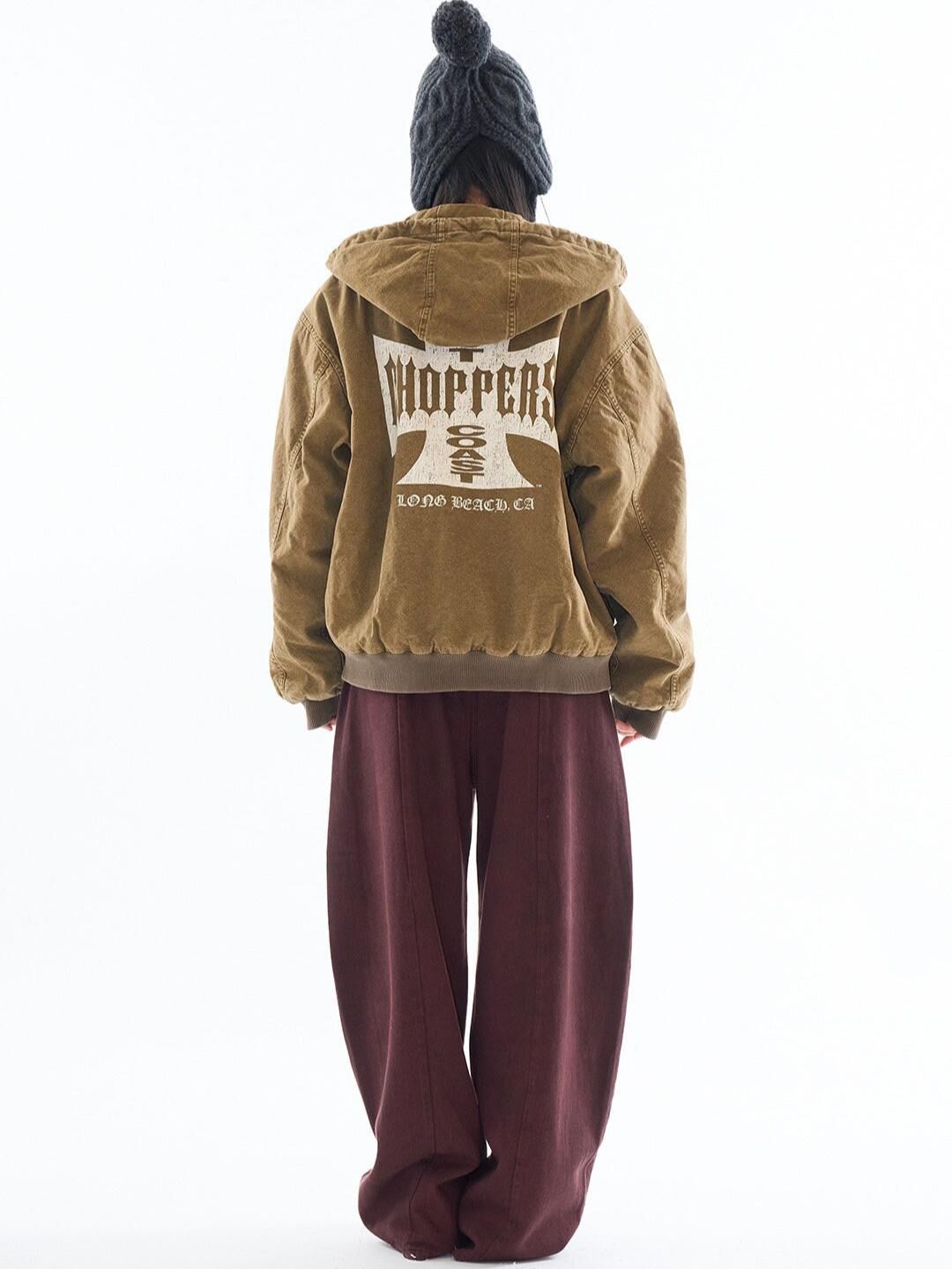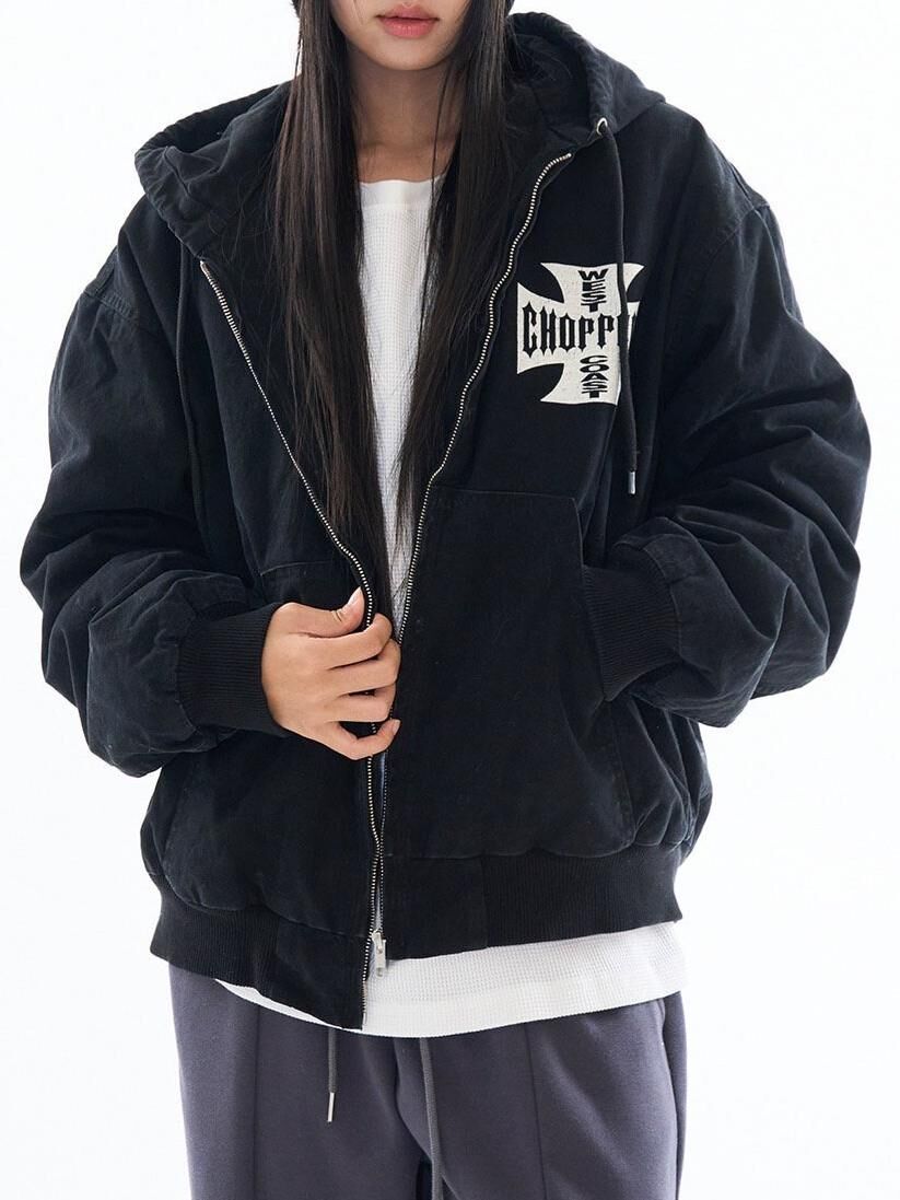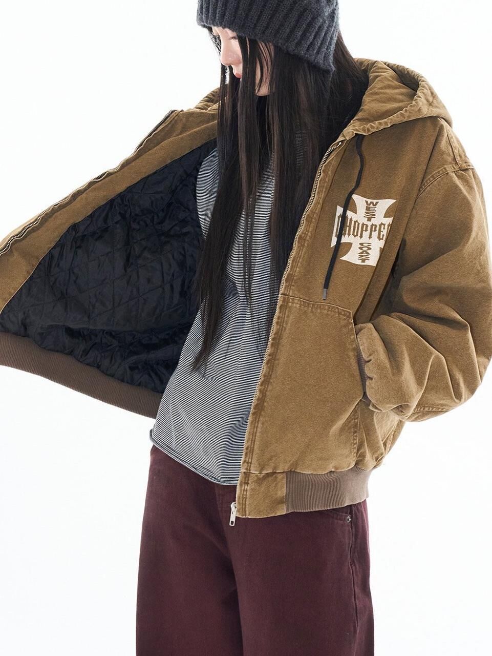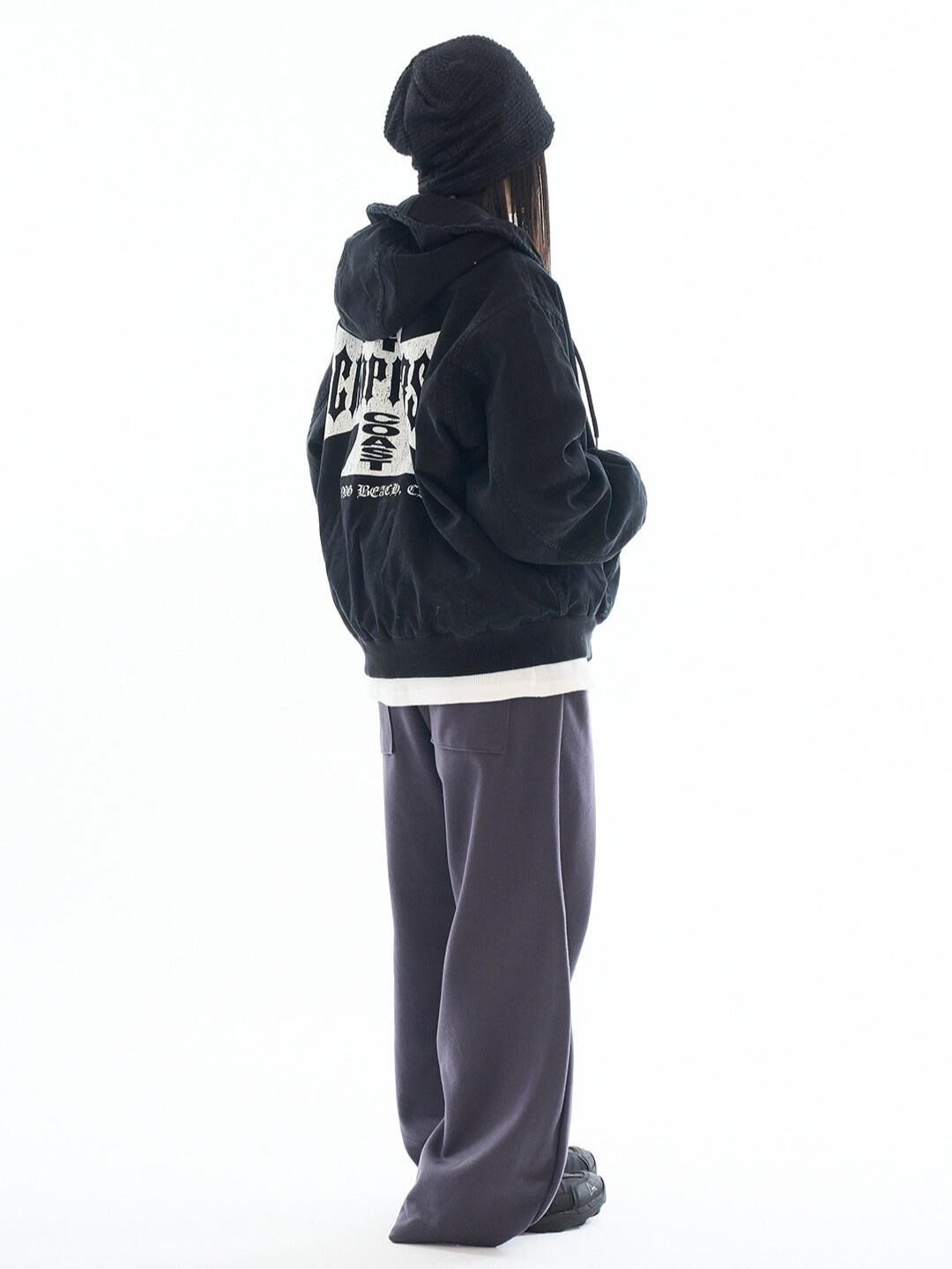 洗水英文字連帽拉鍊外套(薄夾棉) ARCHIVE-396JK