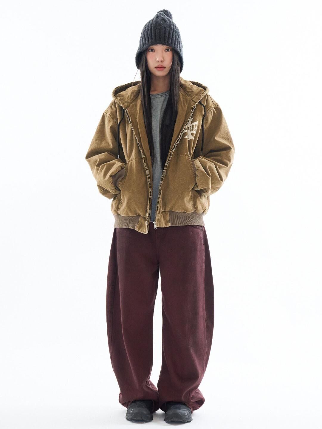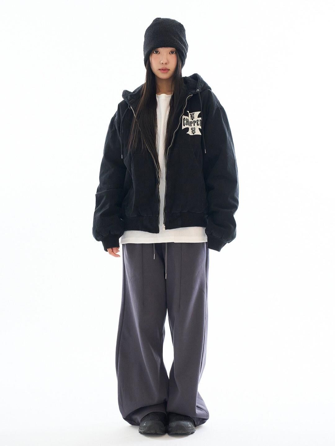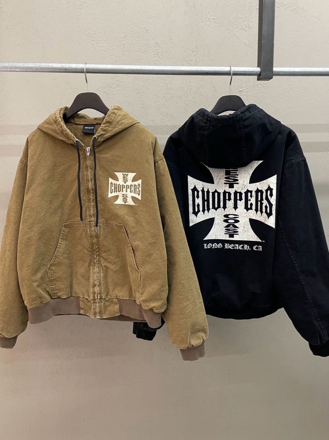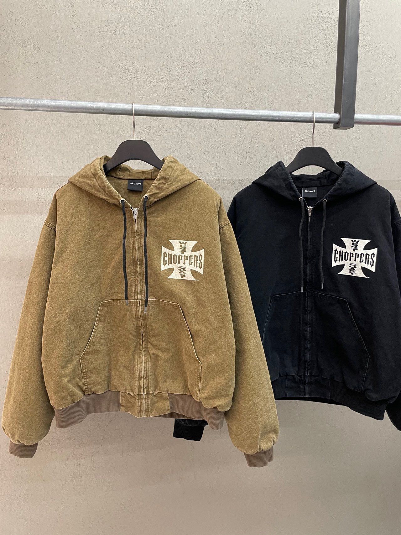 洗水英文字連帽拉鍊外套(薄夾棉) ARCHIVE-396JK