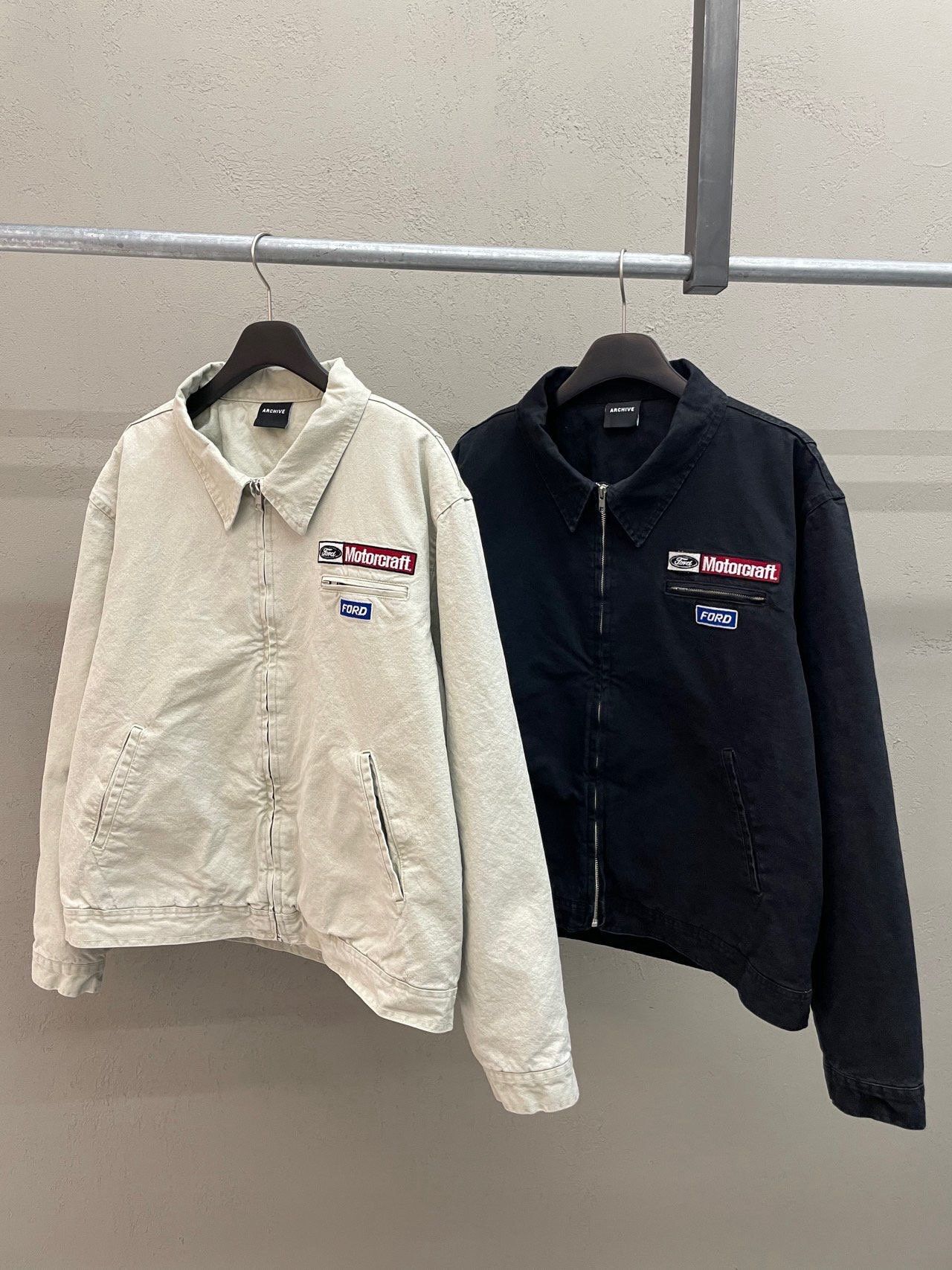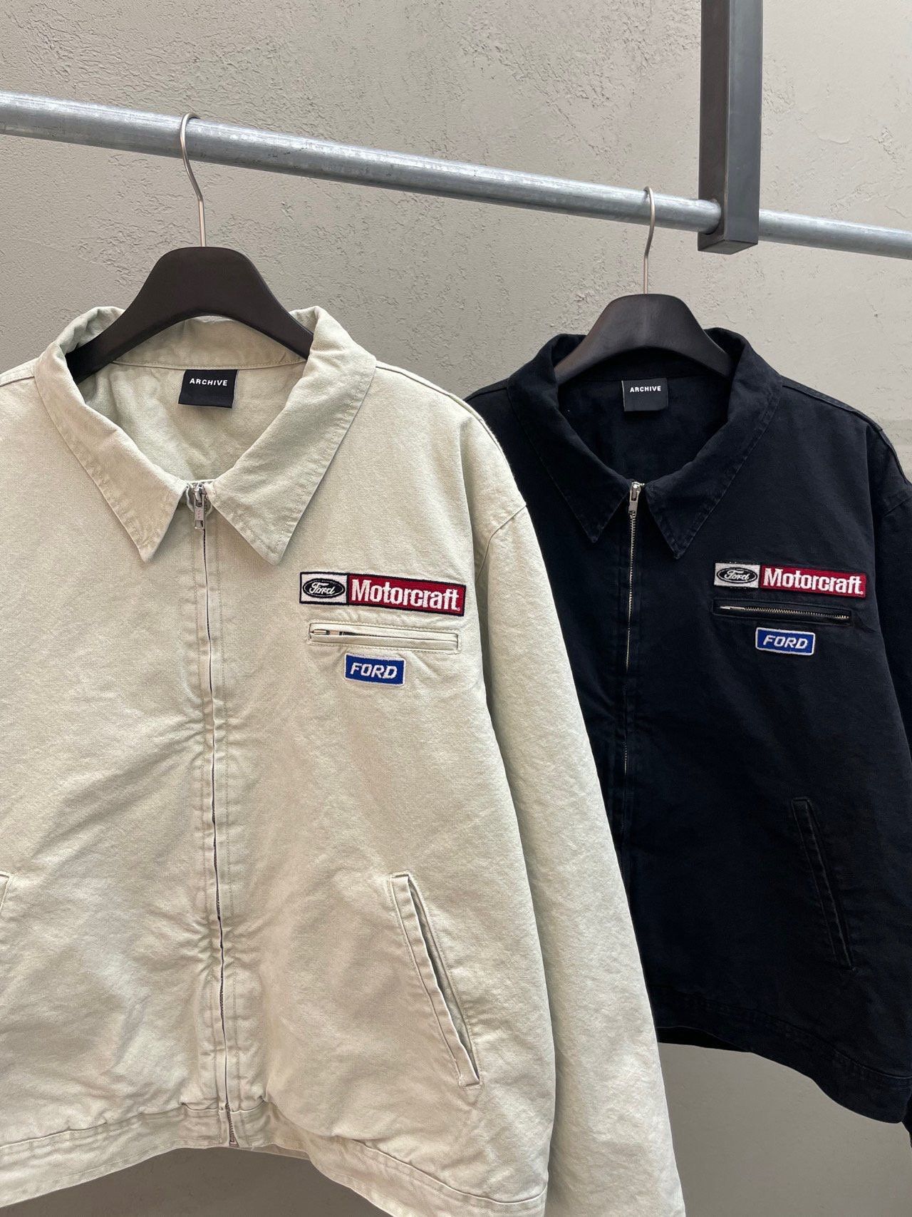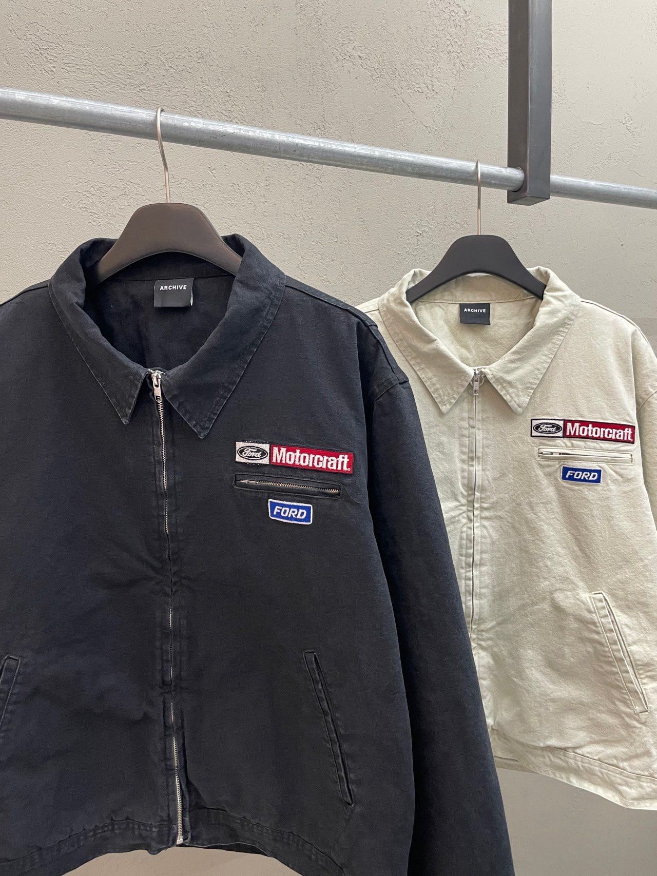洗水反領英文字拉鍊外套 ARCHIVE-403JK