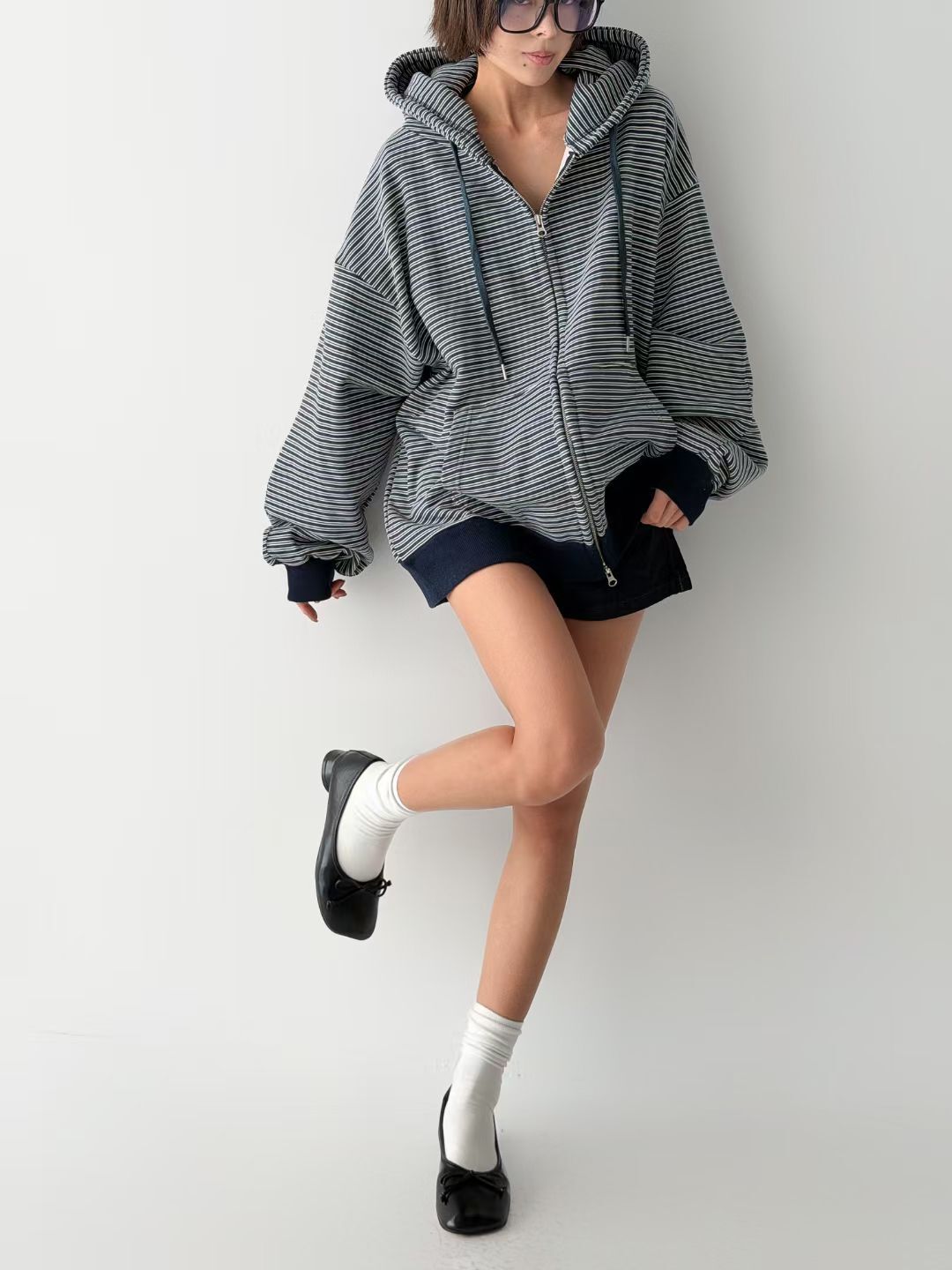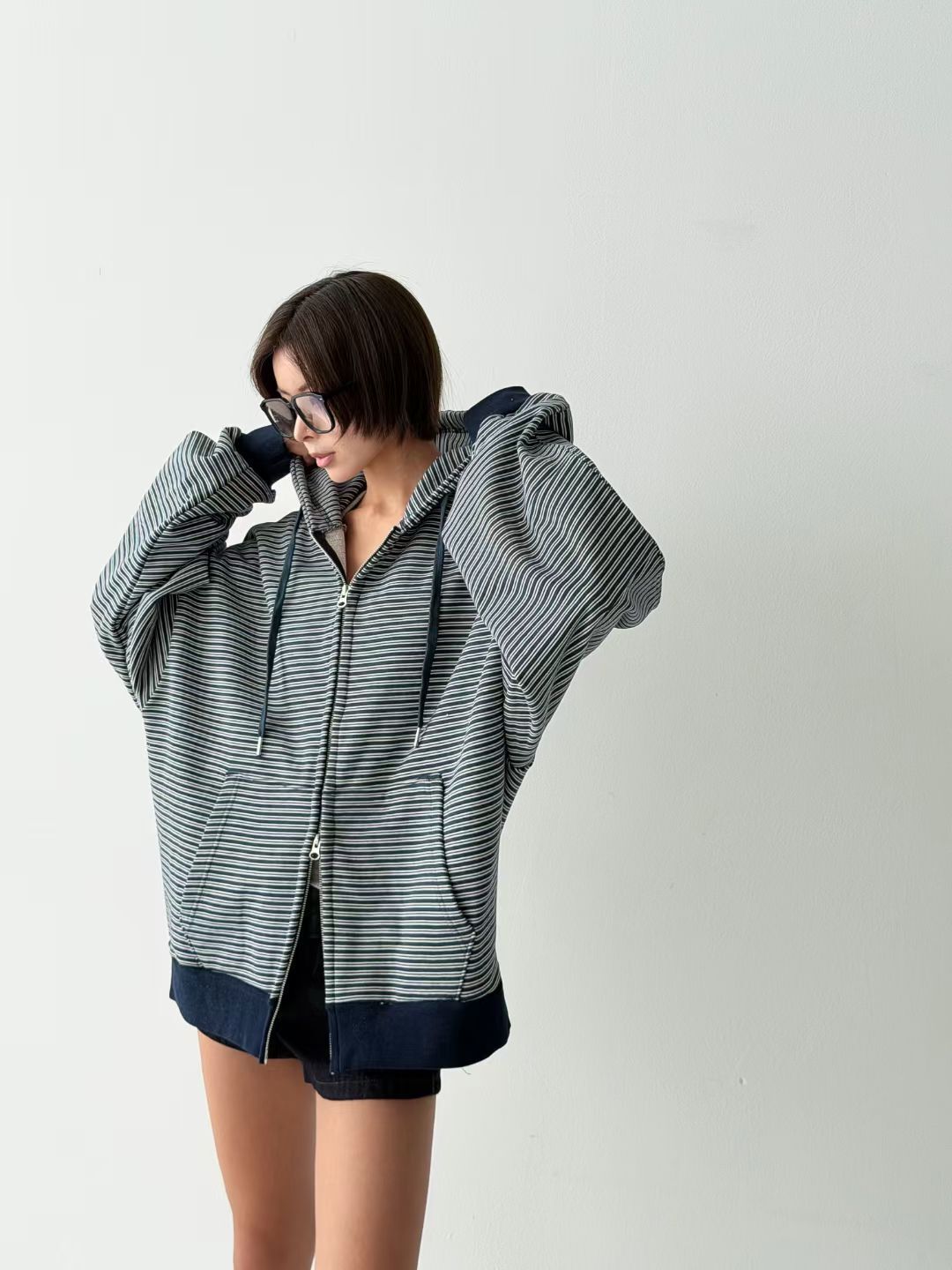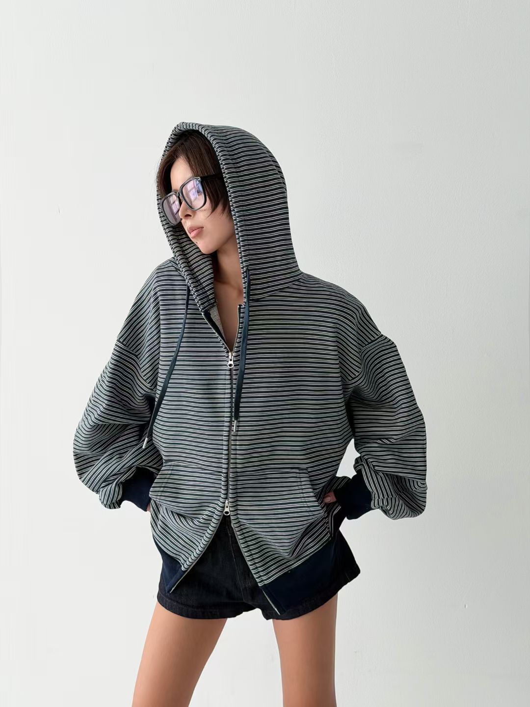 橫紋連帽拉鍊外套 AVOIR-018JK