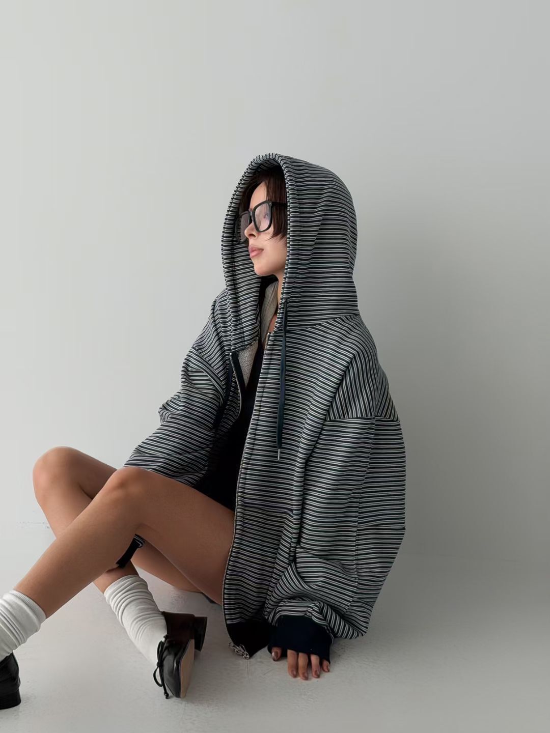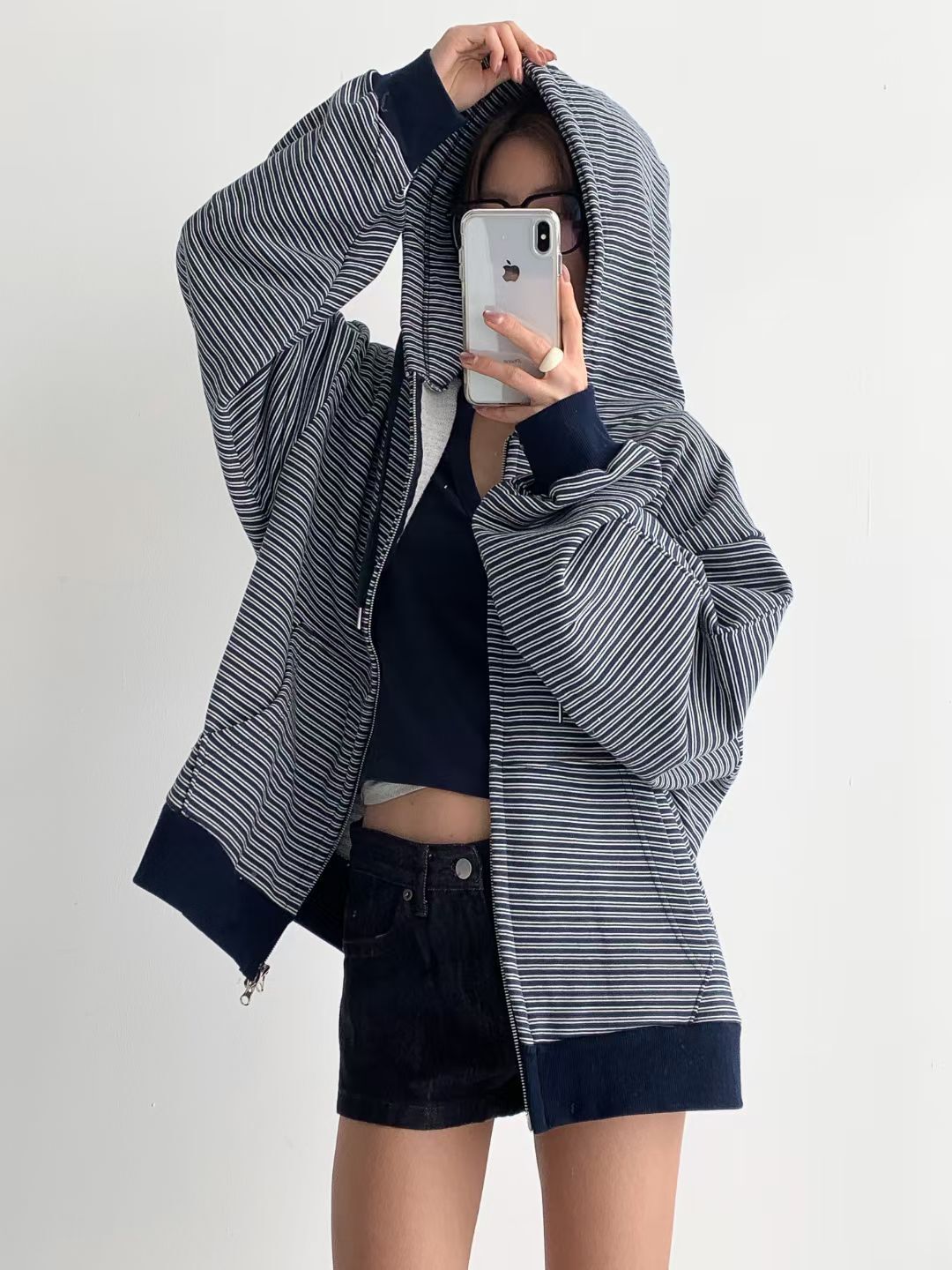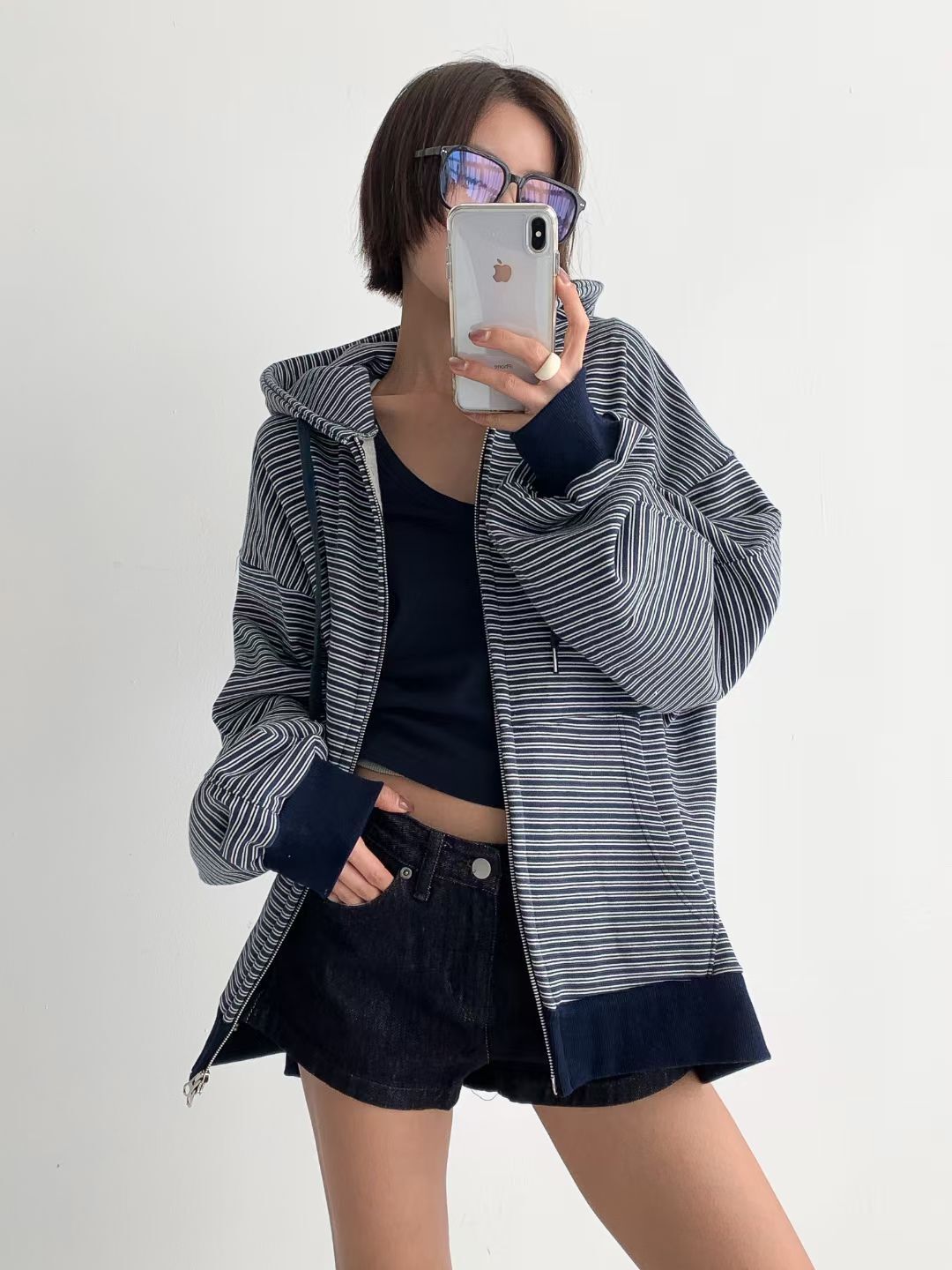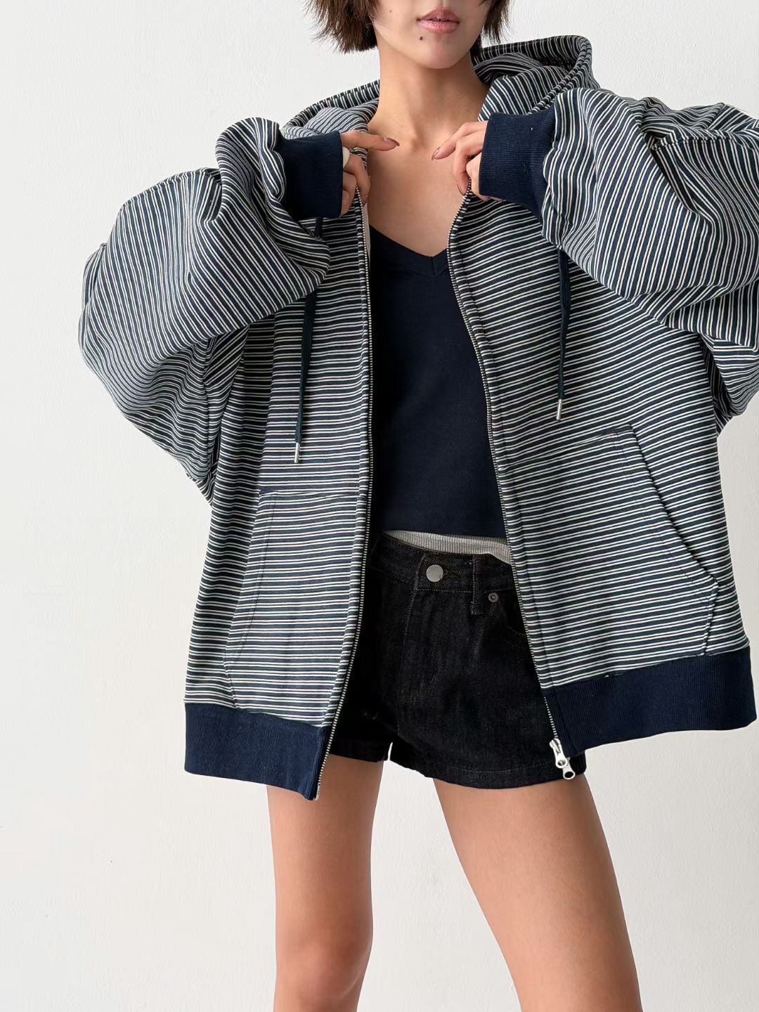 橫紋連帽拉鍊外套 AVOIR-018JK
