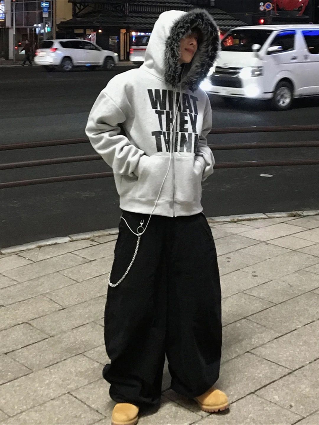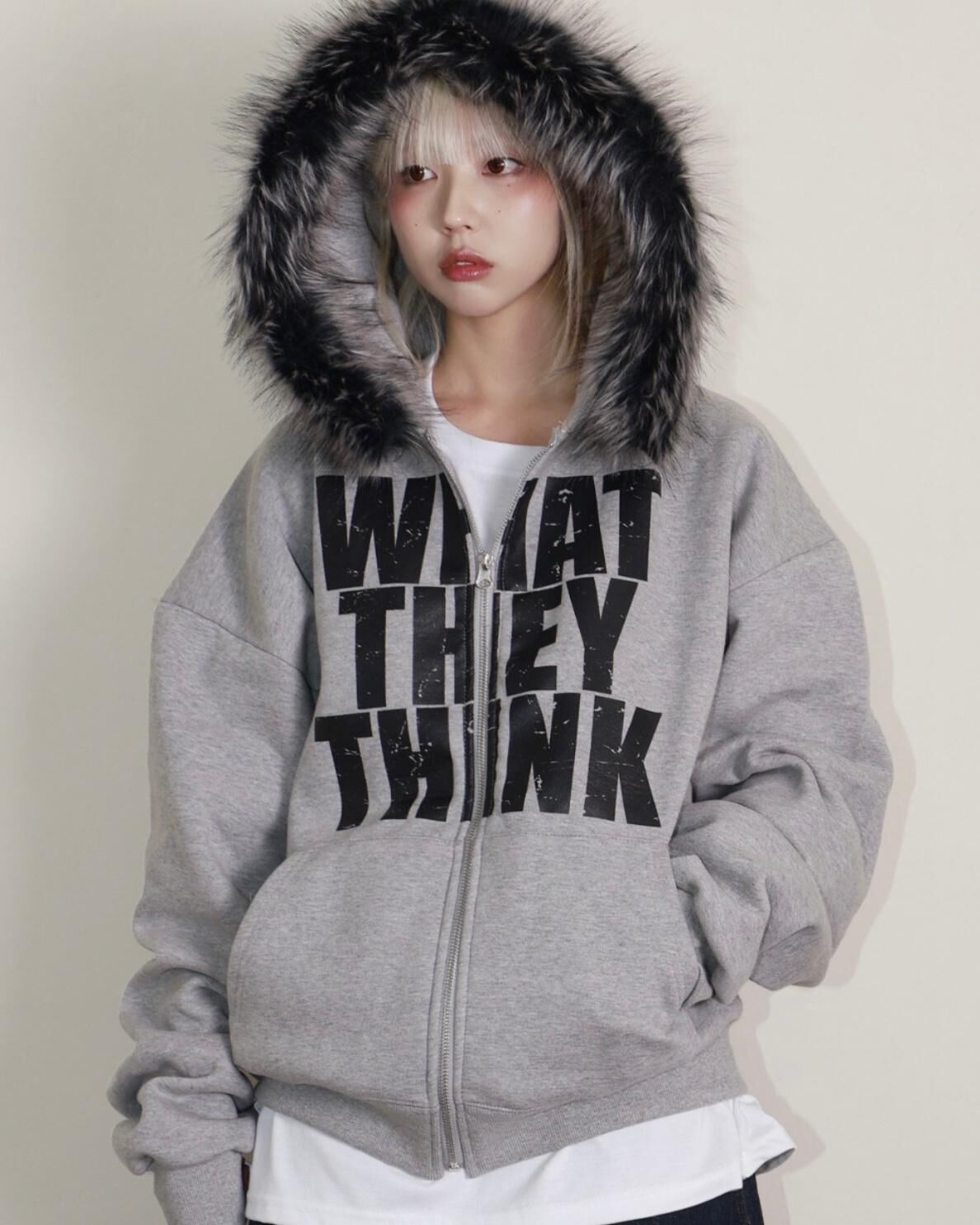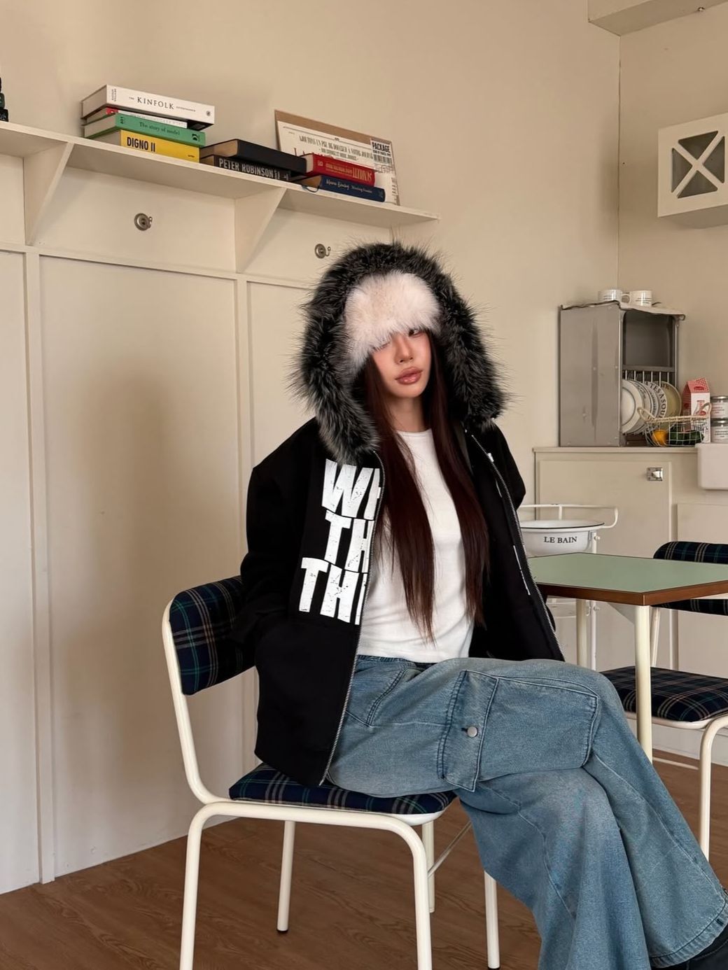 毛毛帽英文字拉鍊外套(毛可拆/薄抓毛底) BALLIN-007JK
