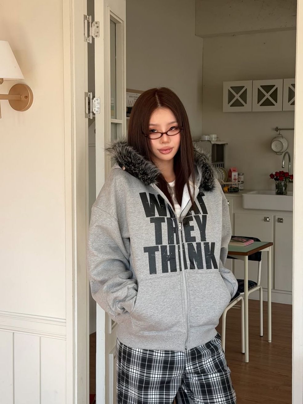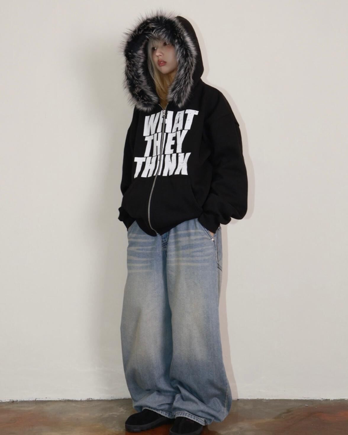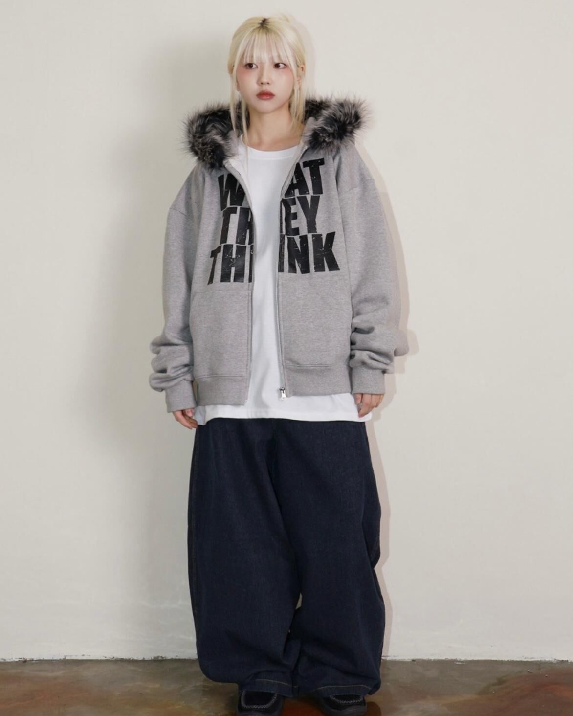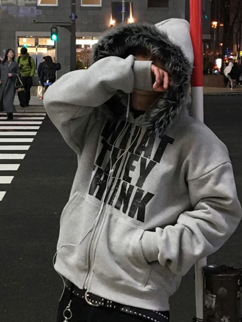 毛毛帽英文字拉鍊外套(毛可拆/薄抓毛底) BALLIN-007JK