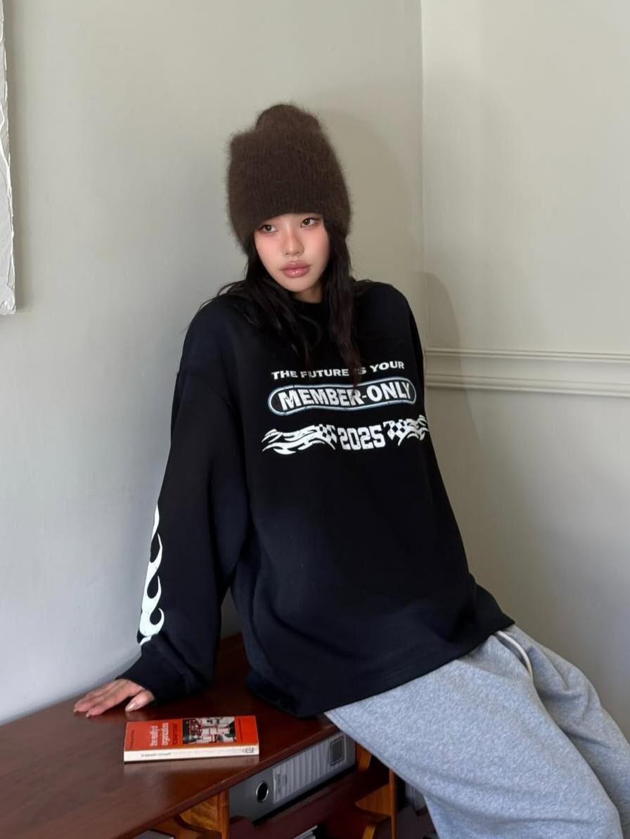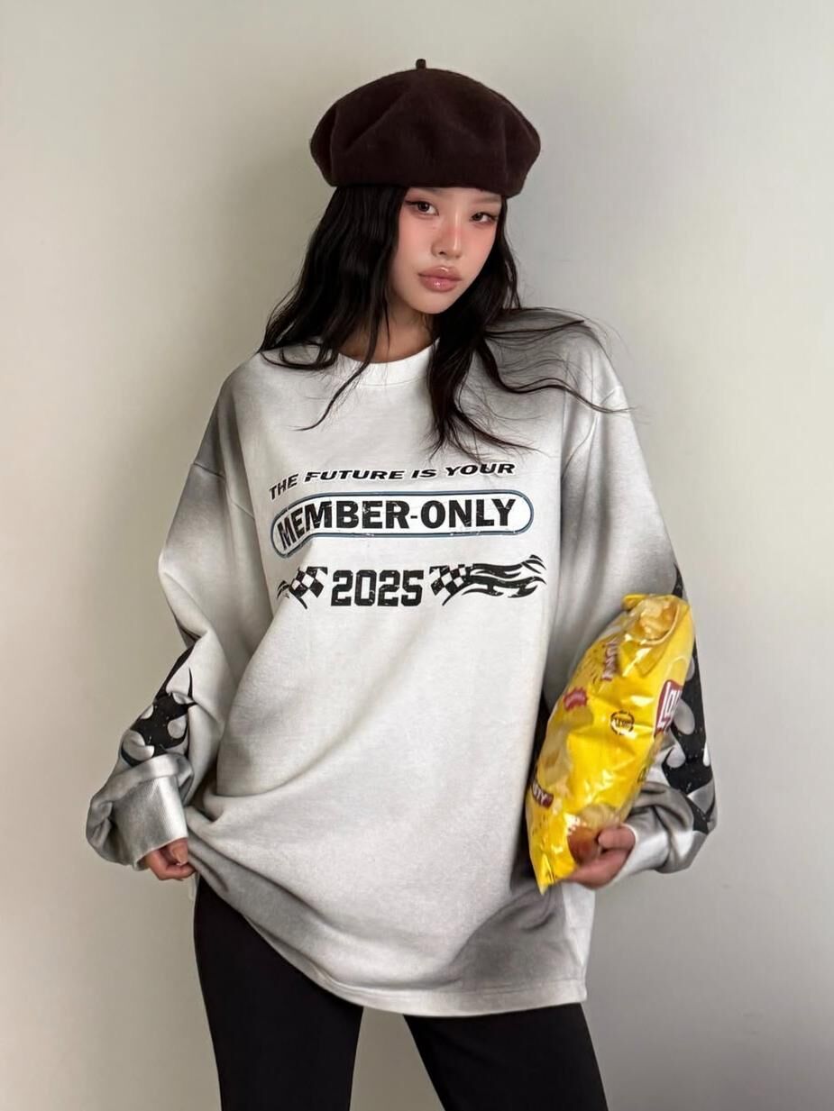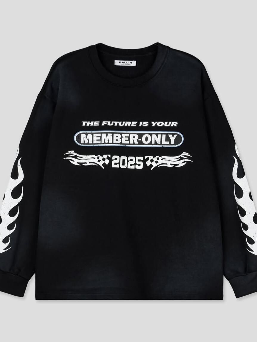 仿污英文字圖案長袖衫 BALLIN-012T