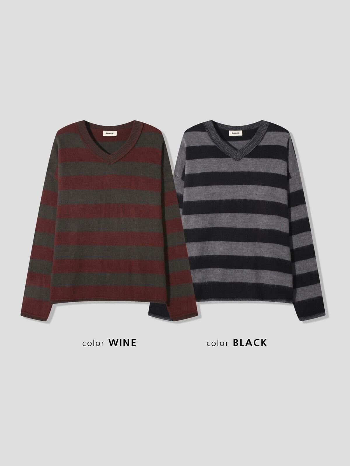 V領橫間長袖針織衫 BALLOW-014T