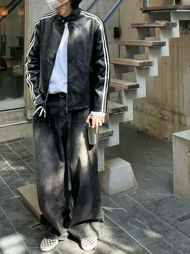 企領雙間拉鍊合成皮褸 BANYA-014JK