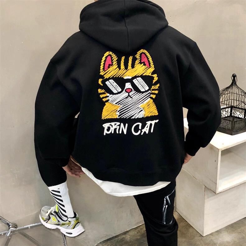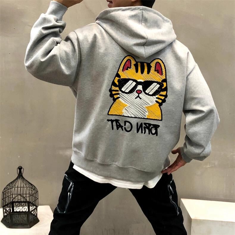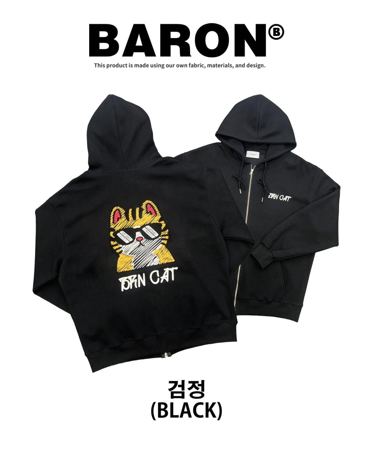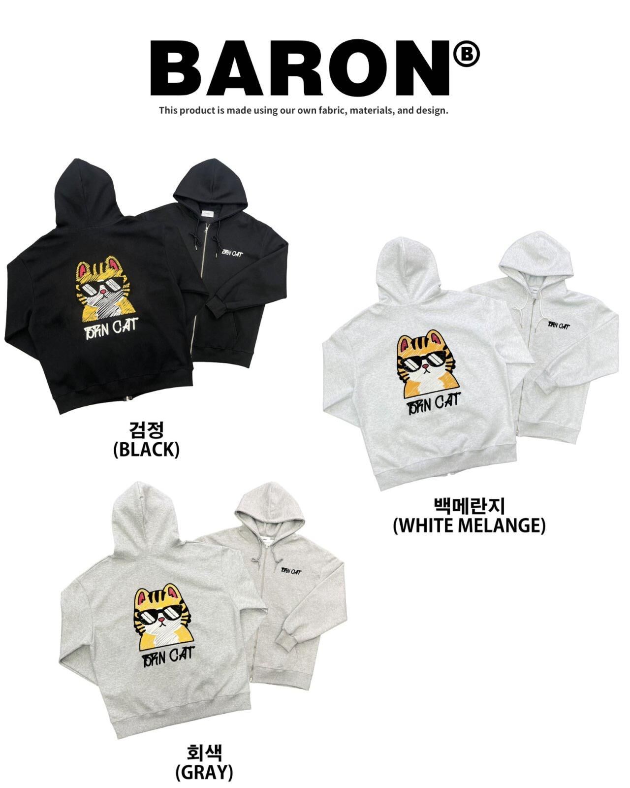 貓仔圖案英文字連帽拉鍊外套 BARON-197JK