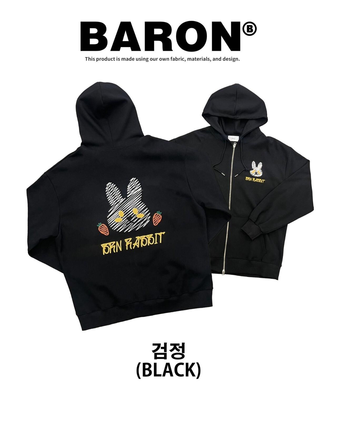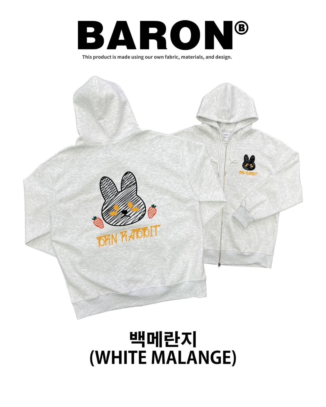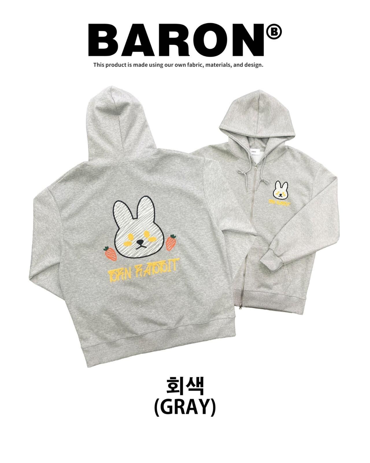 兔仔圖案英文字連帽拉鍊外套 BARON-199JK