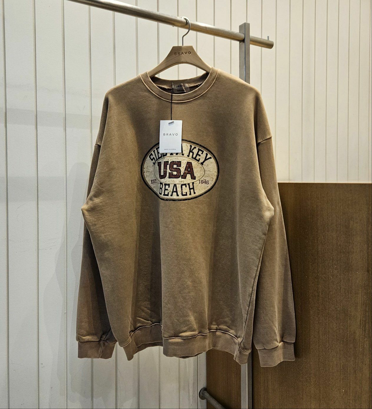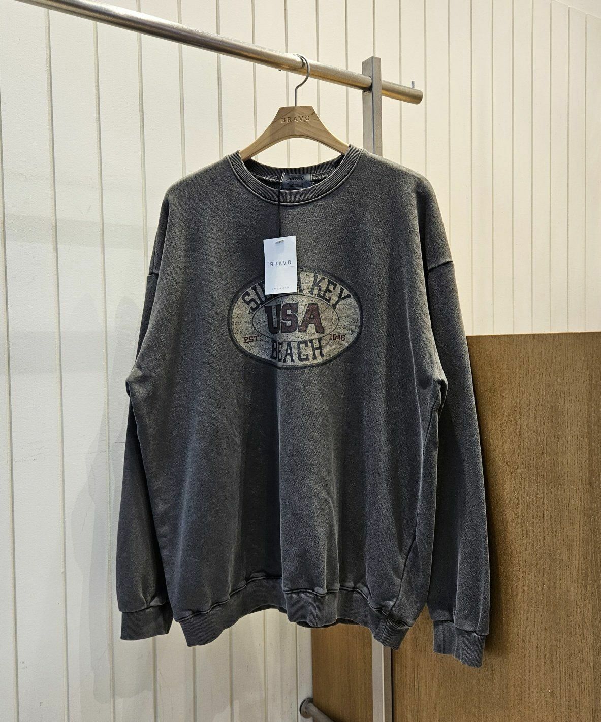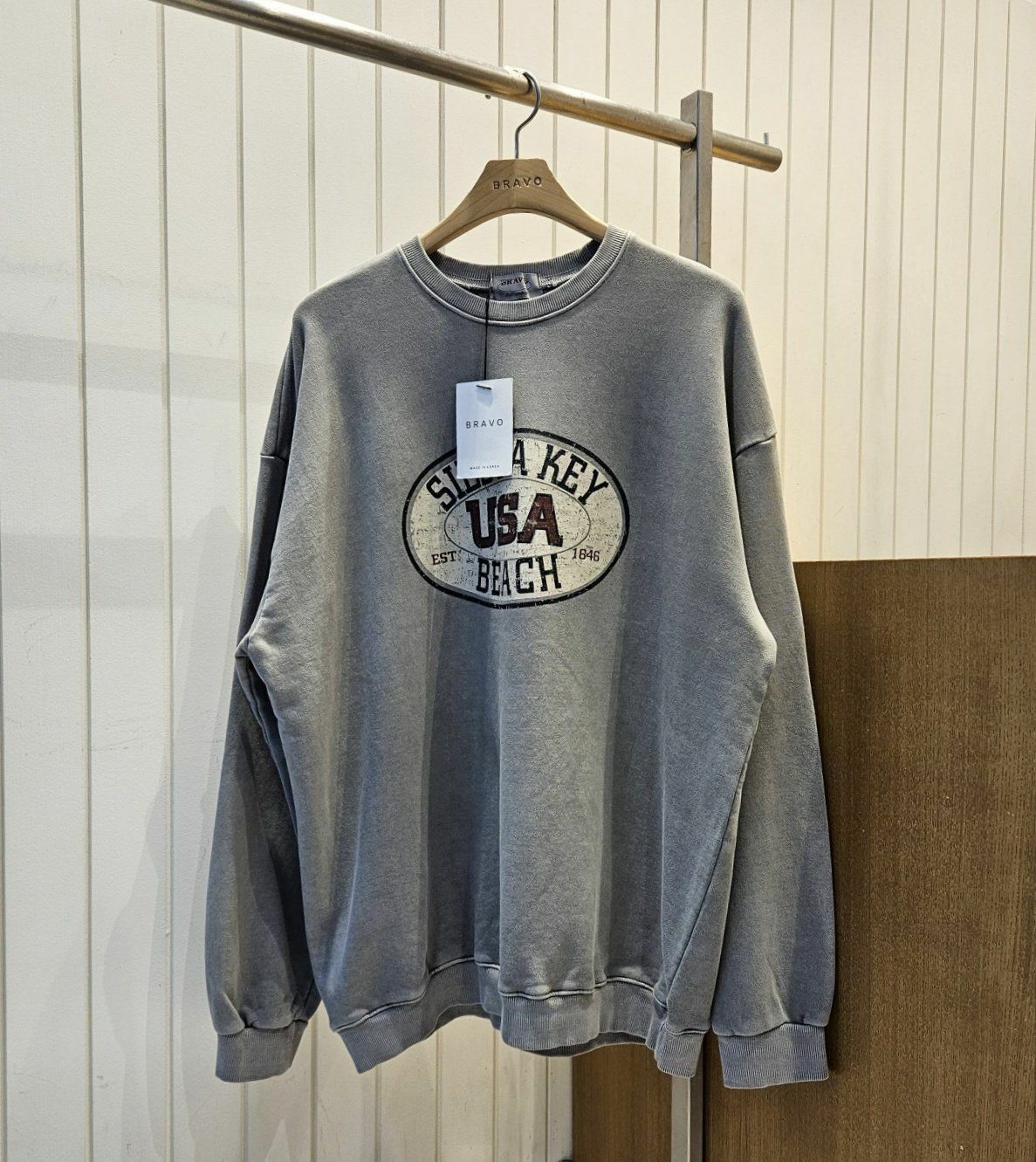 洗水英文字圖案衛衣(薄抓毛底) BRAVO-003T
