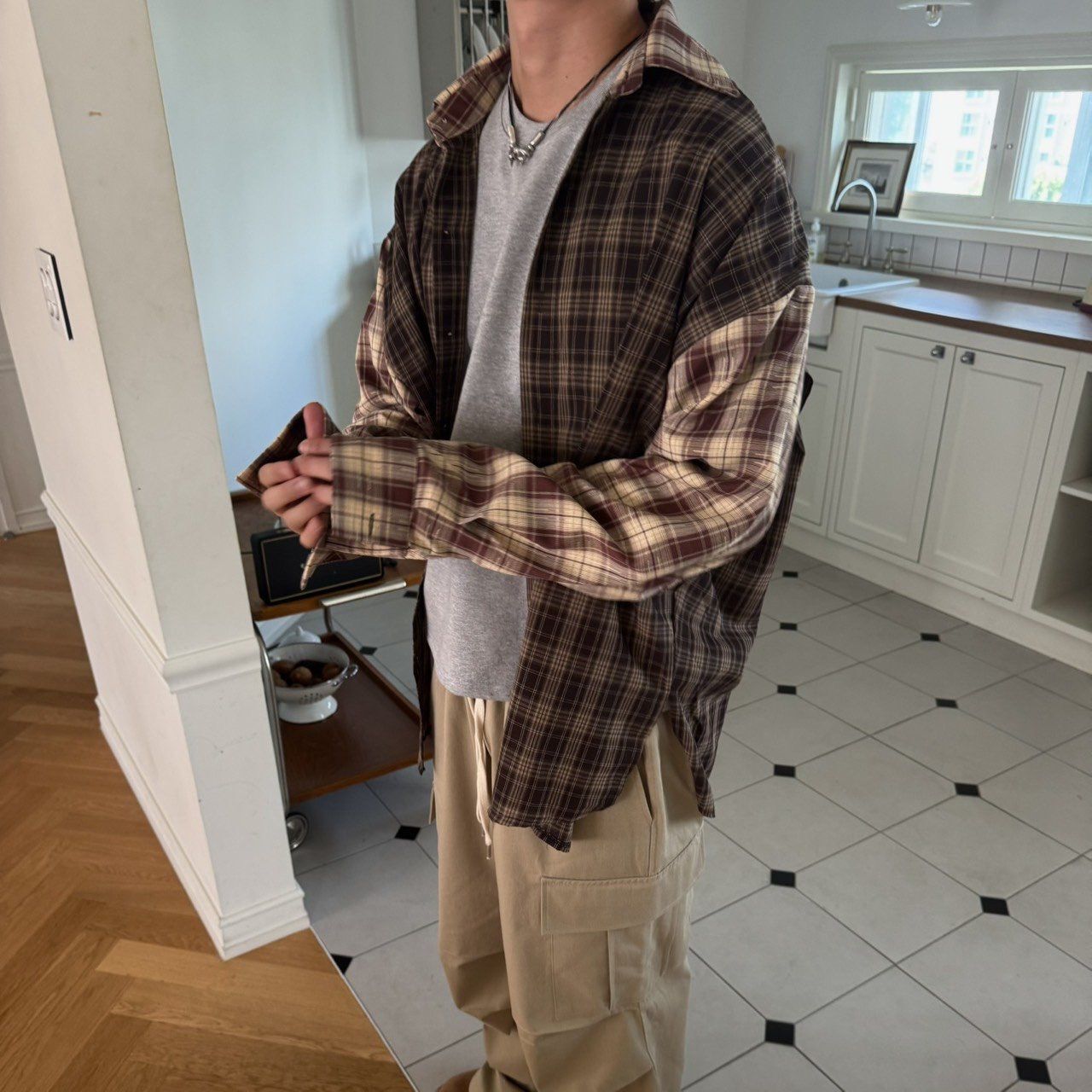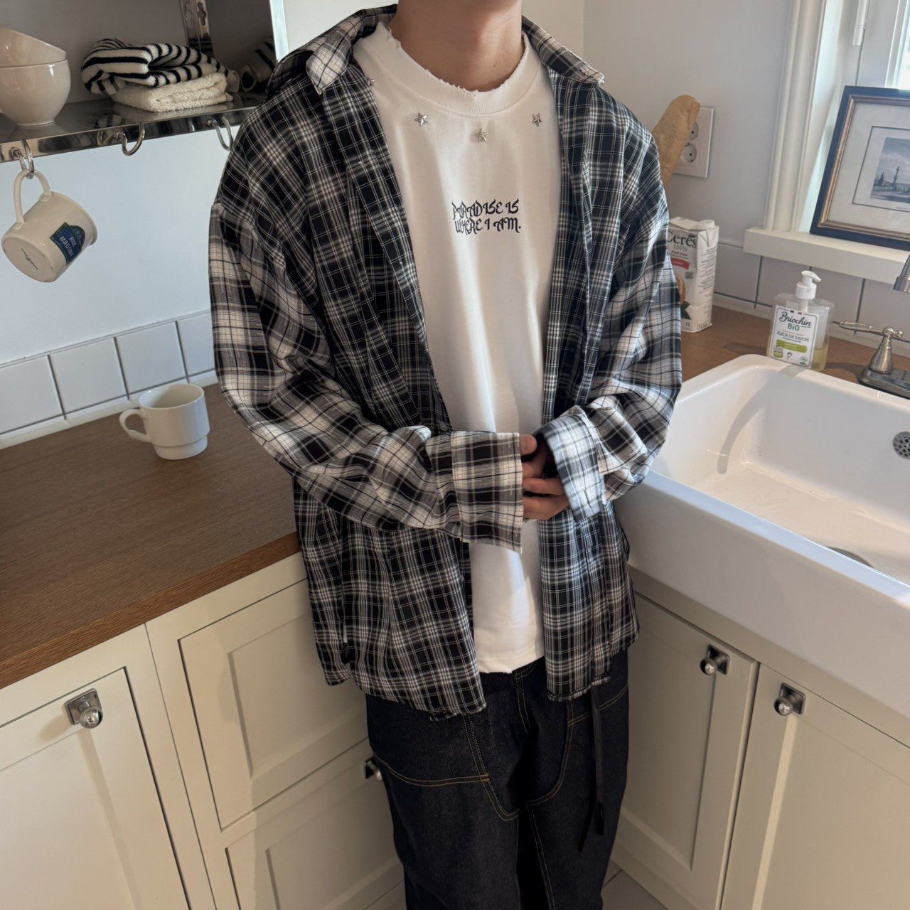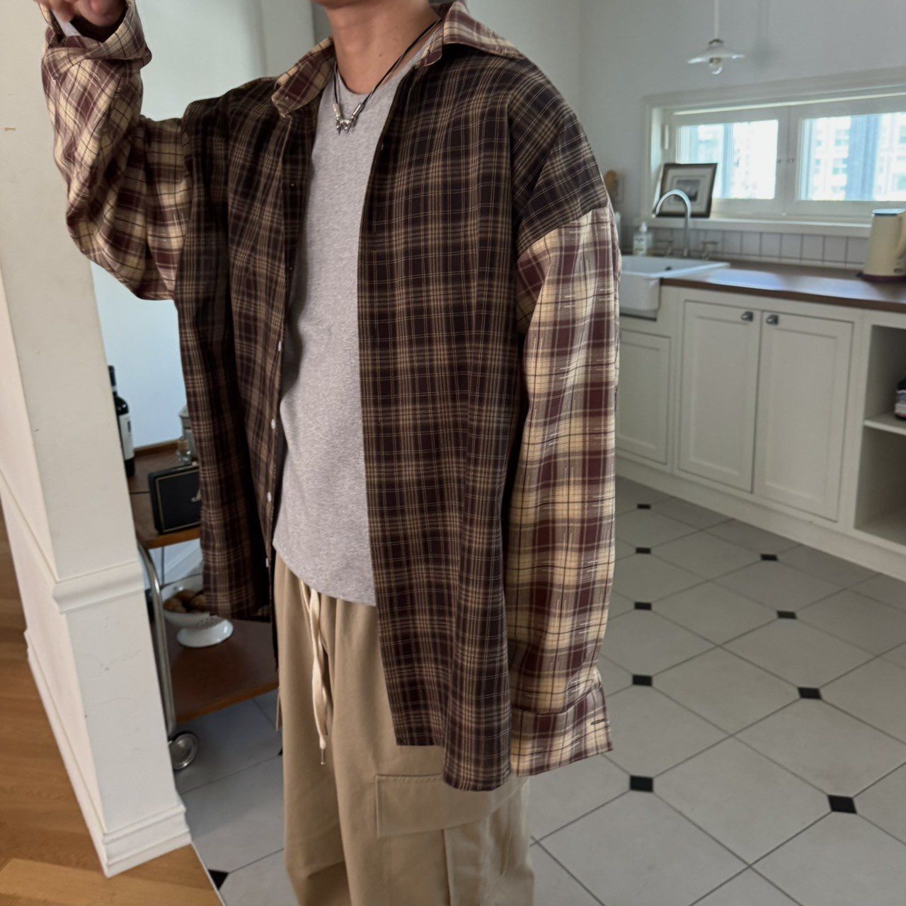 格仔長袖恤衫 BY-425S
