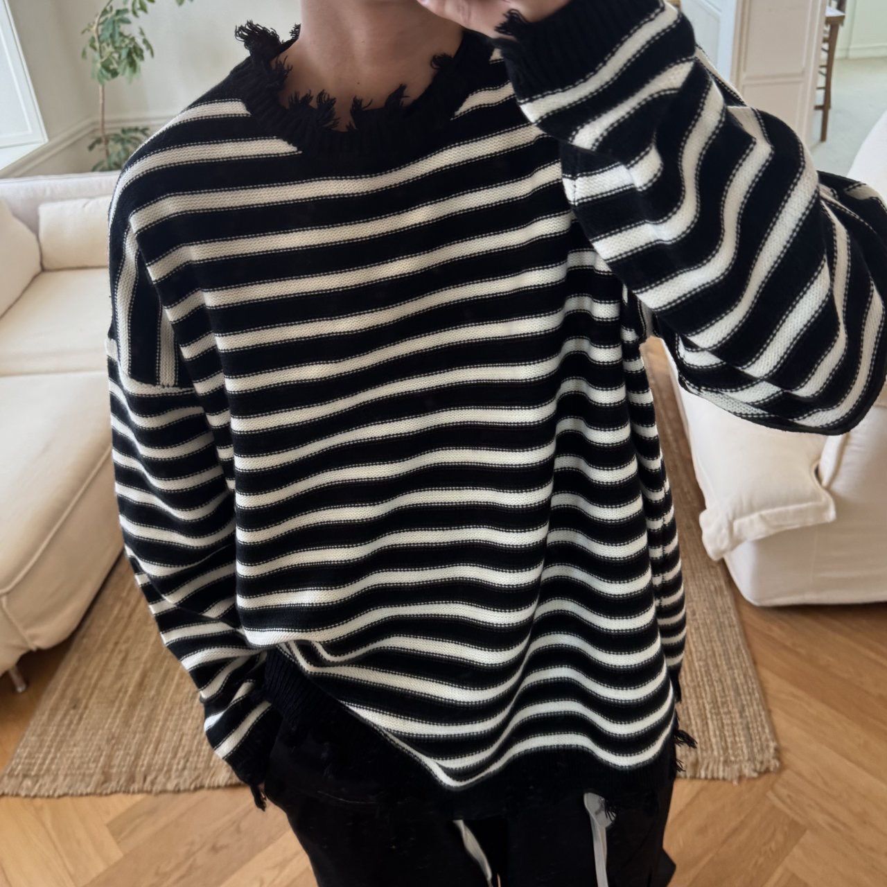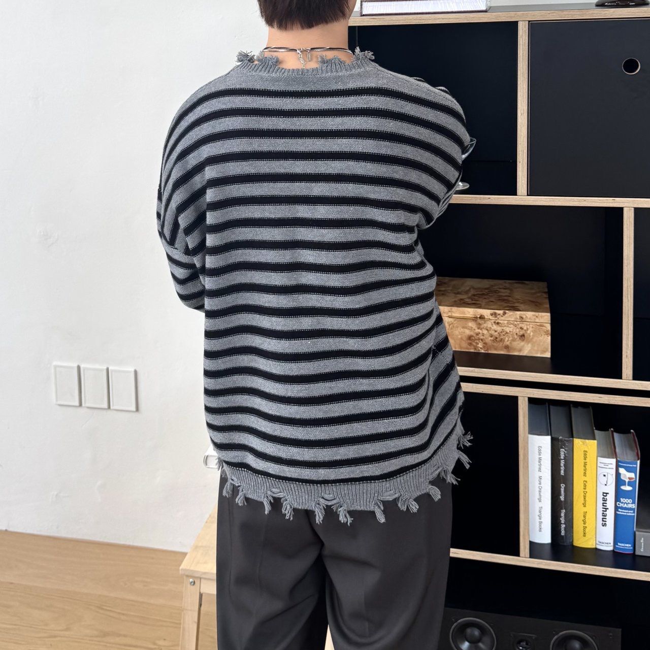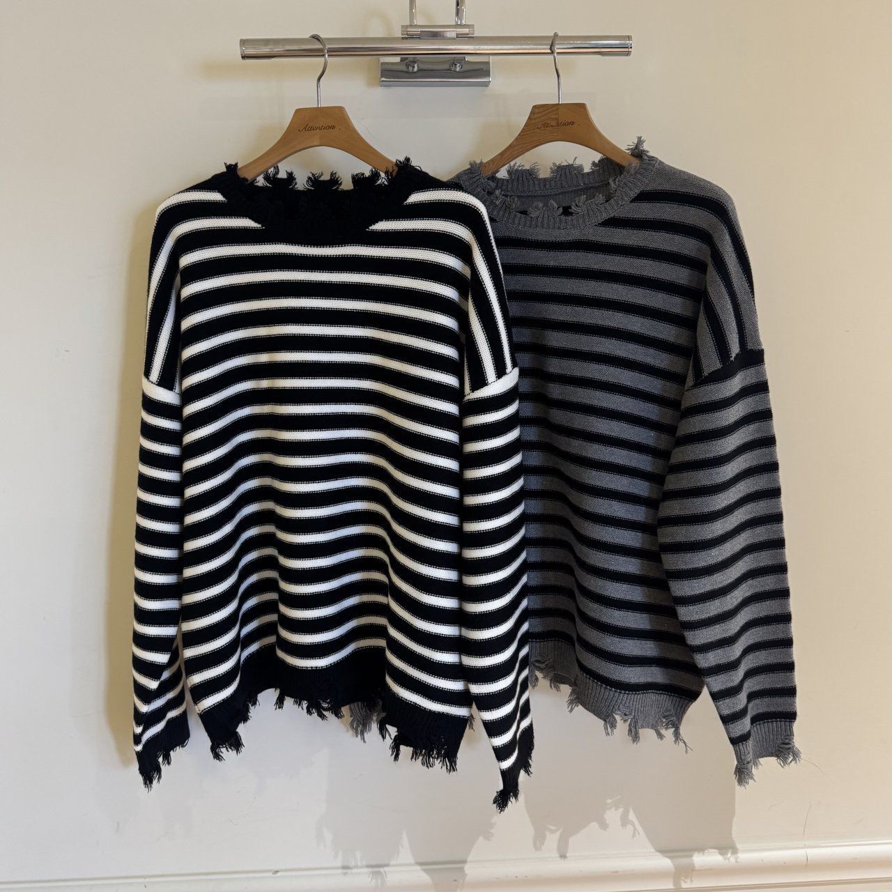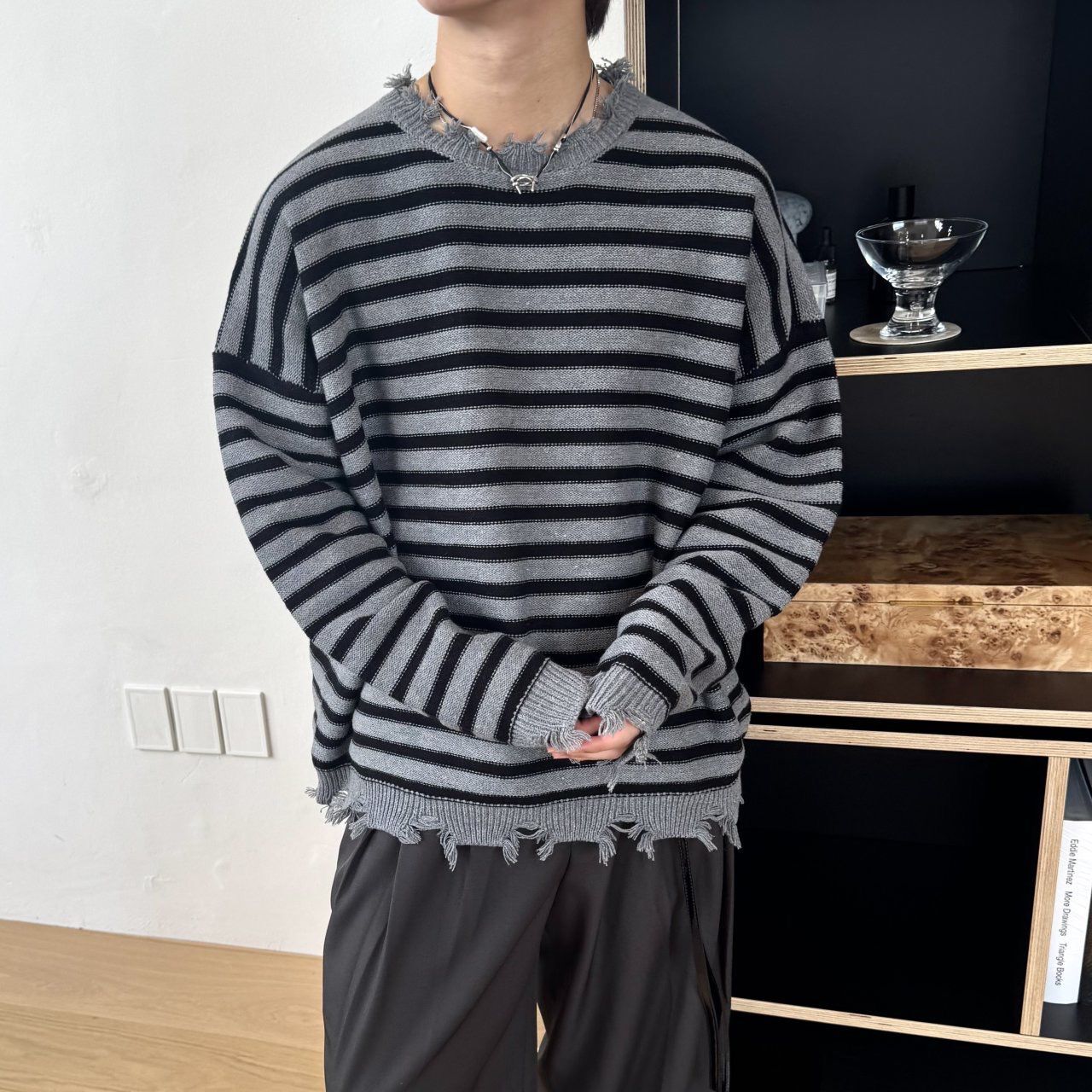 橫間破邊長袖針織衫 BY-436T