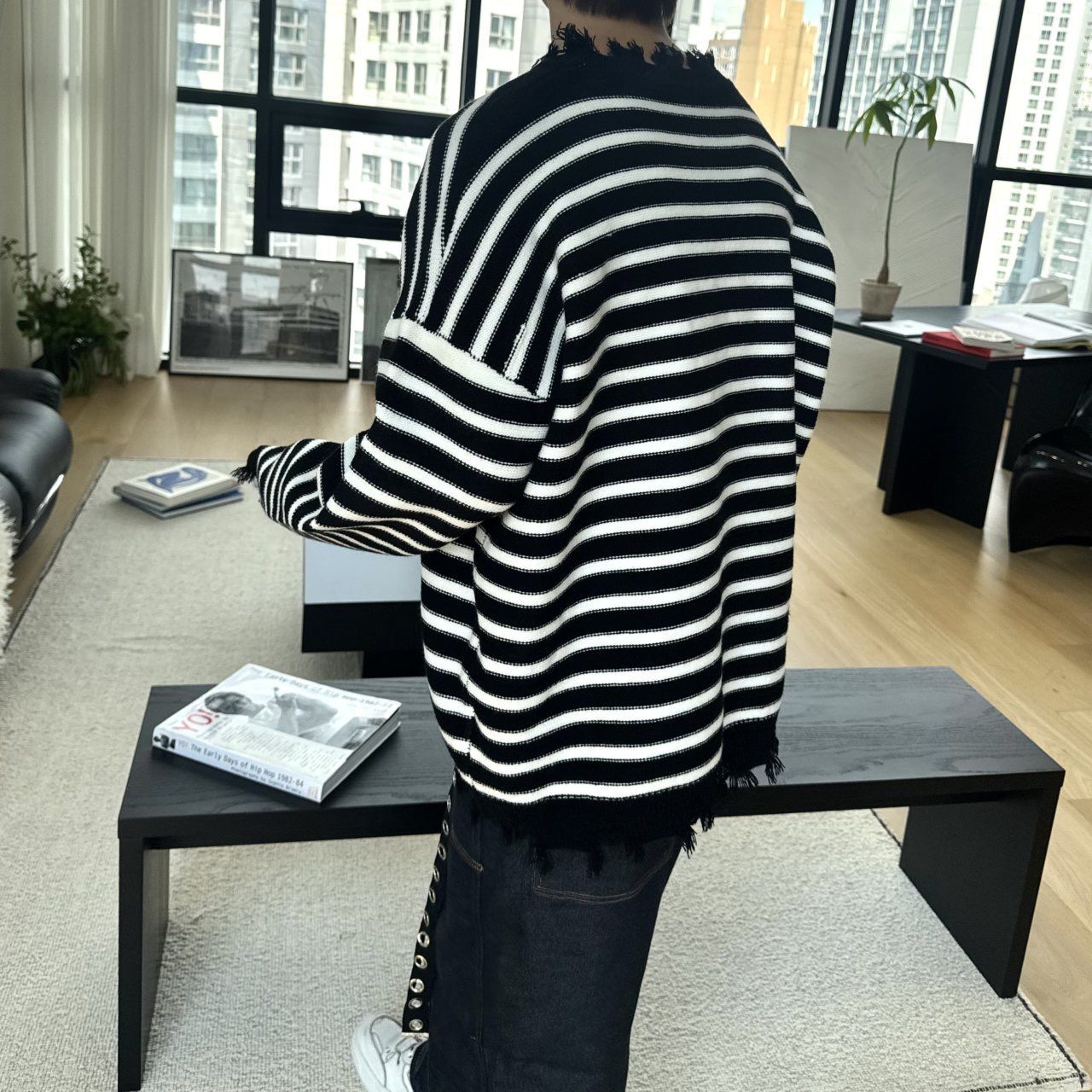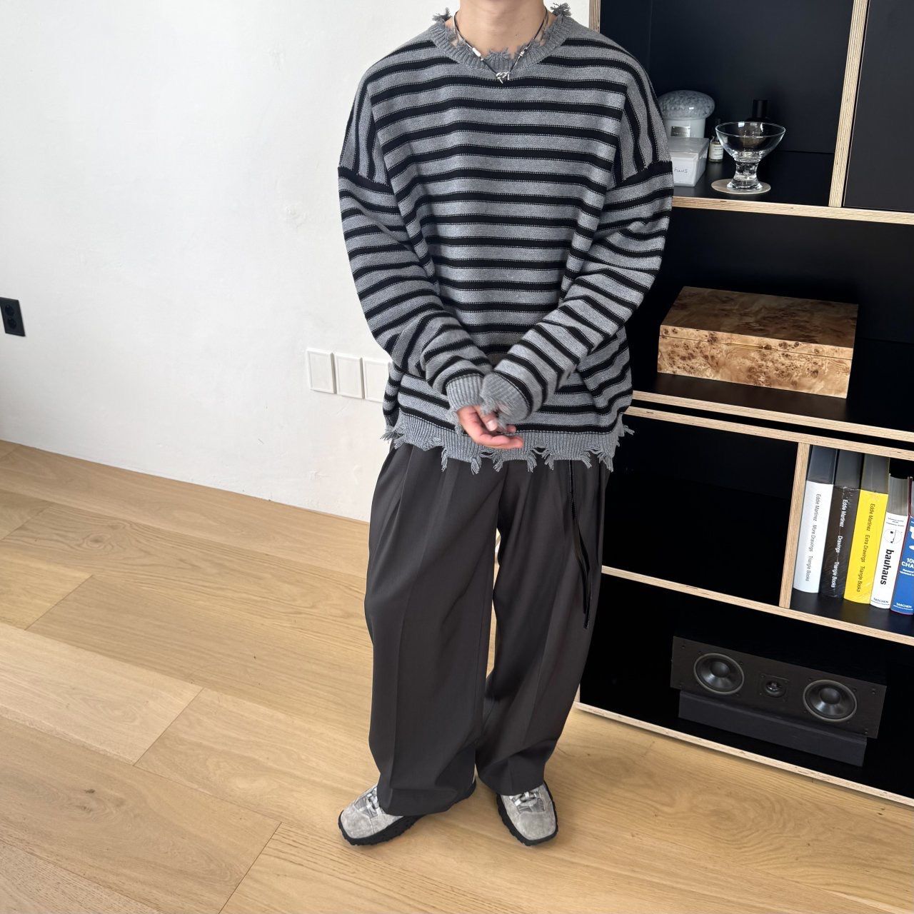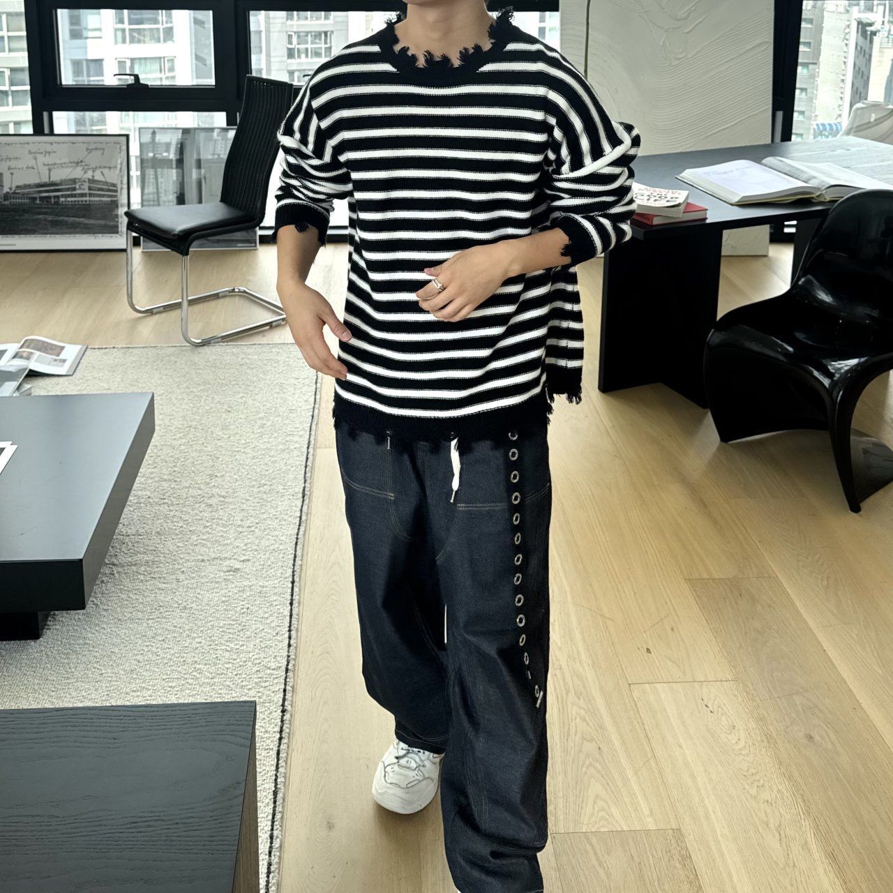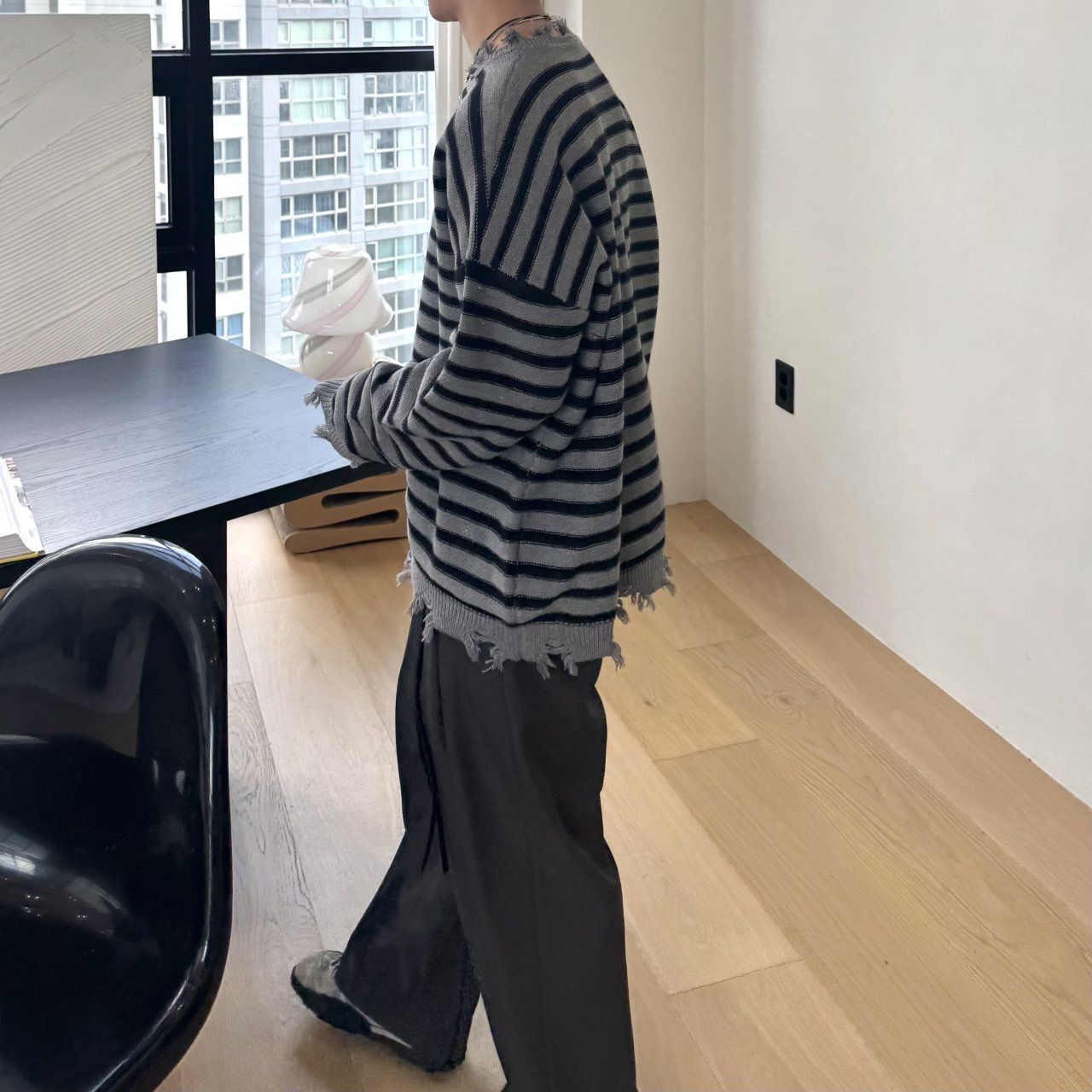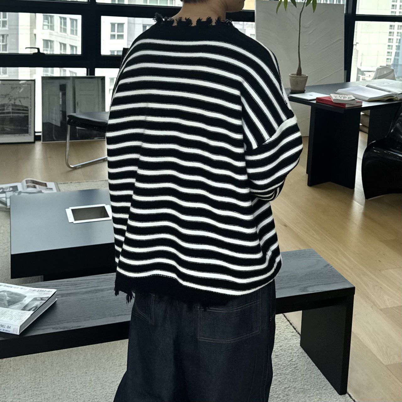 橫間破邊長袖針織衫 BY-436T