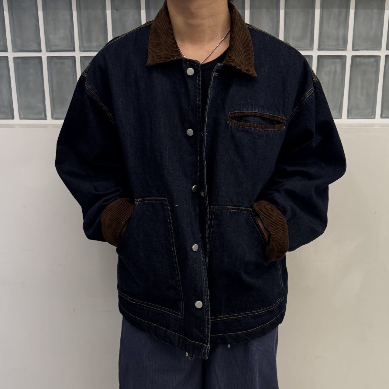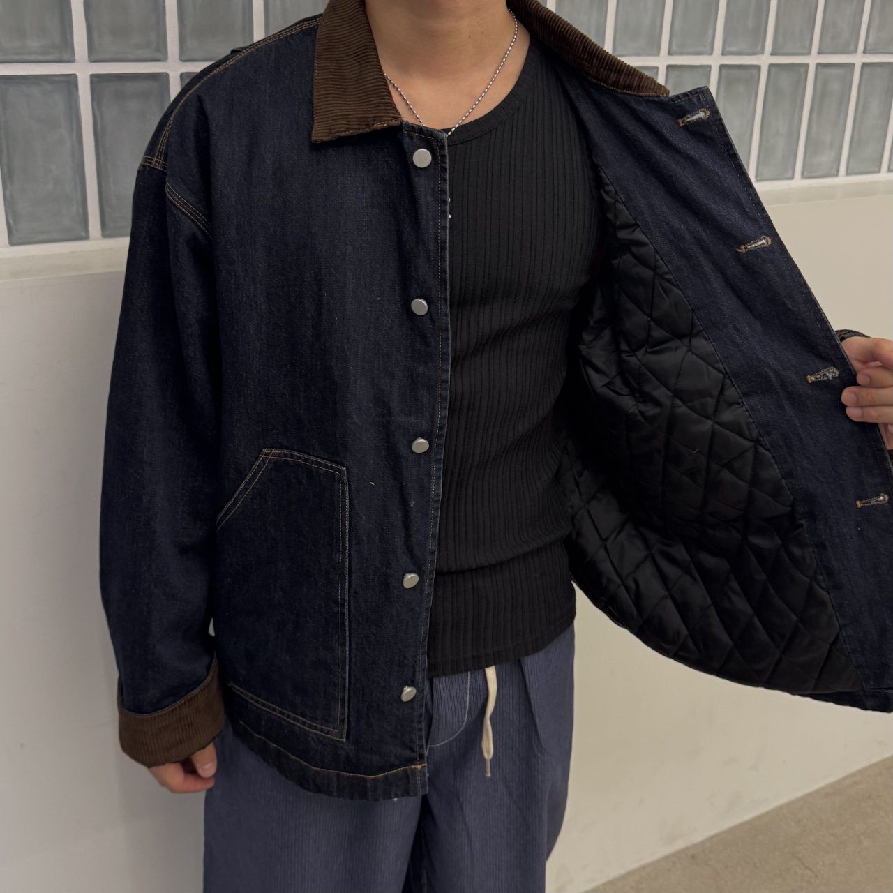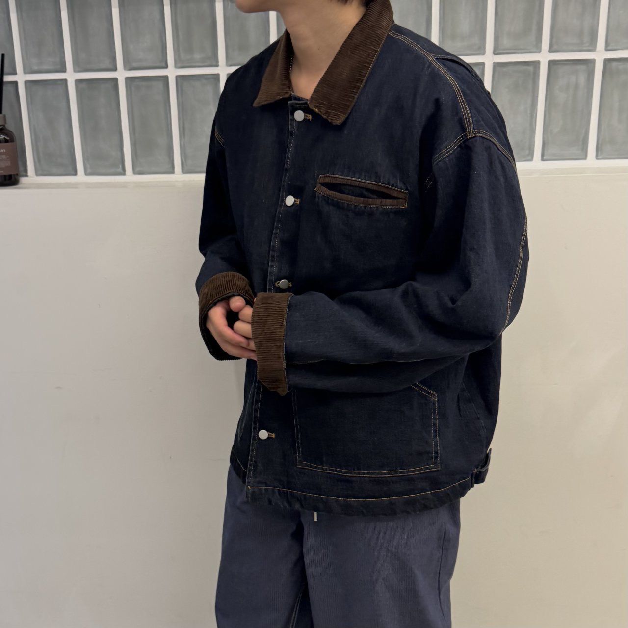 拼領洗水牛仔褸(薄夾棉) BY-453JK