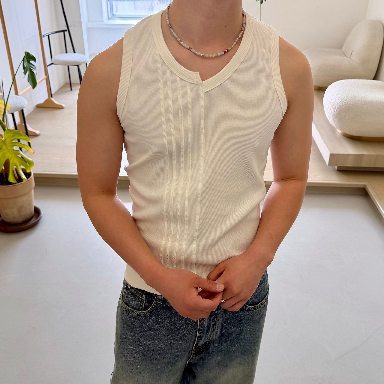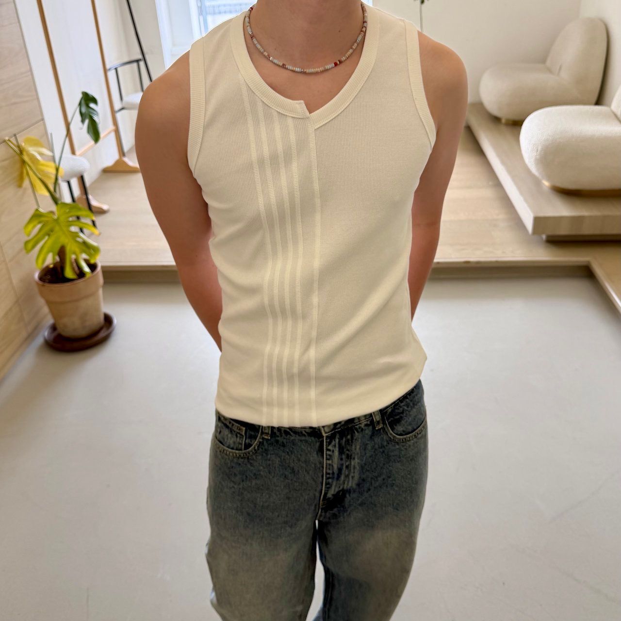 淨色暗紋背心 BY-486V