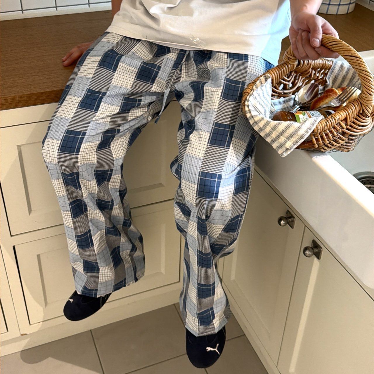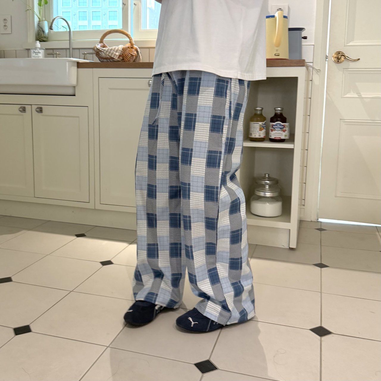 格紋鬆身褲 BY-487P