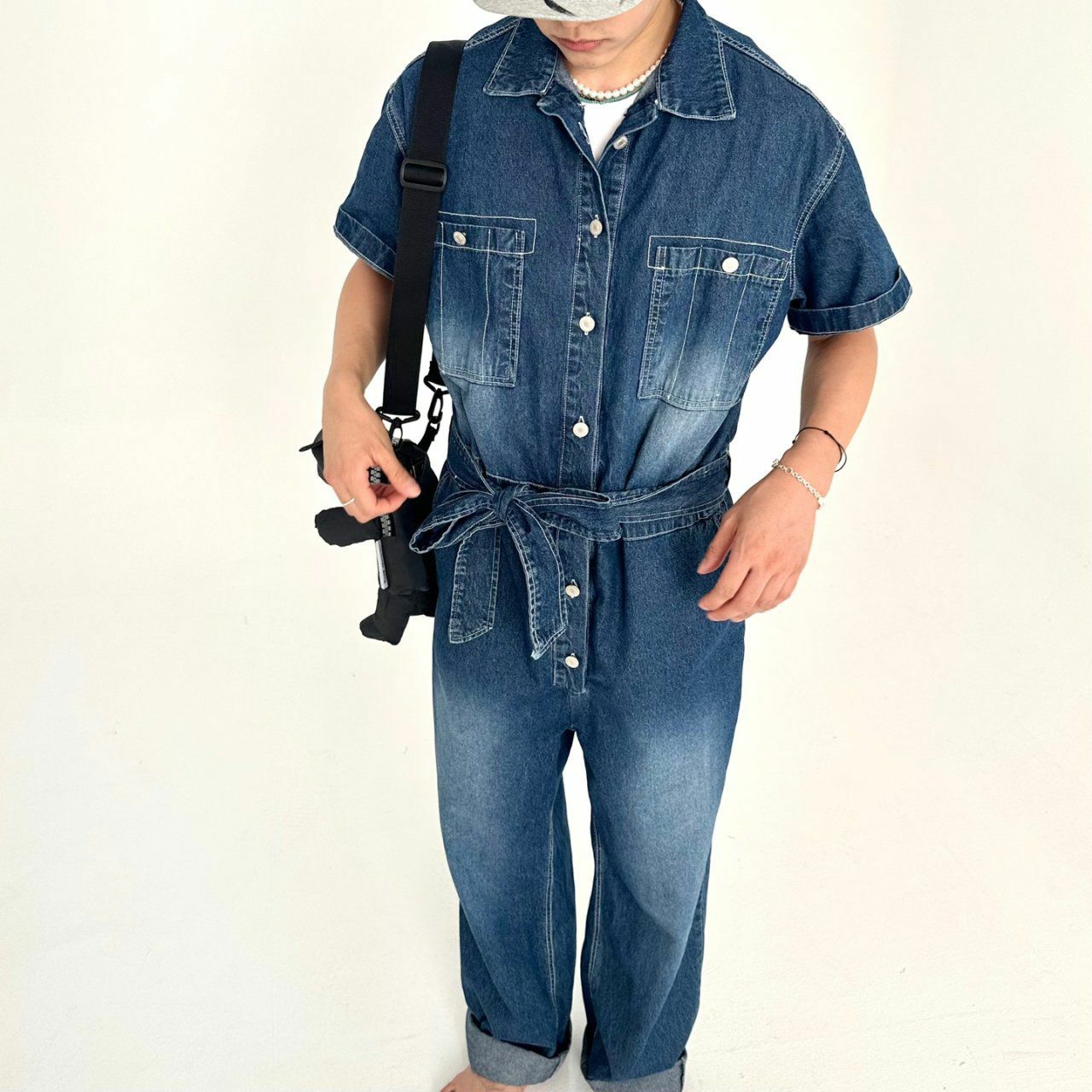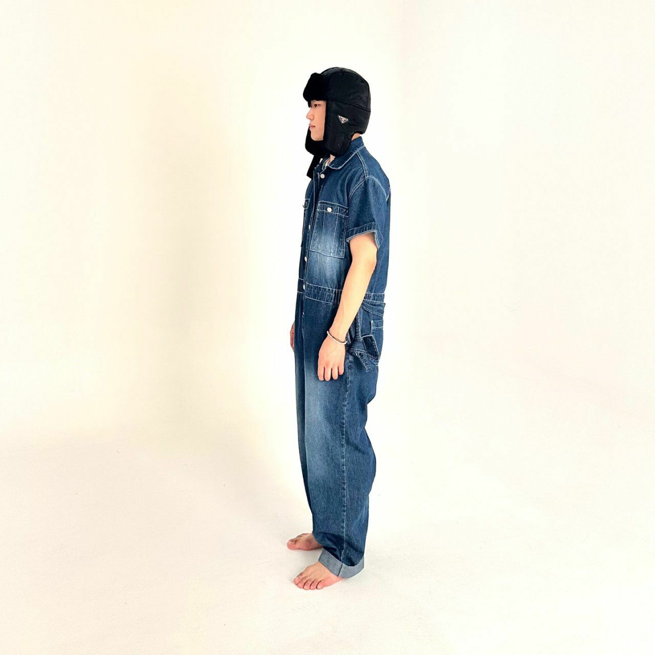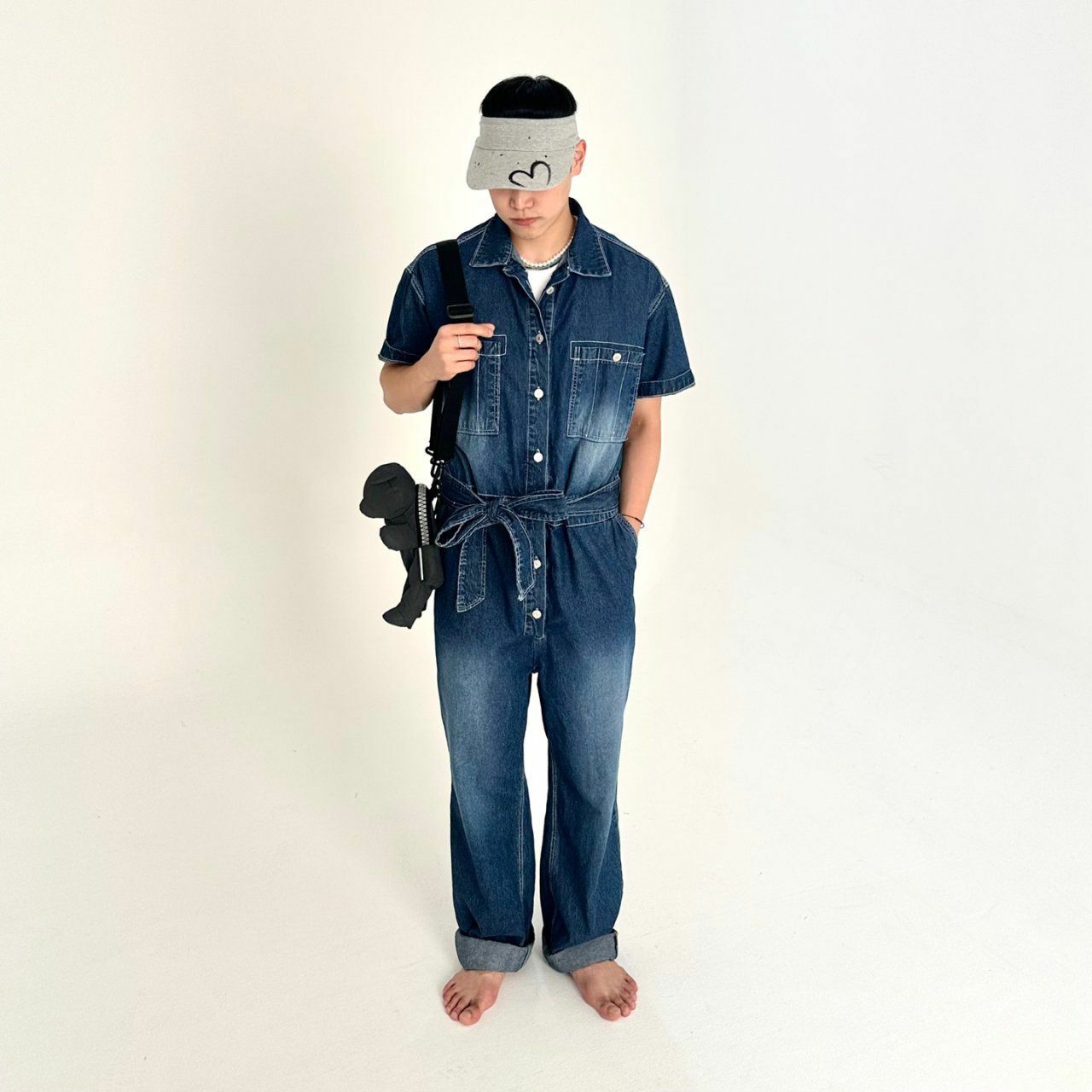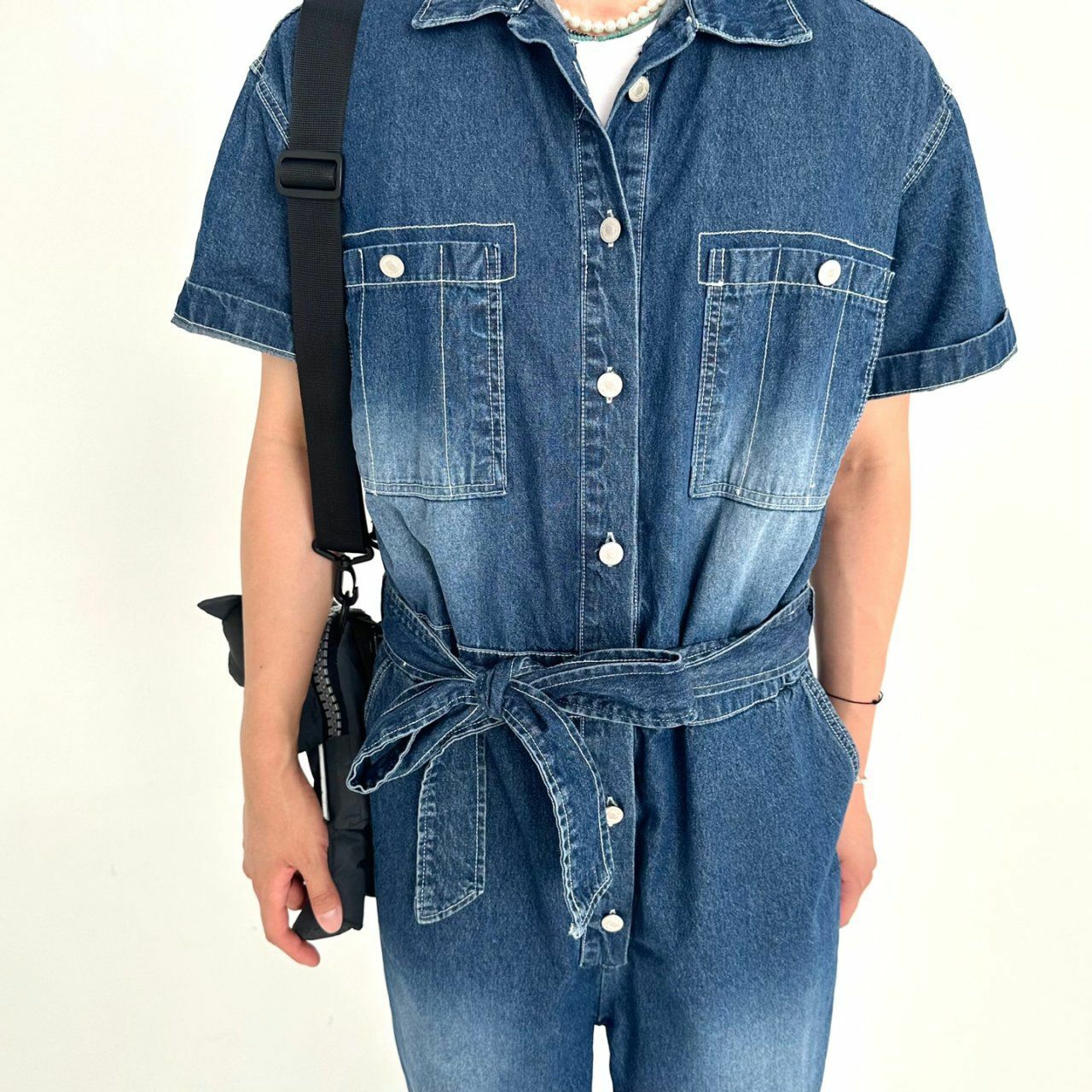牛仔短袖連身工人褲 BY ATTENTION-023P