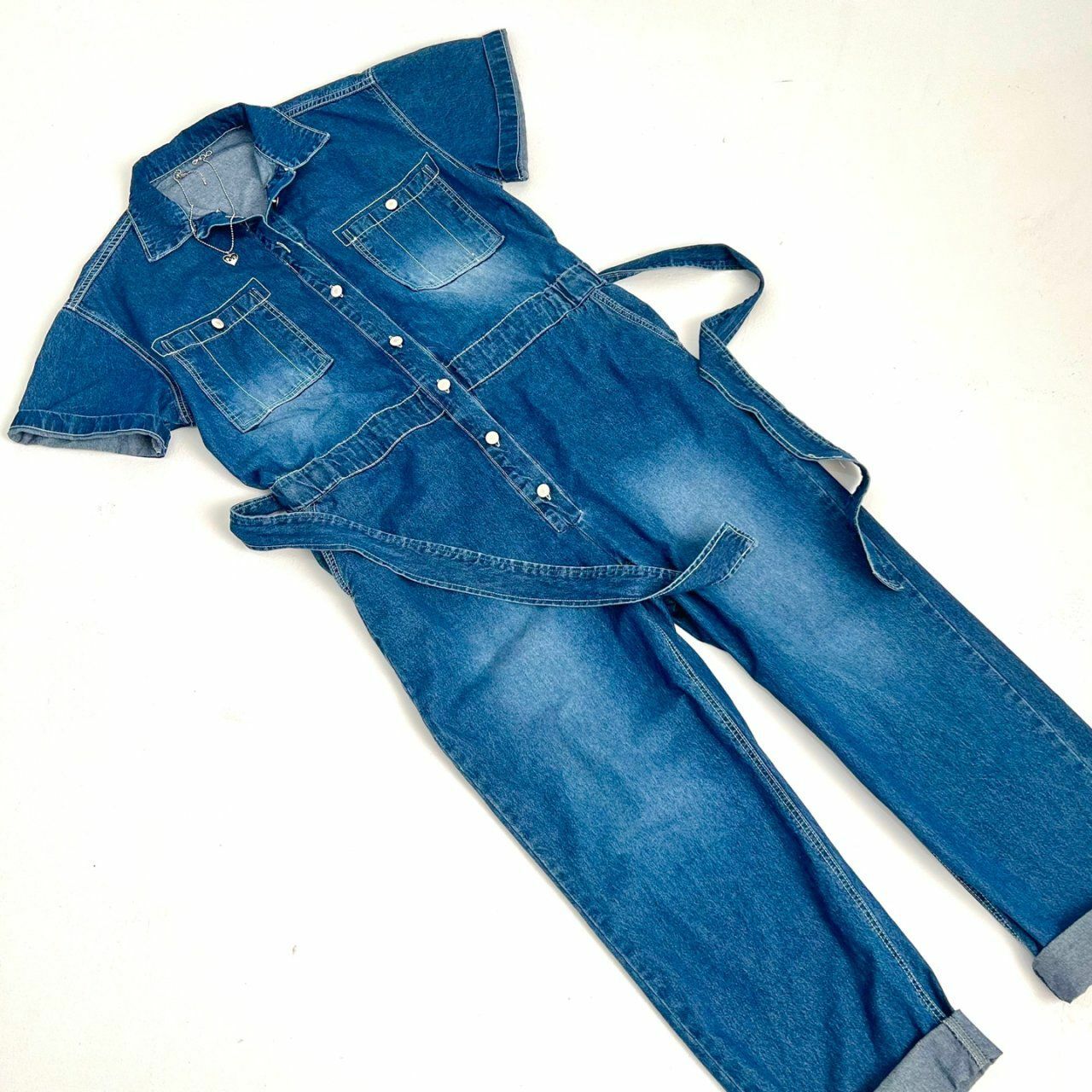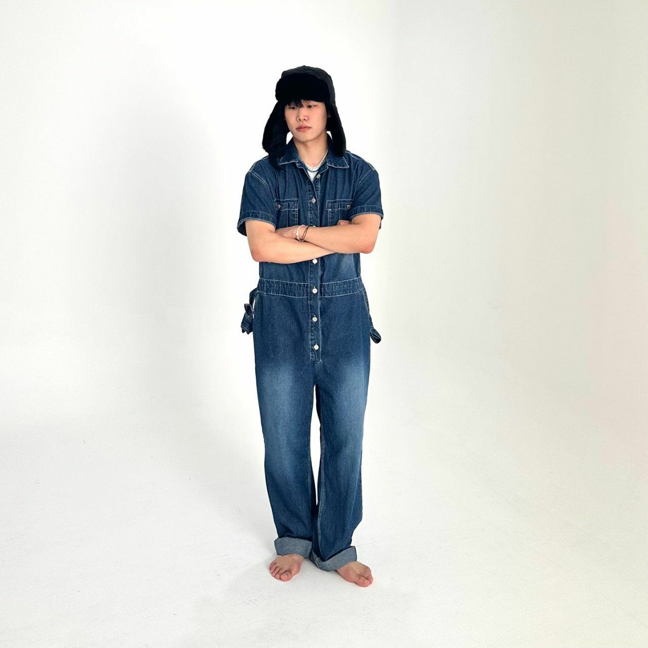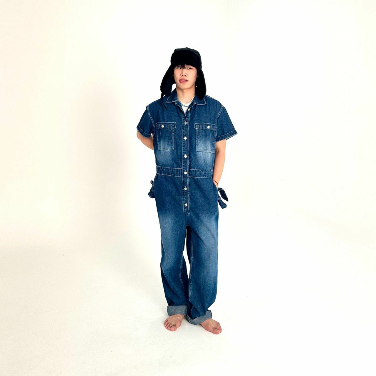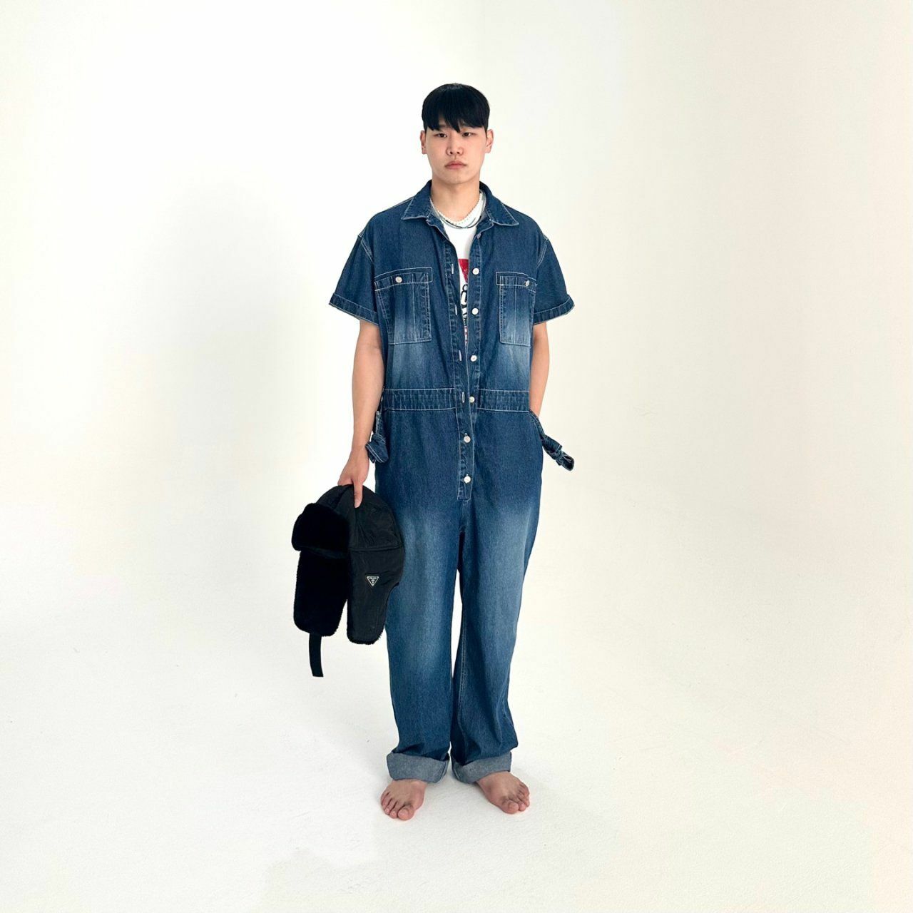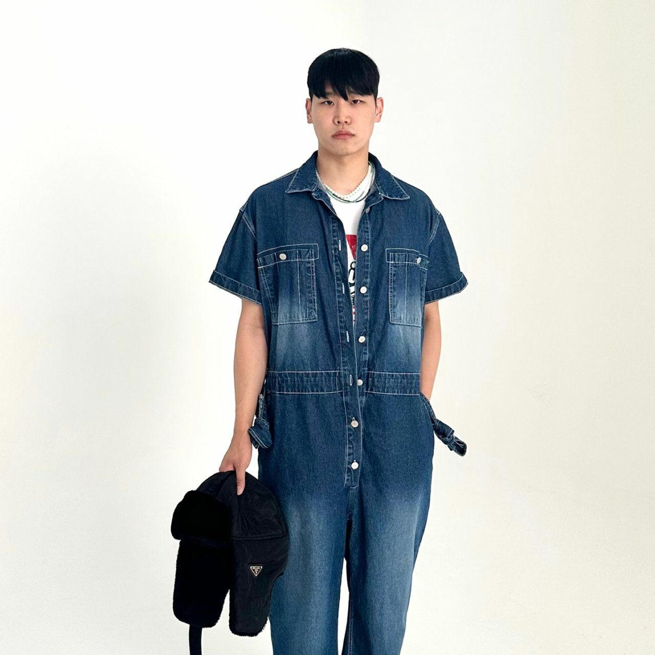 牛仔短袖連身工人褲 BY ATTENTION-023P