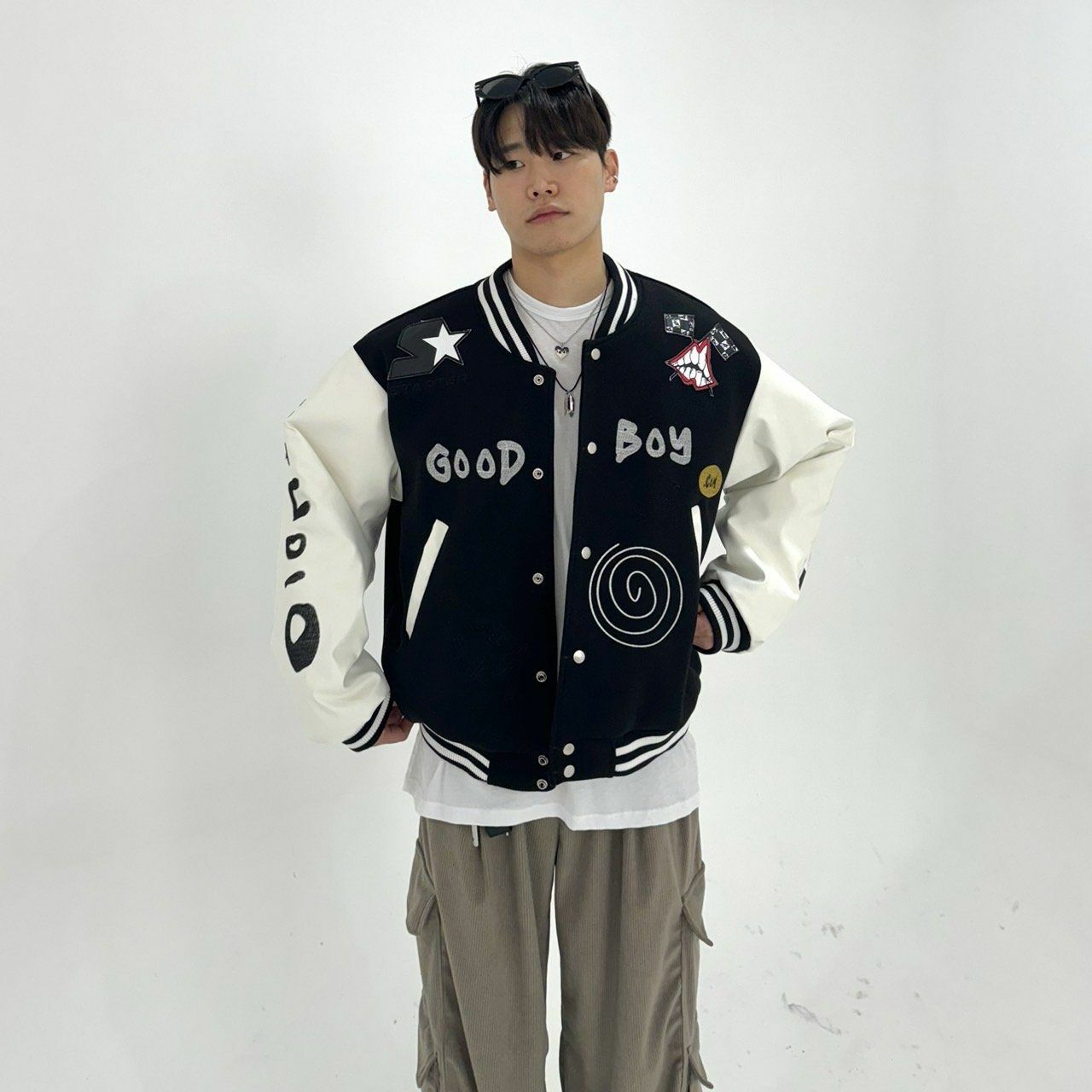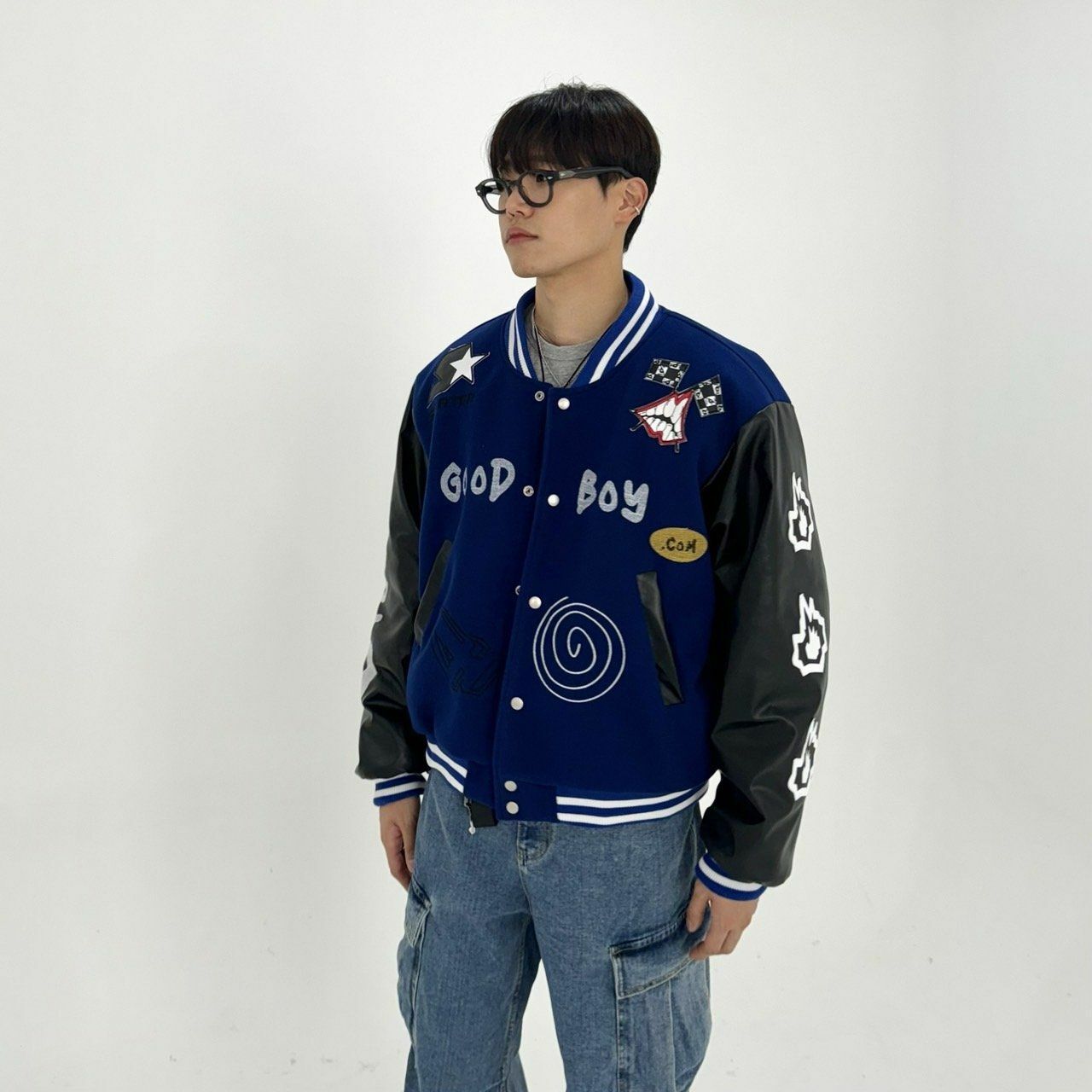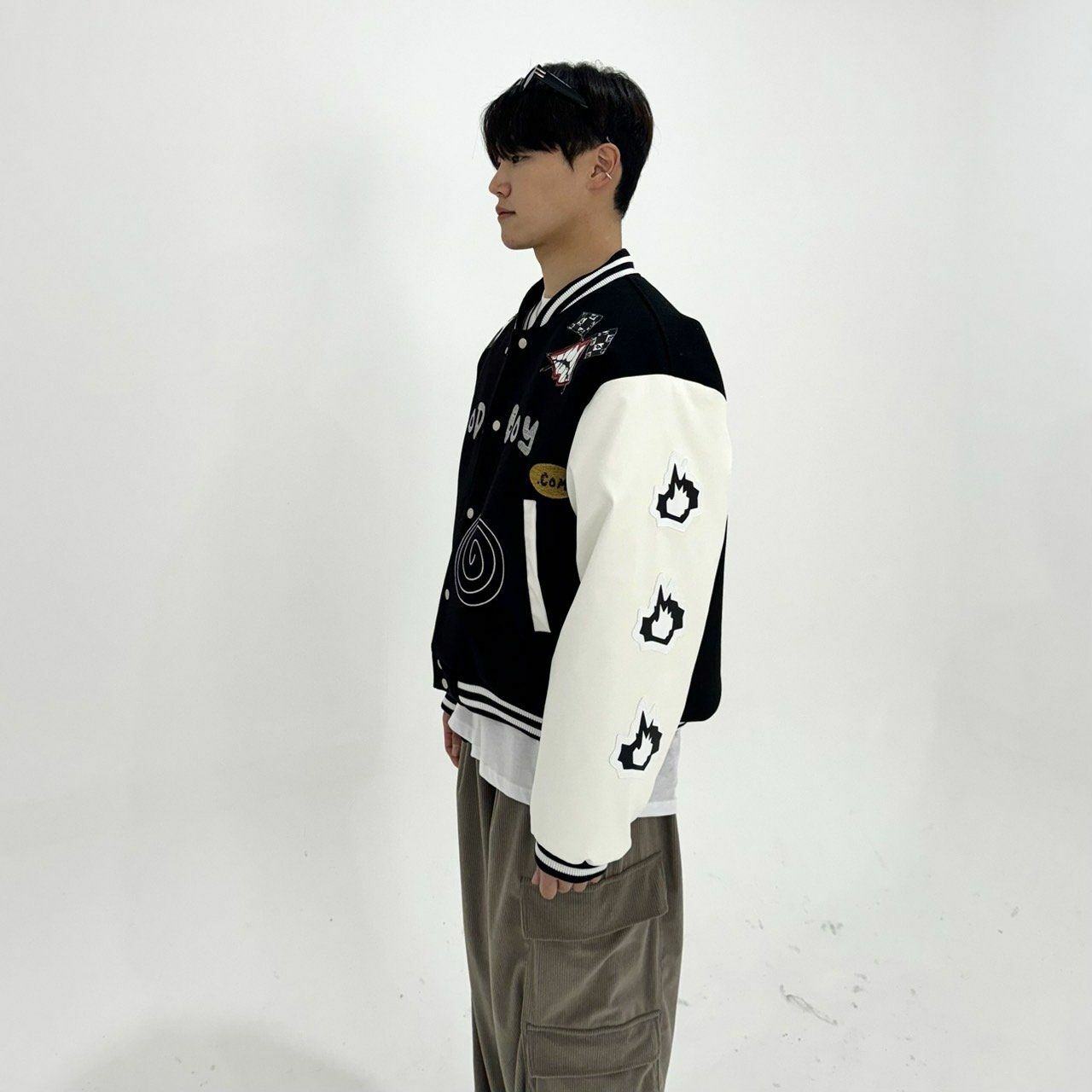 拼色英文字圖案棒球褸(薄夾棉) BY ATTENTION-094JK