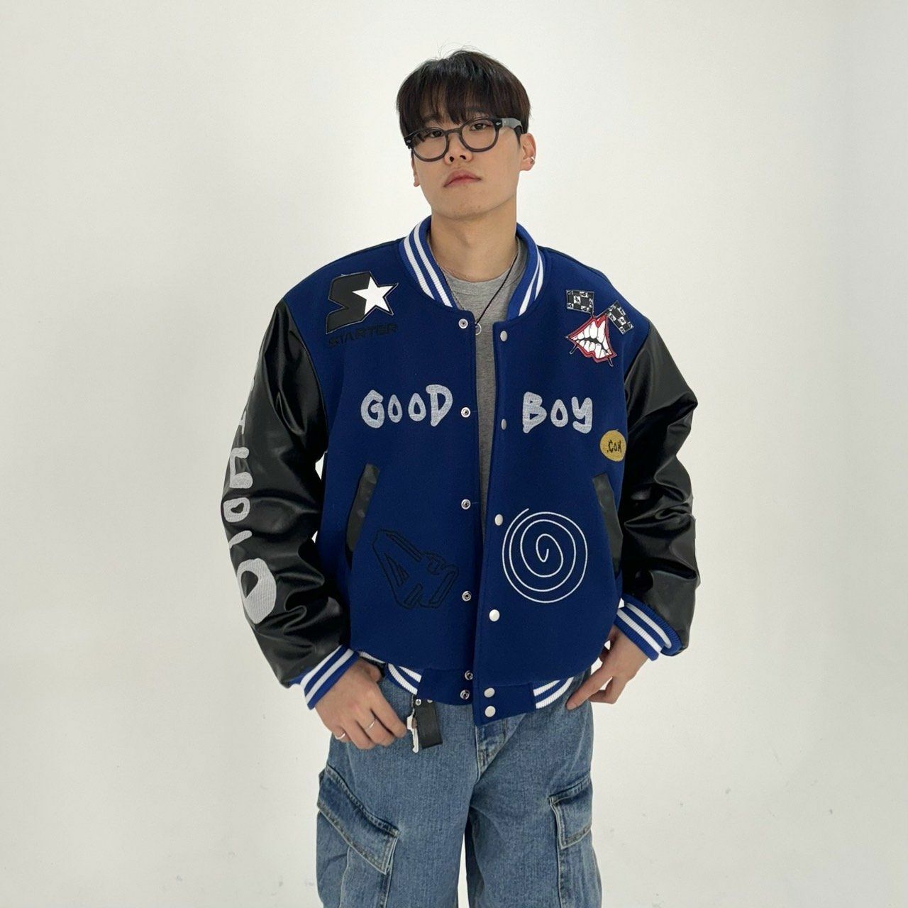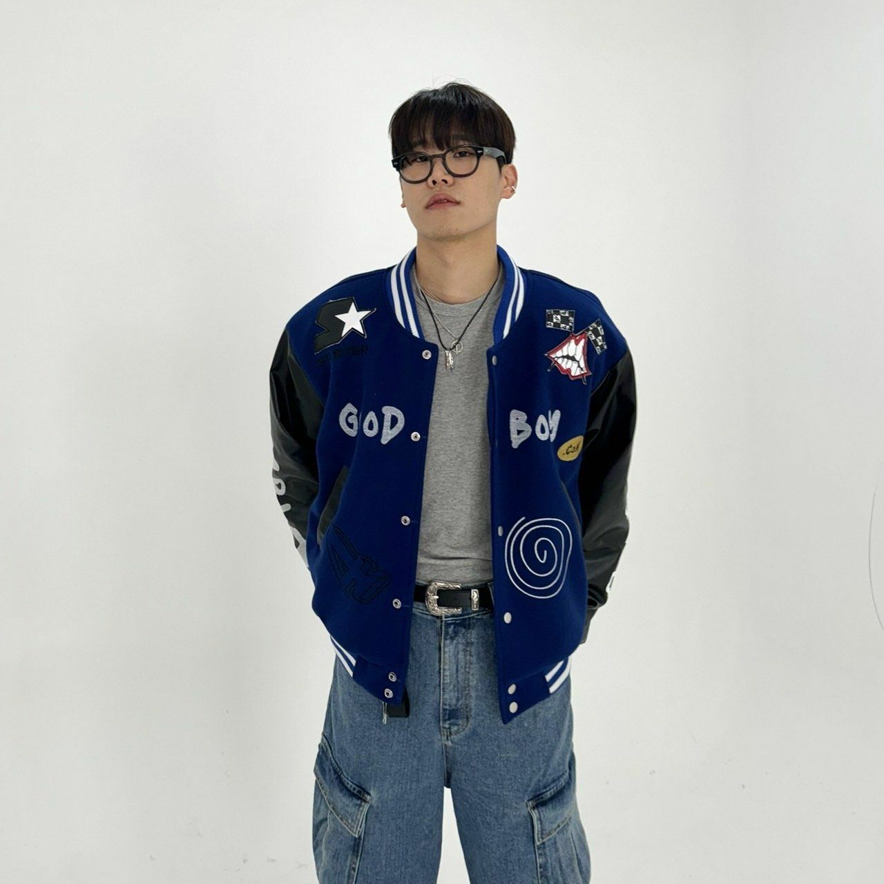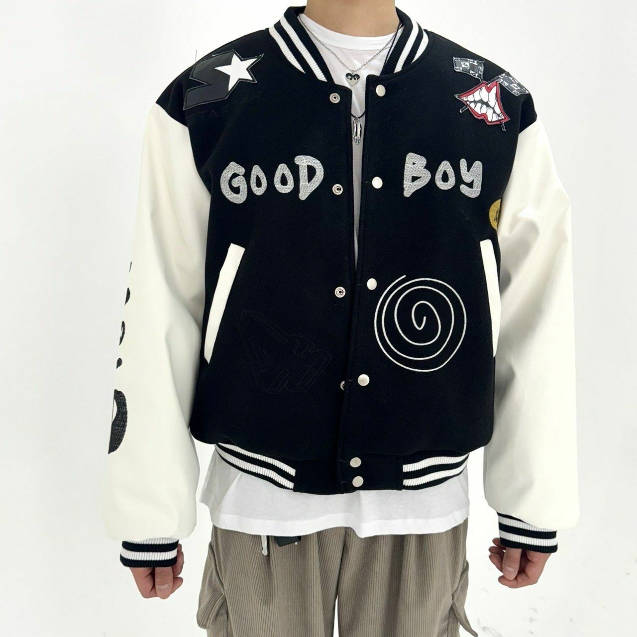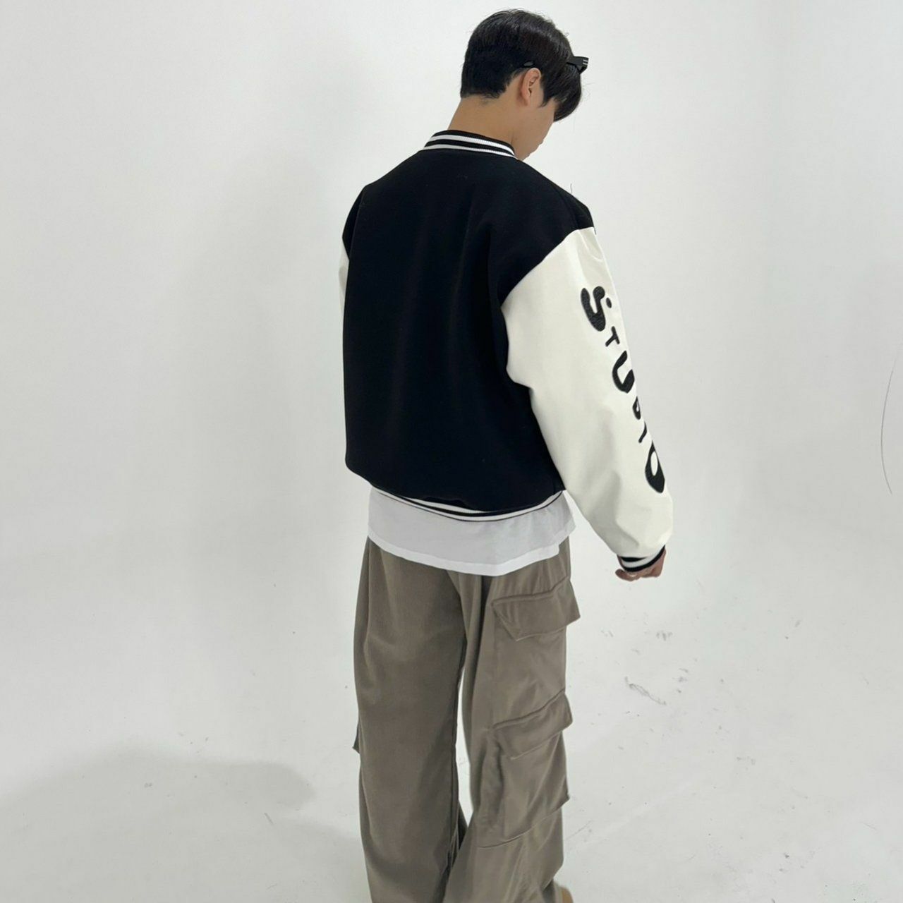 拼色英文字圖案棒球褸(薄夾棉) BY ATTENTION-094JK