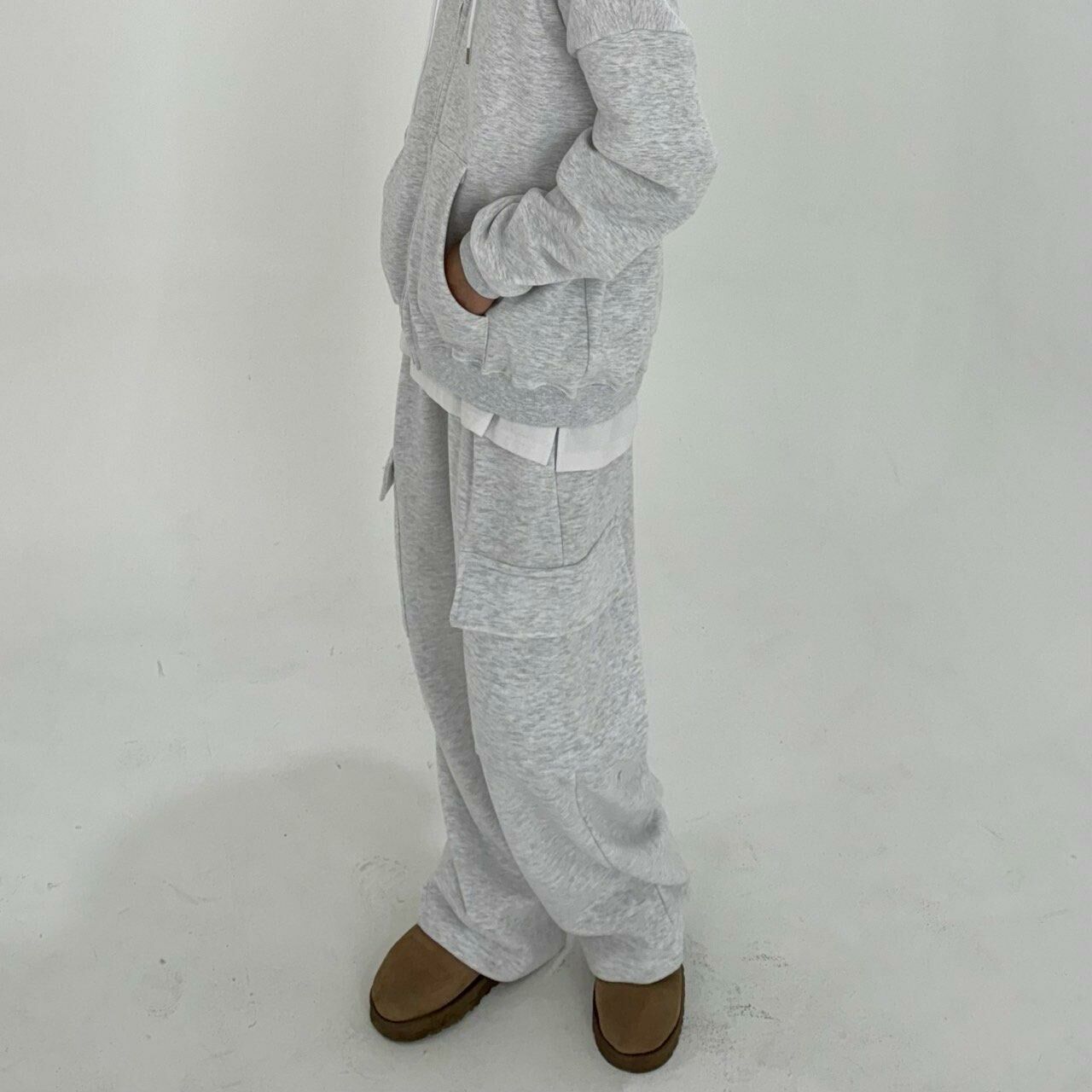 淨色棉質工裝鬆身褲(薄抓毛底) BY ATTENTION-099P-599