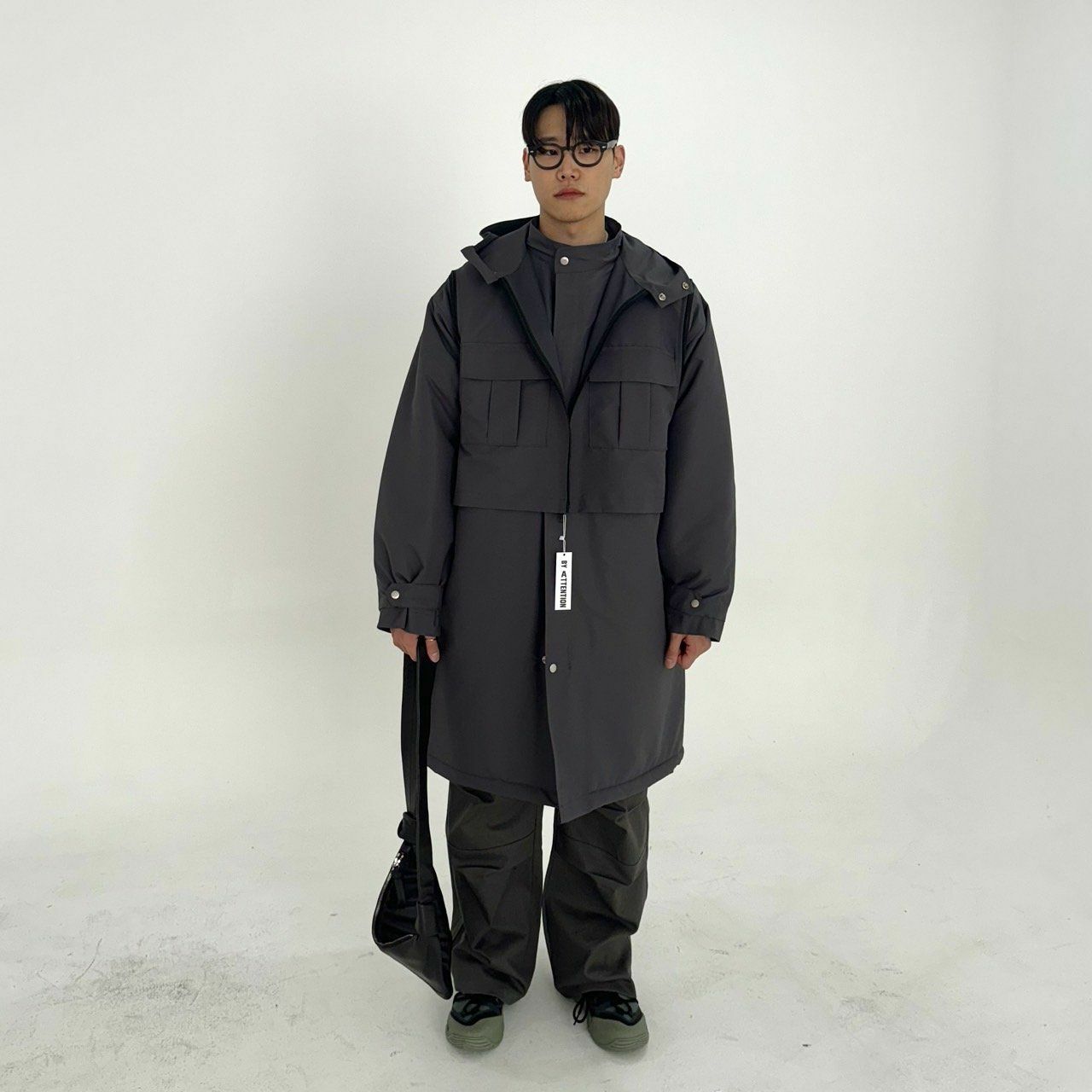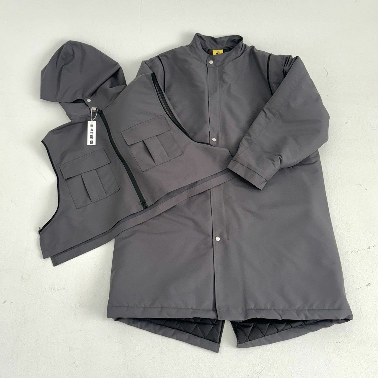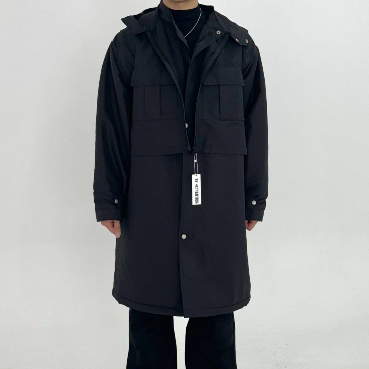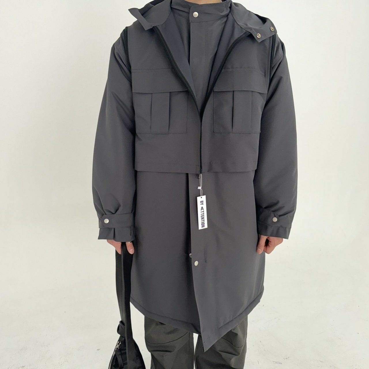 淨色連帽背心連企領拉鍊長褸 BY ATTENTION-102JK