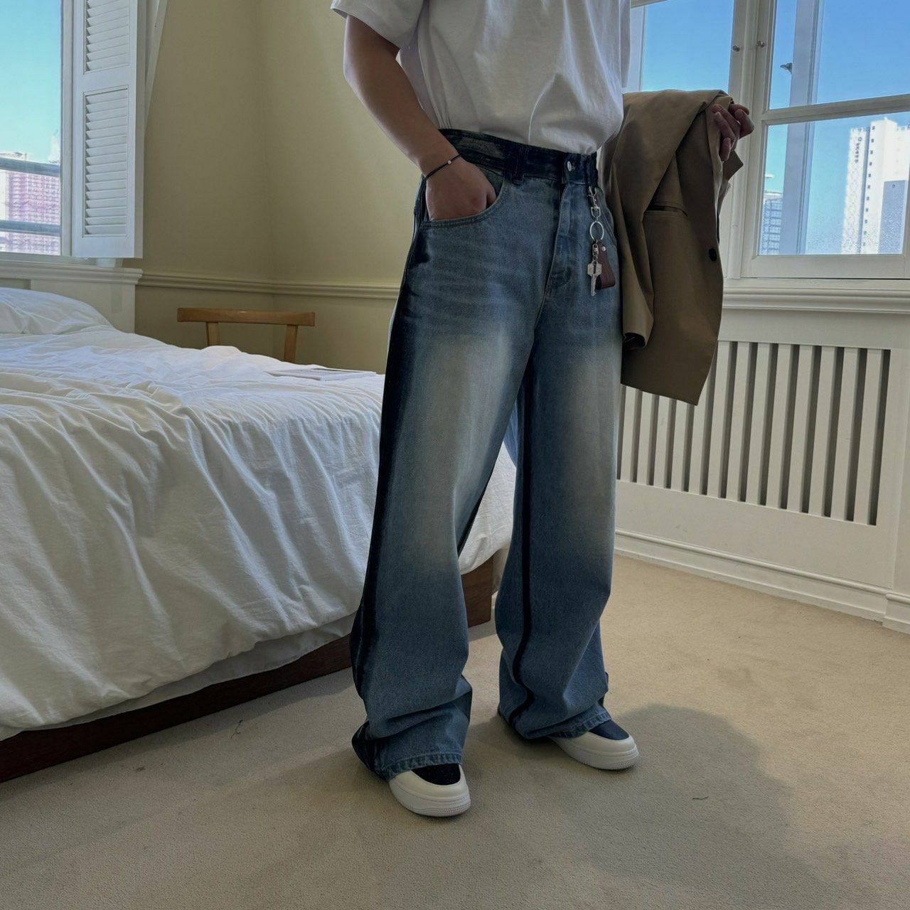 洗水拼色鬆身牛仔褲 BY ATTENTION-139J