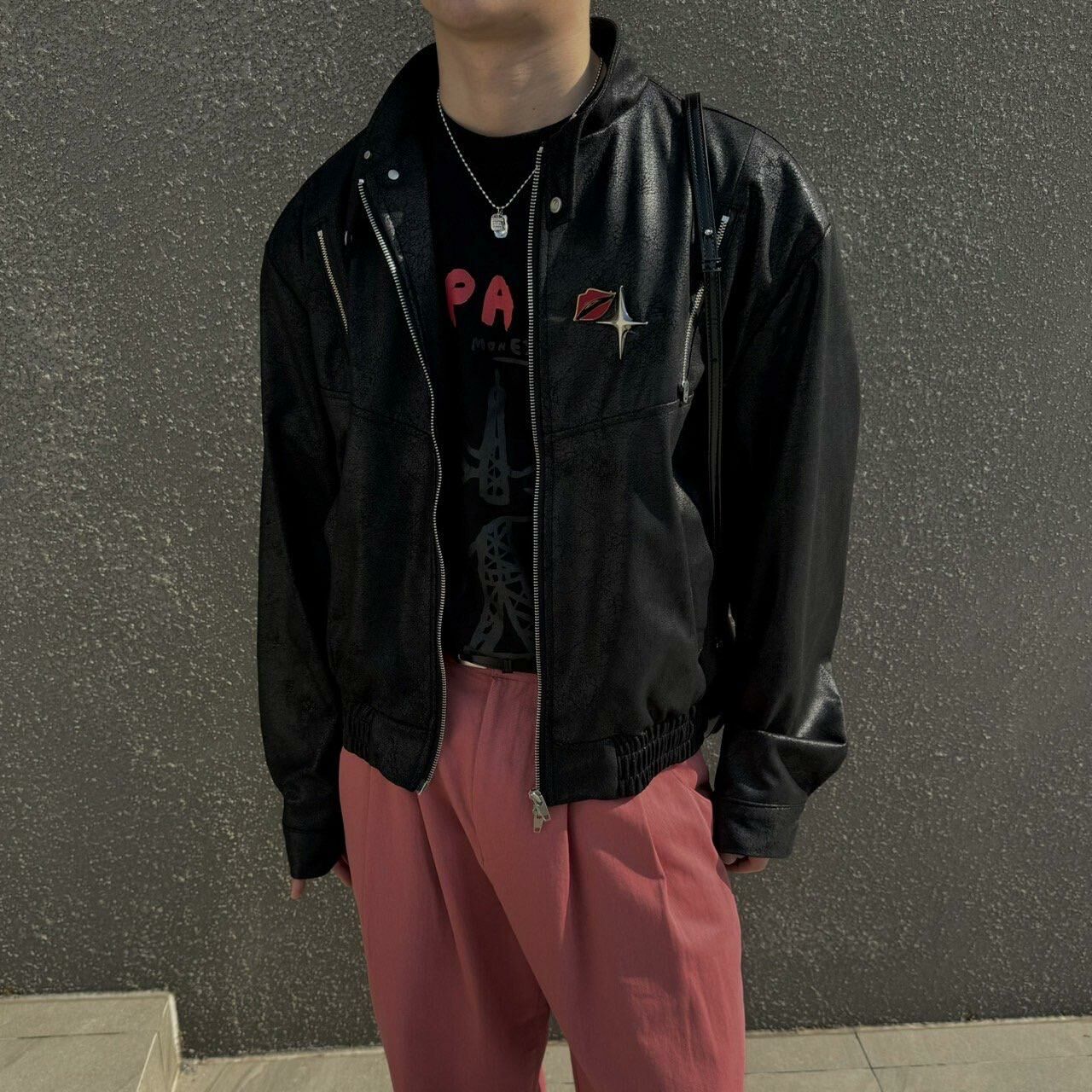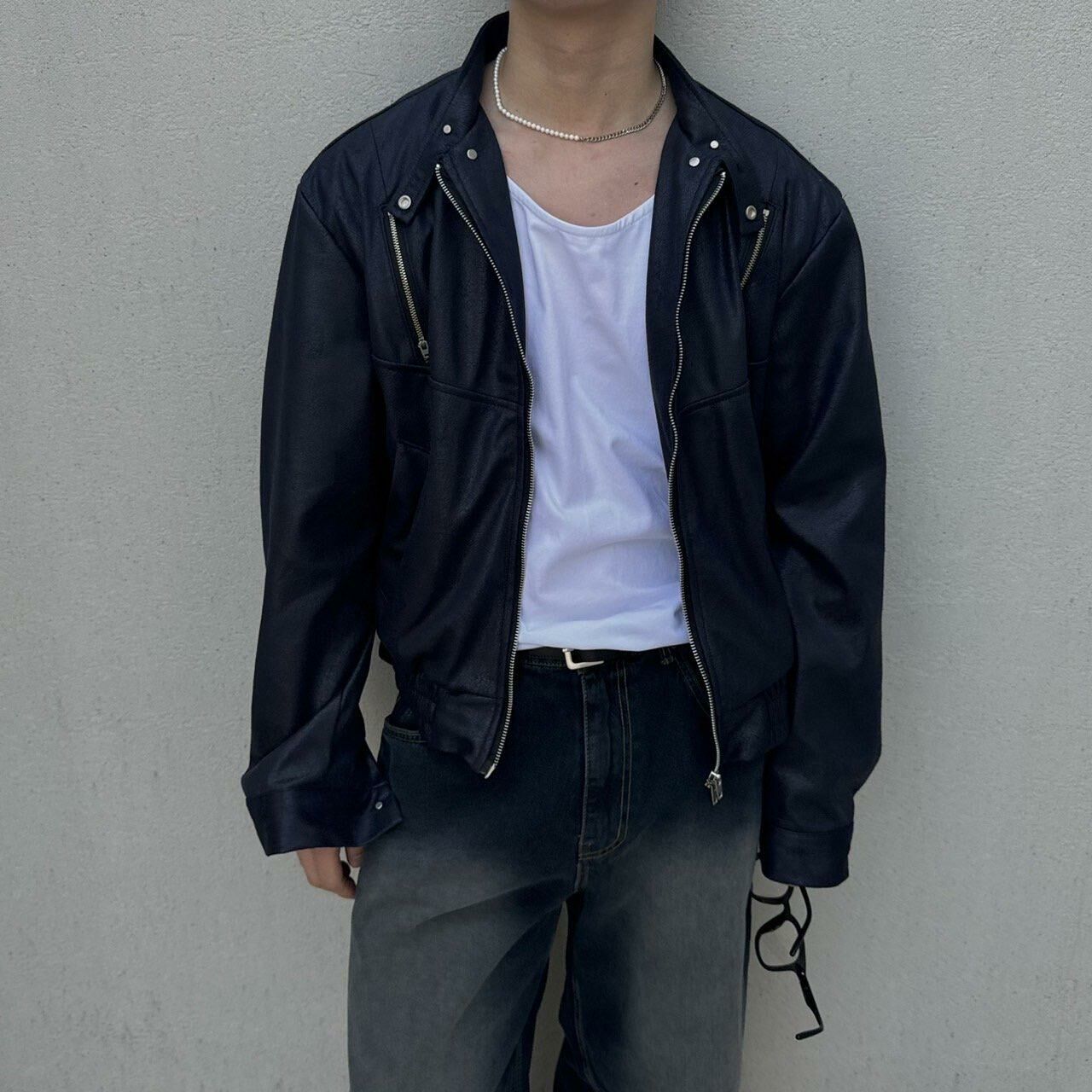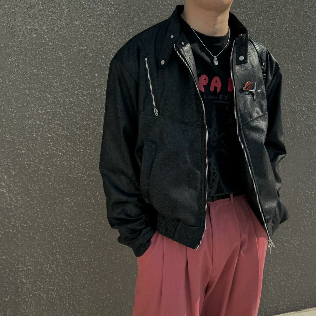 企領拉鍊合成皮褸 BY ATTENTION-166JK