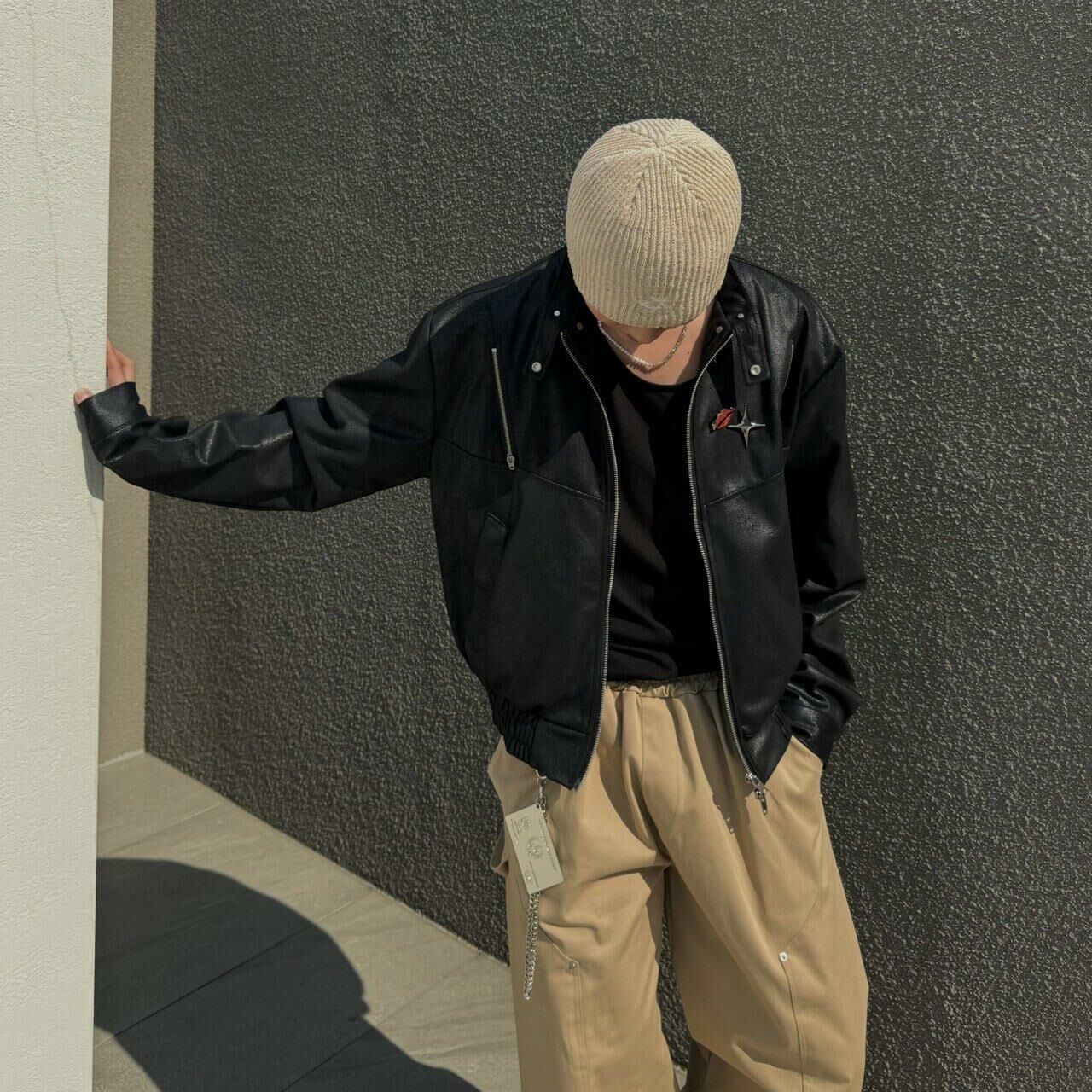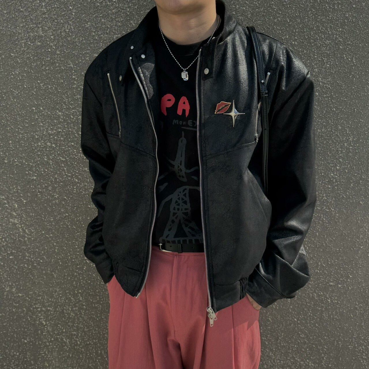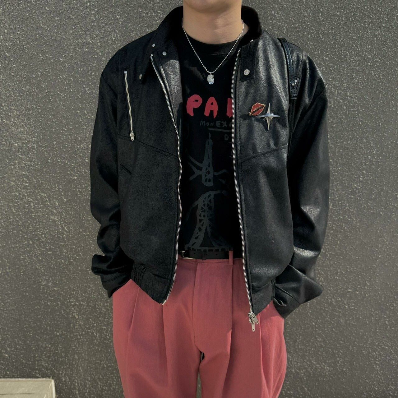 企領拉鍊合成皮褸 BY ATTENTION-166JK