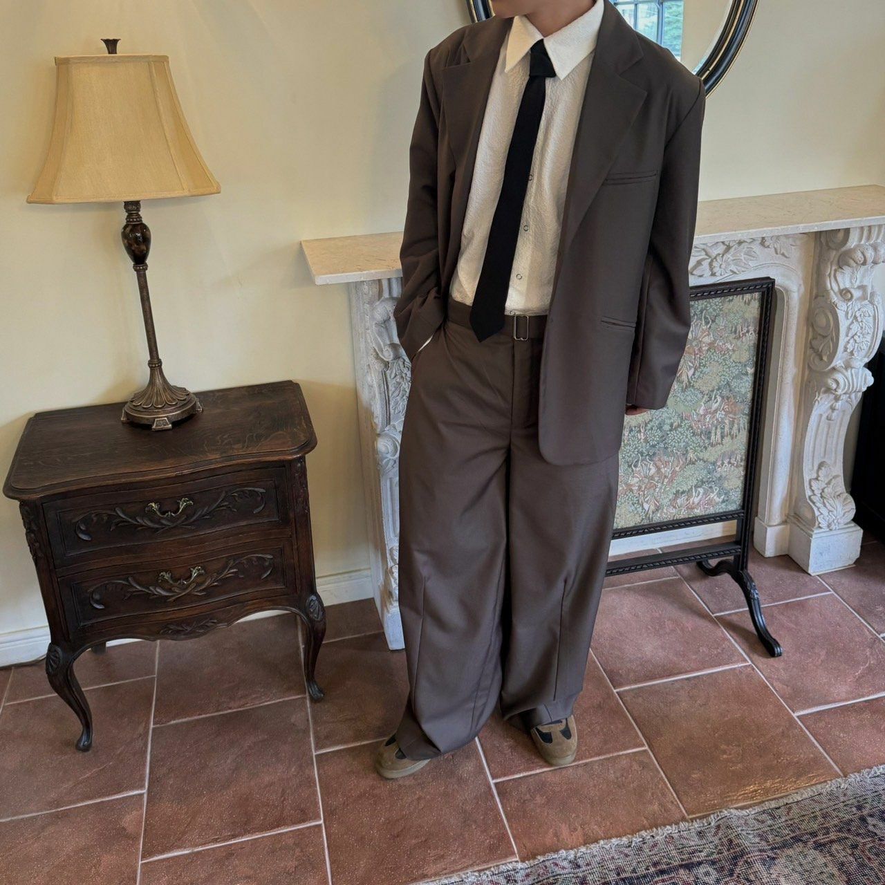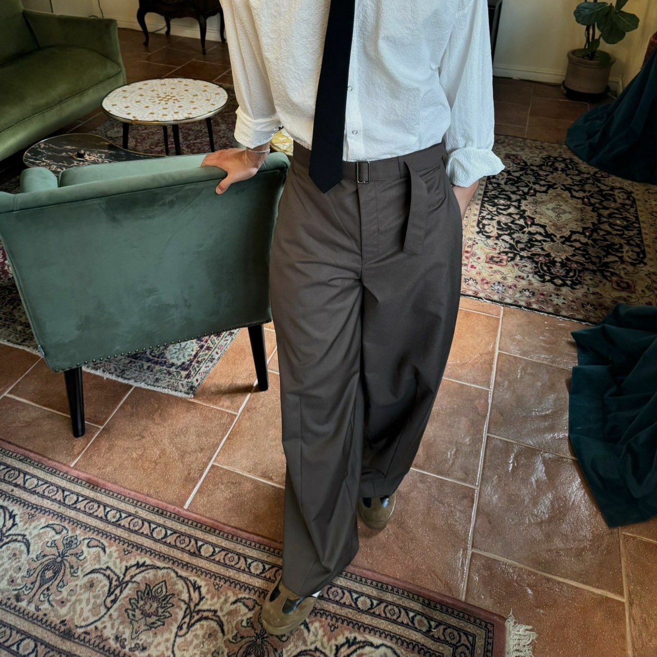 淨色連腰帶鬆身西褲 BY ATTENTION-256P
