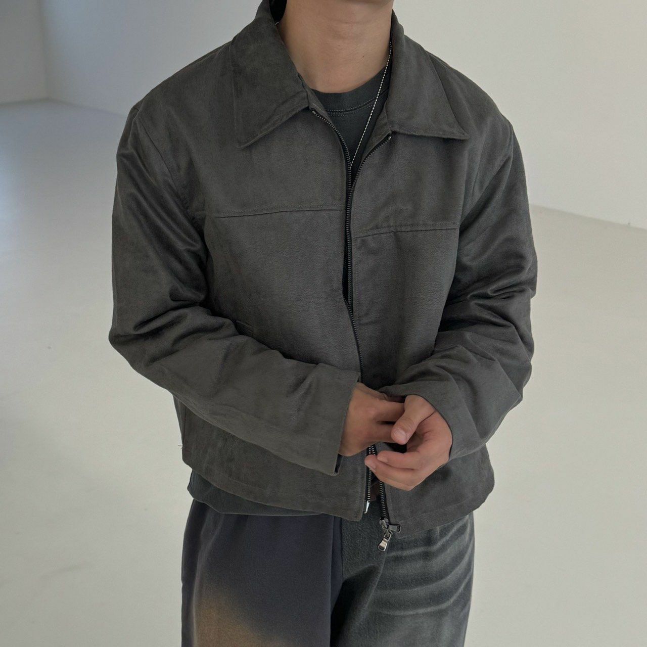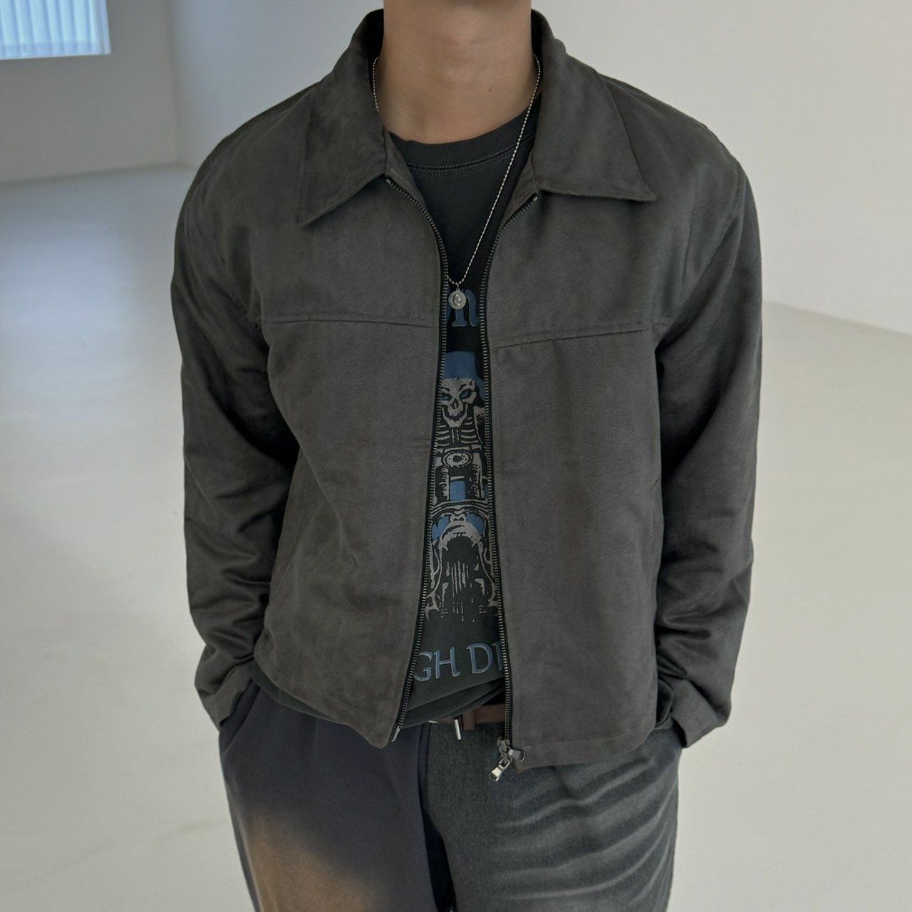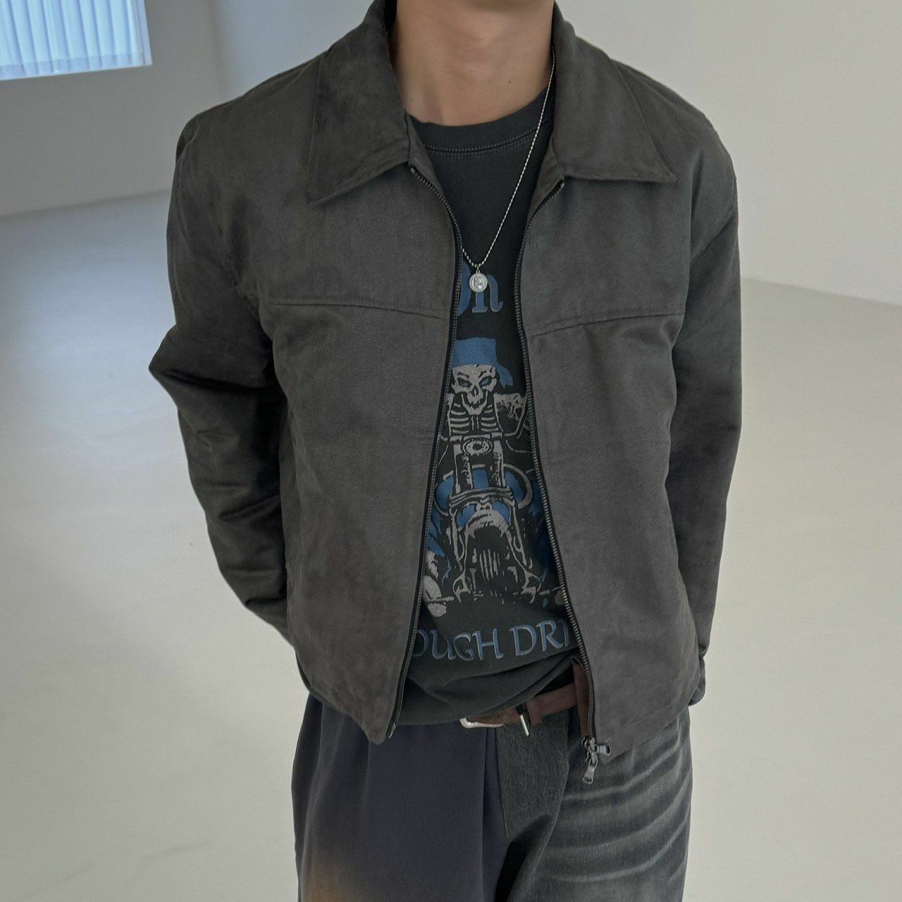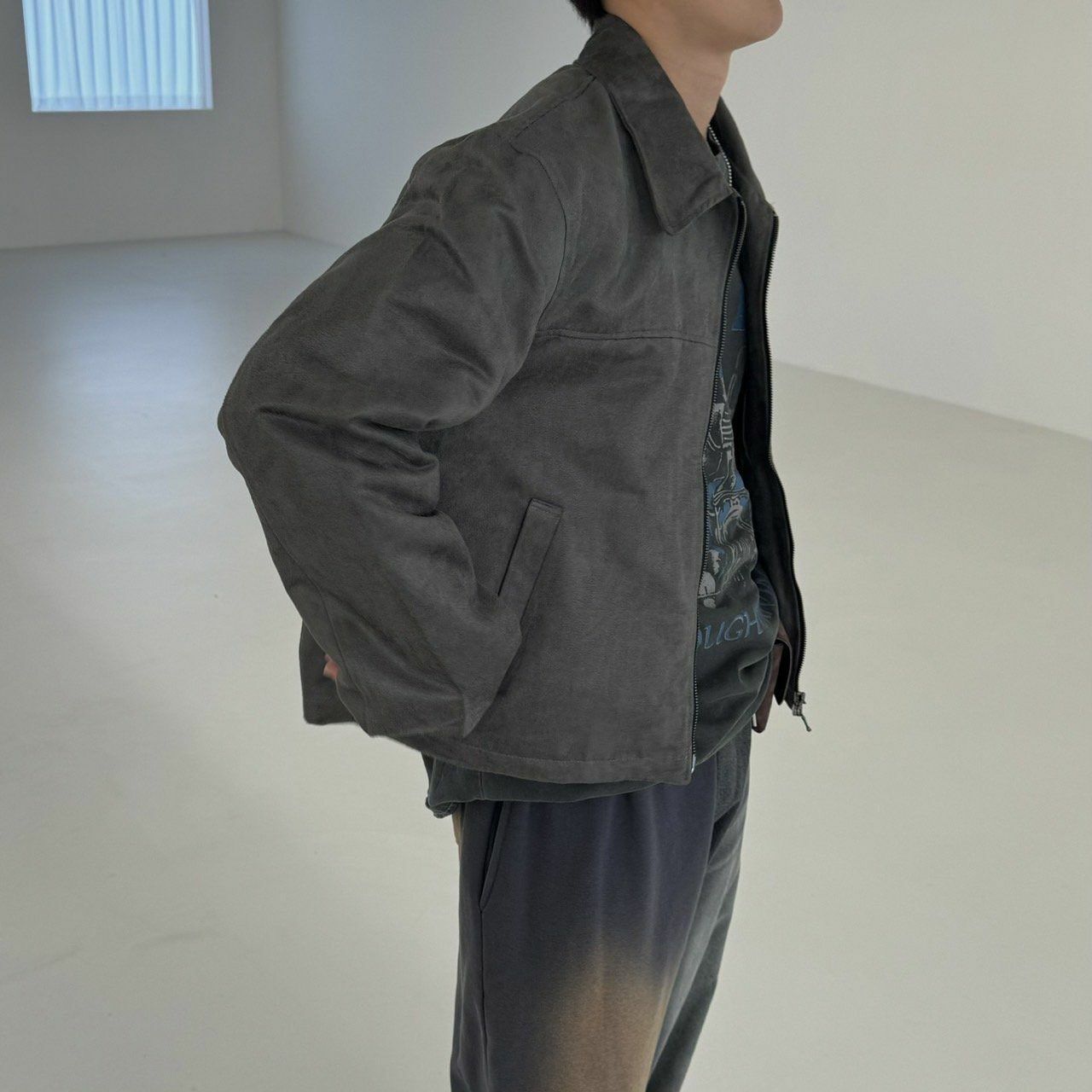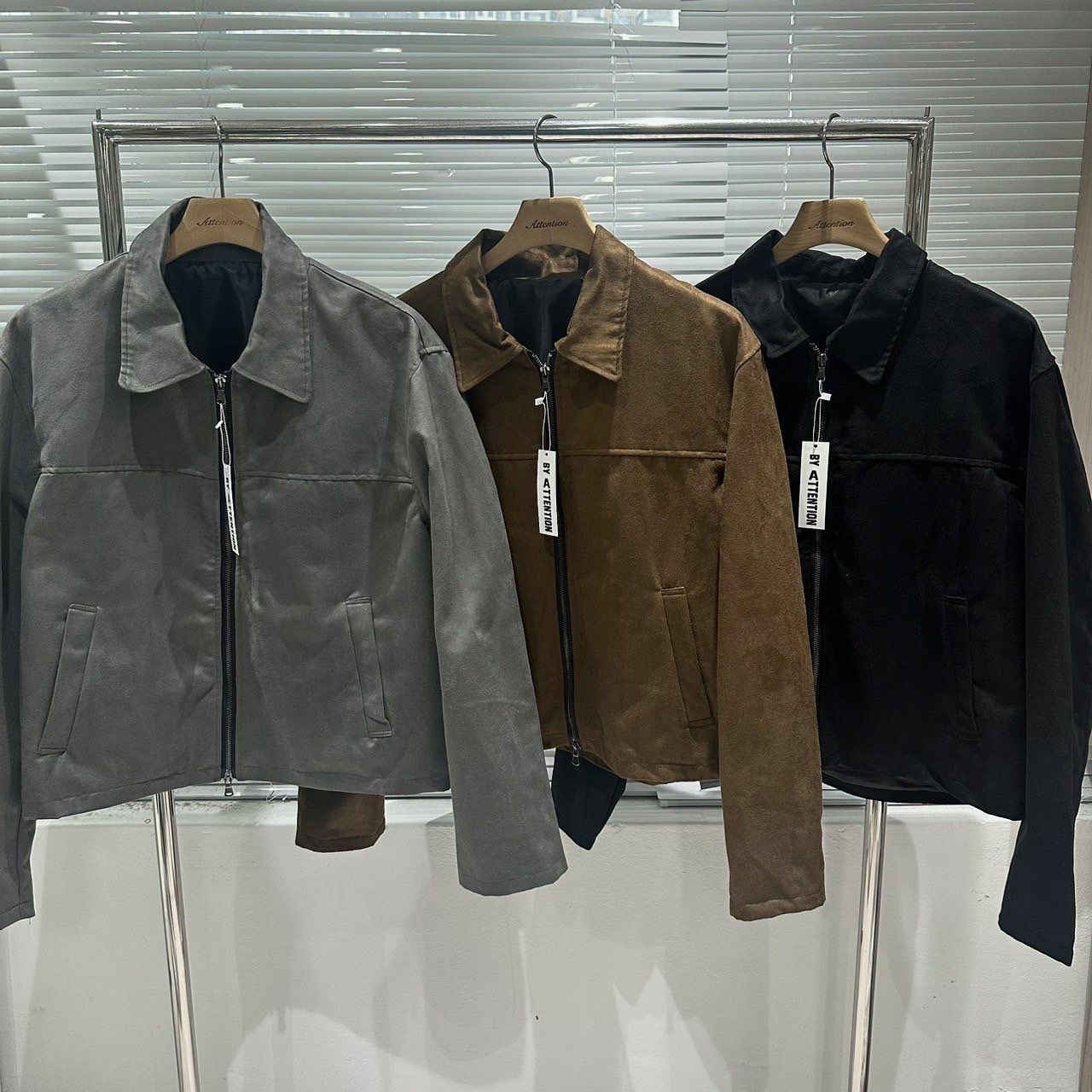 淨色反領拉鍊猄面外套 BY ATTENTION-296JK