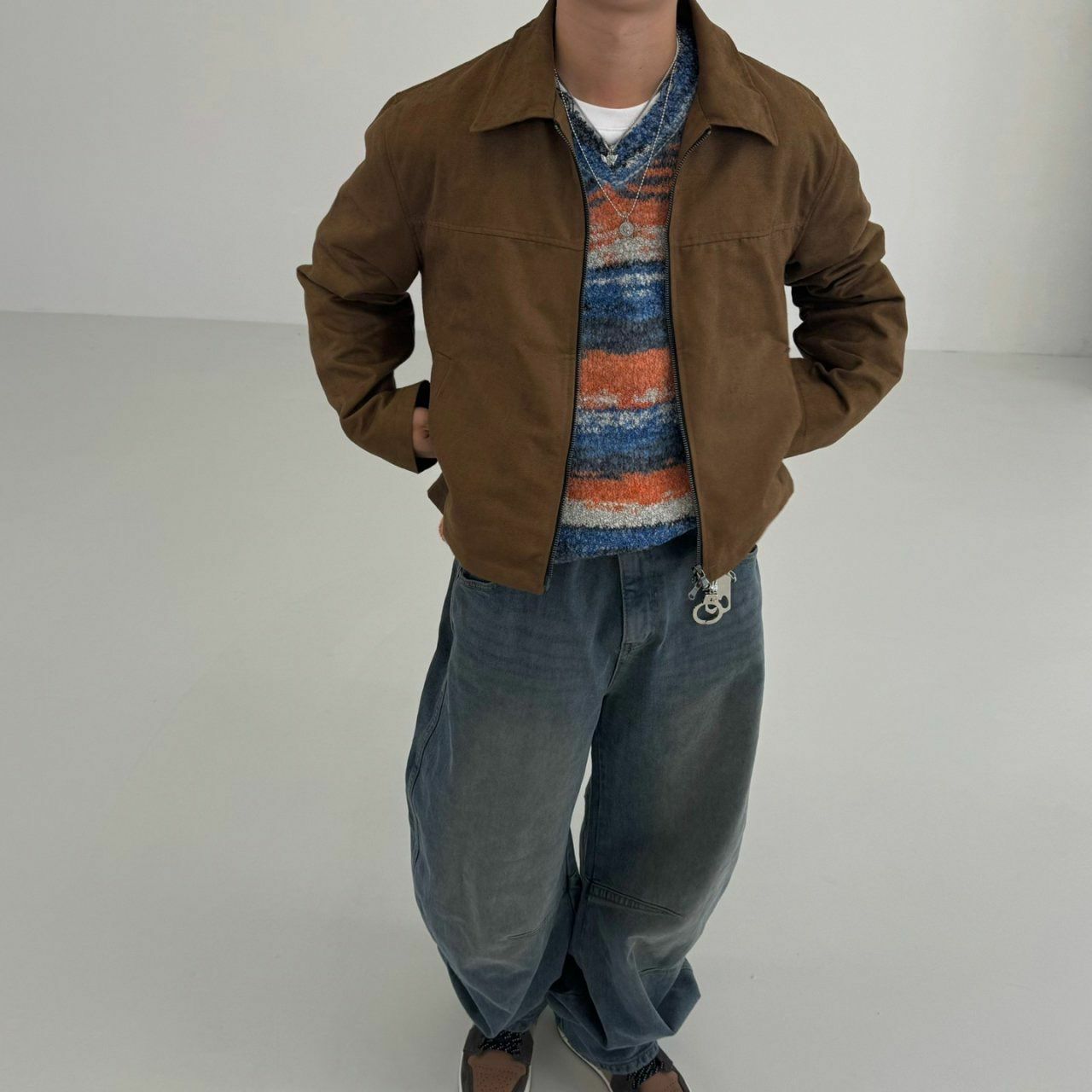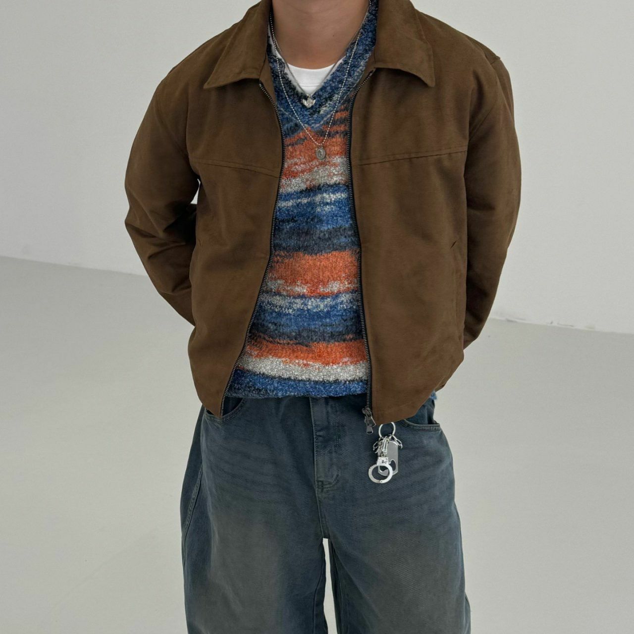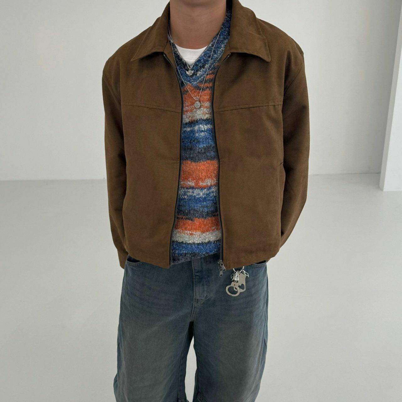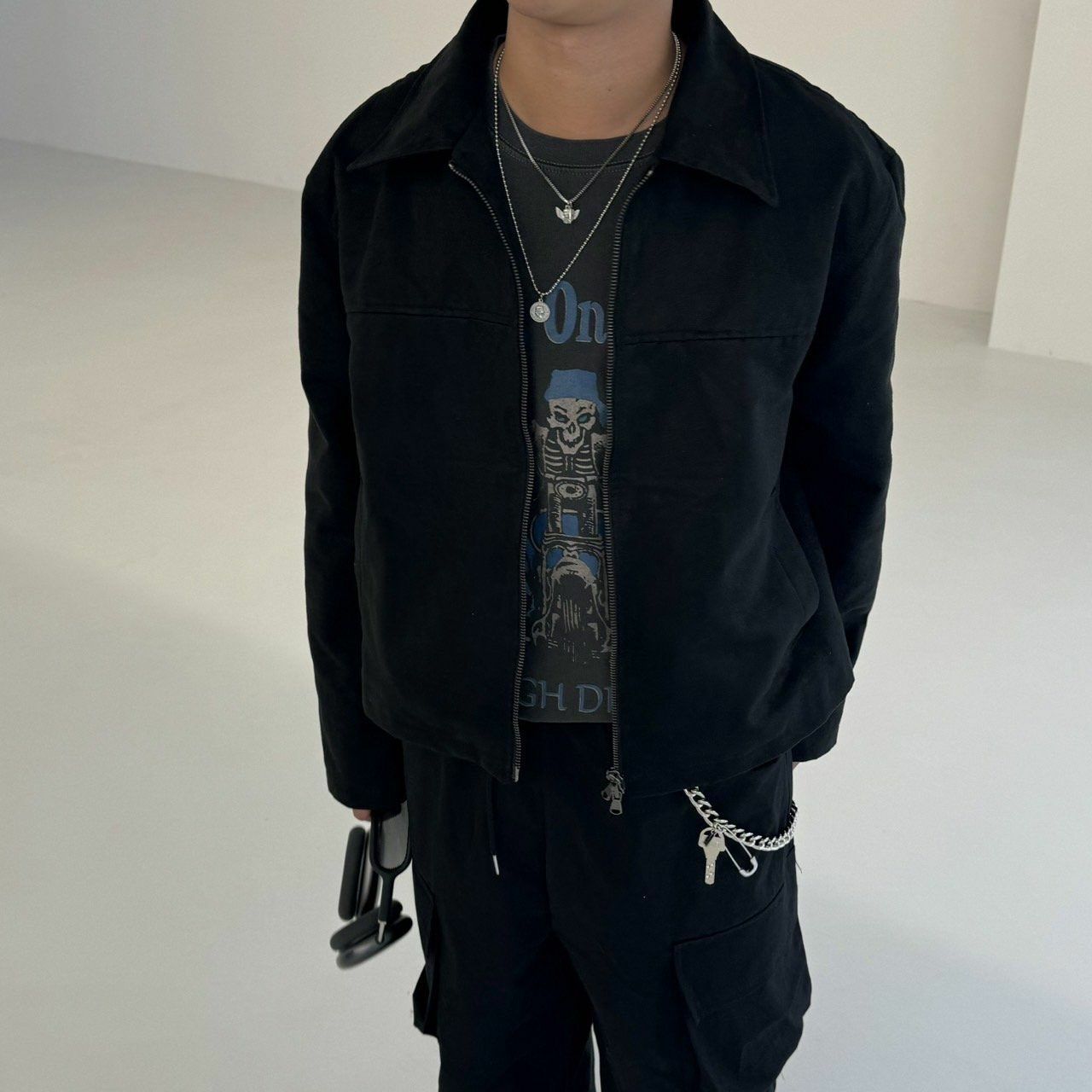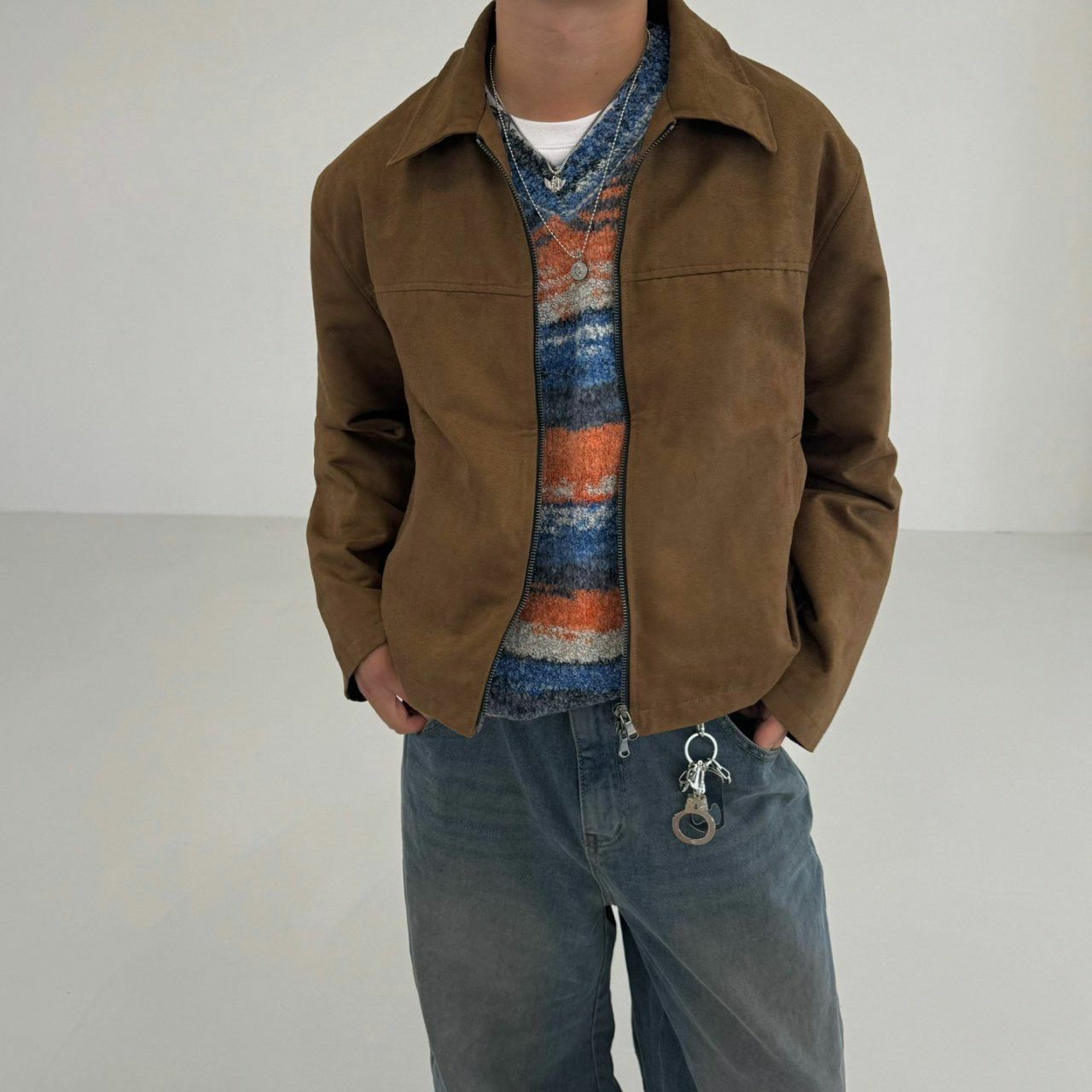 淨色反領拉鍊猄面外套 BY ATTENTION-296JK