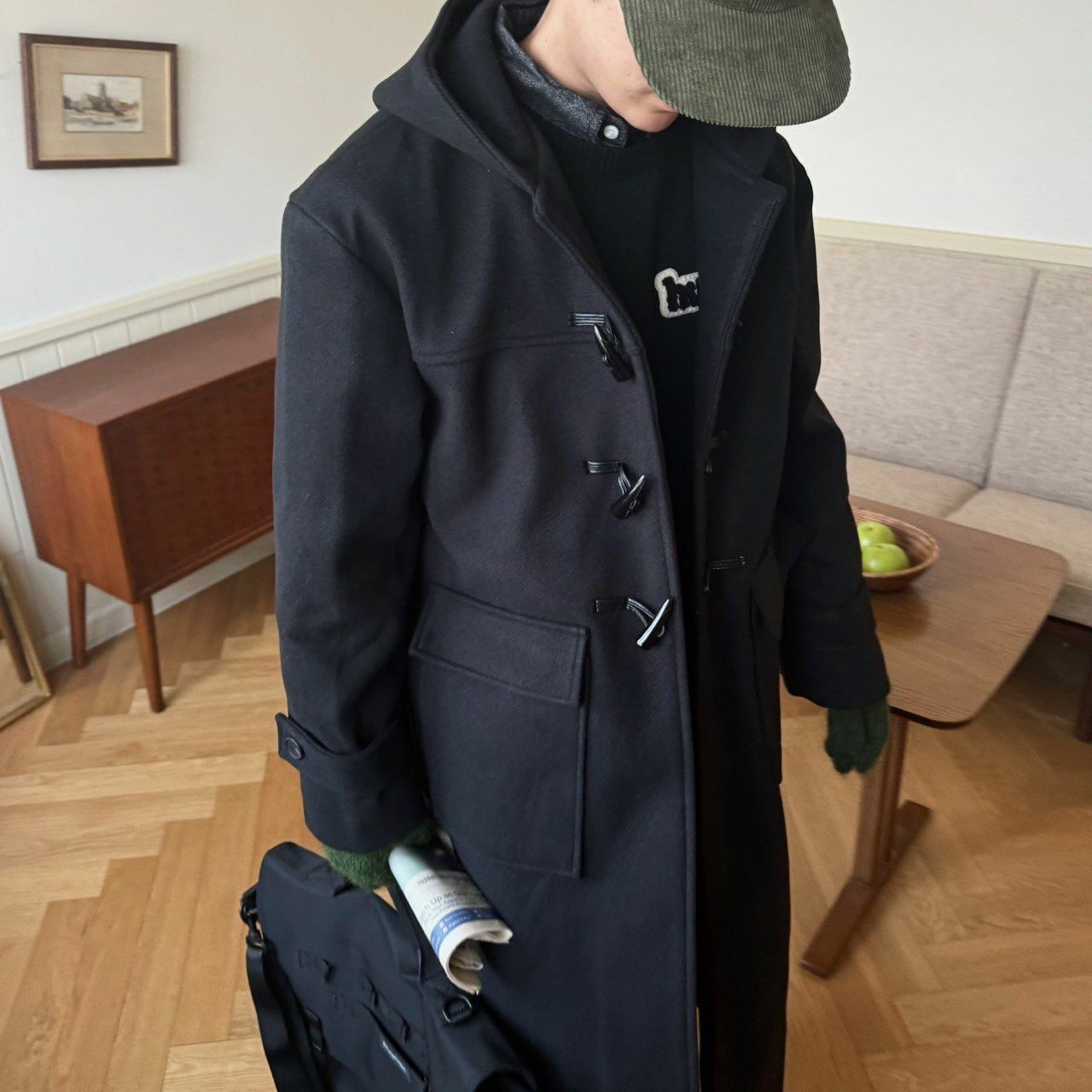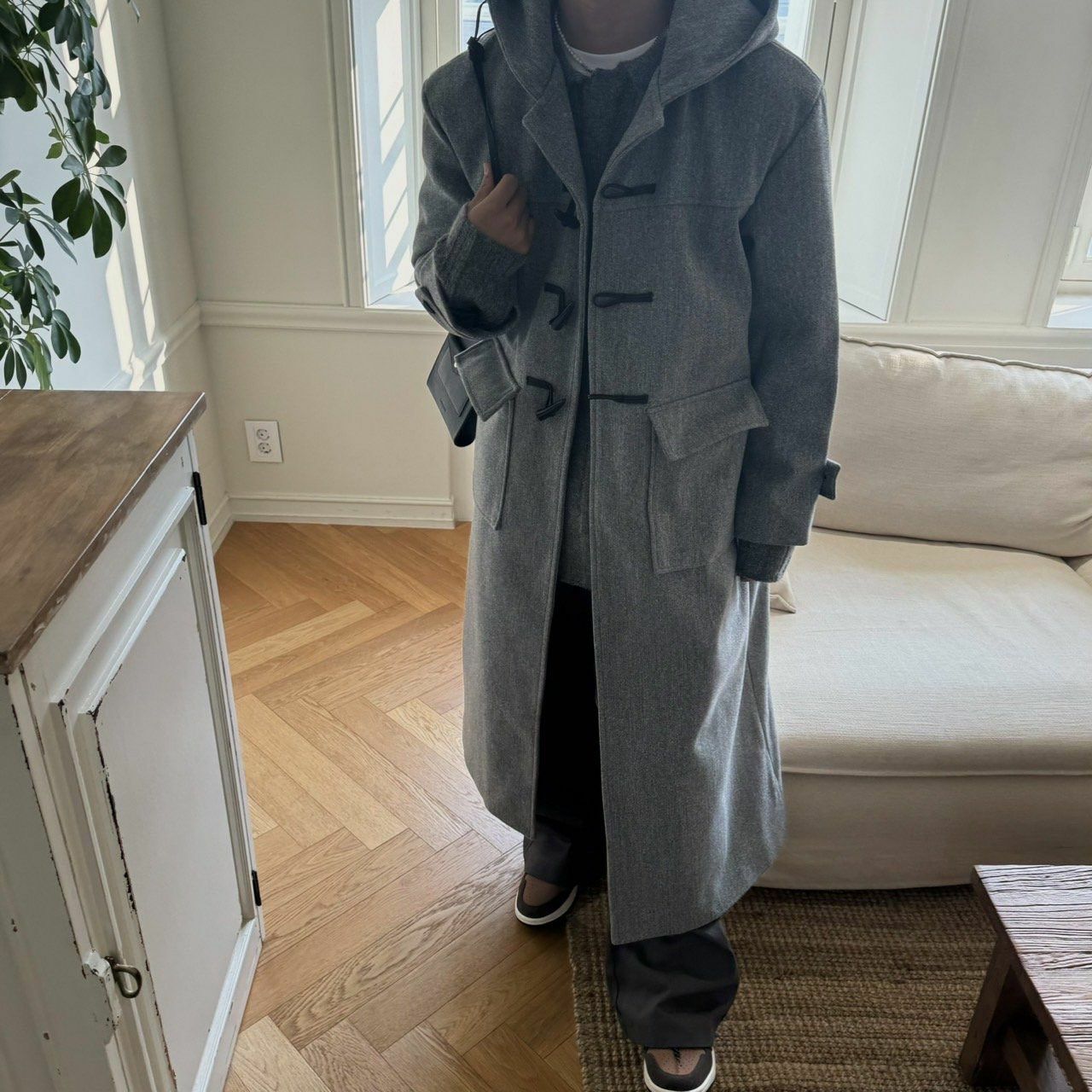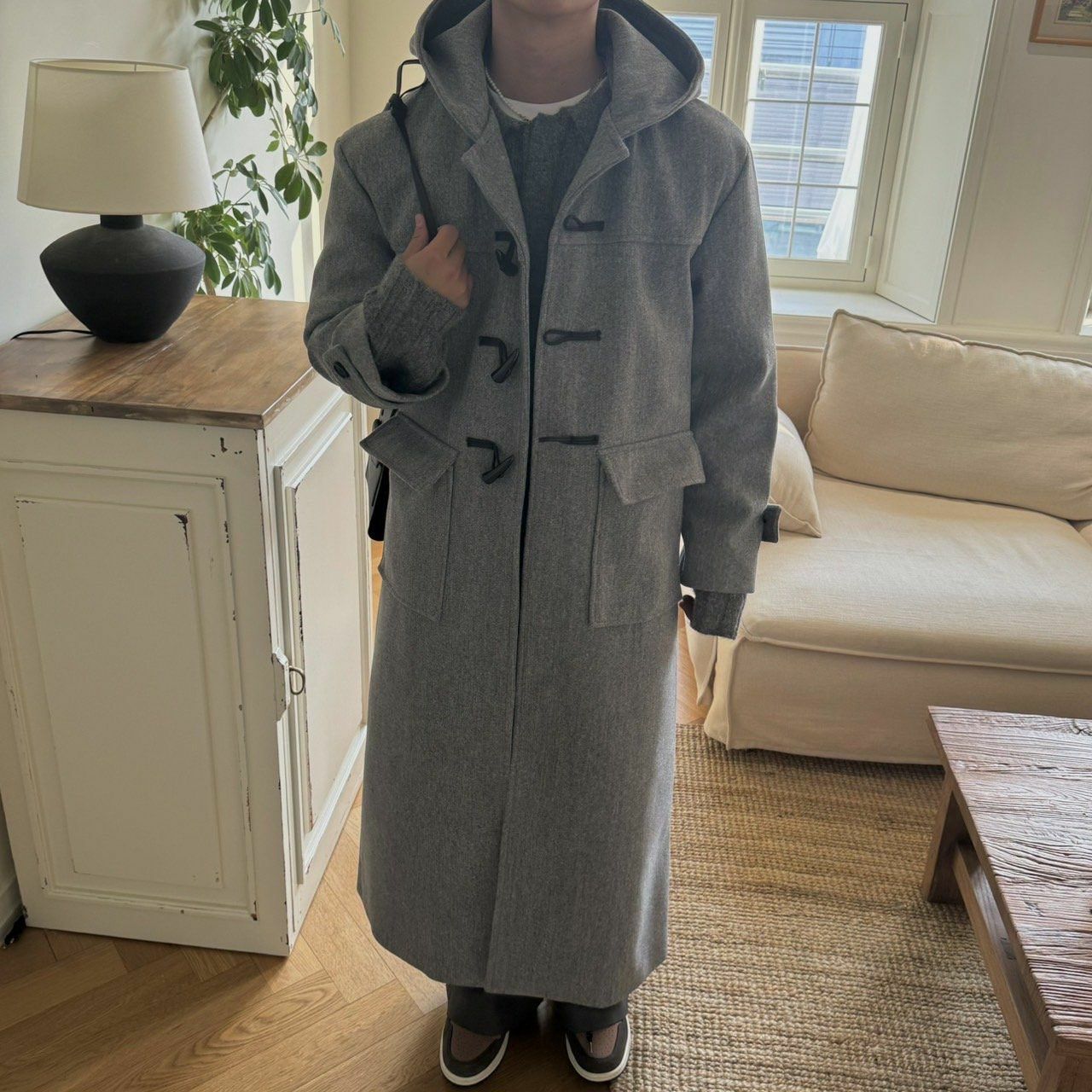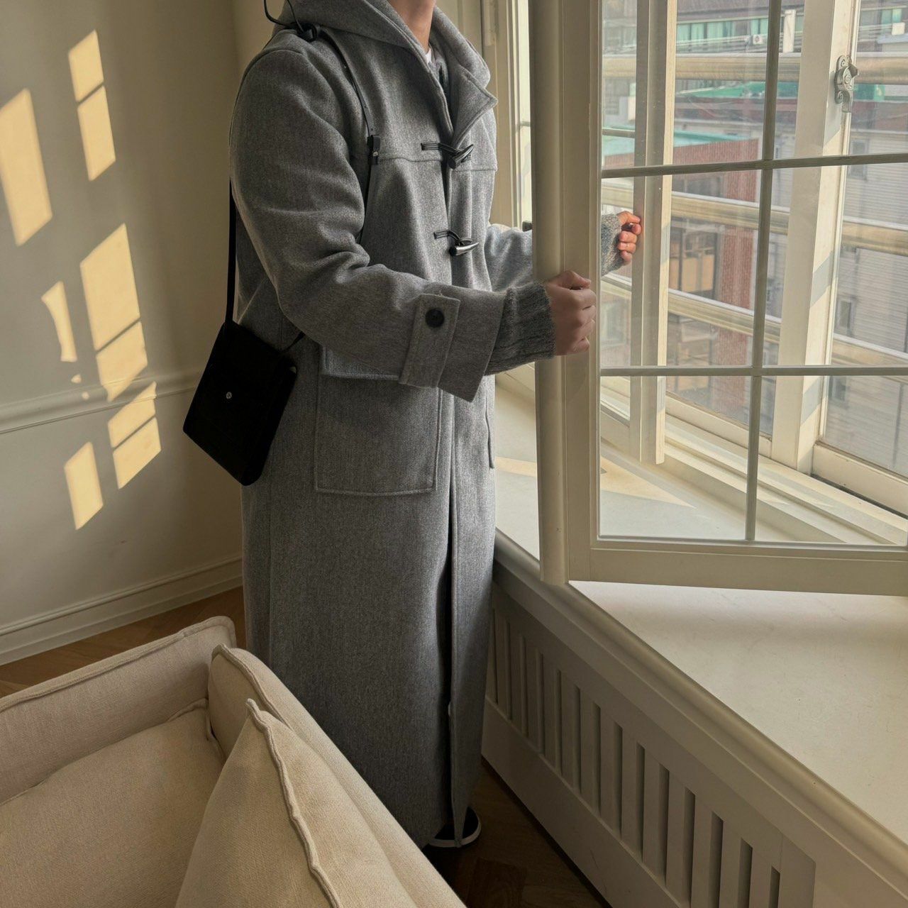 淨色牛角鈕連帽長褸 BY ATTENTION-301JK