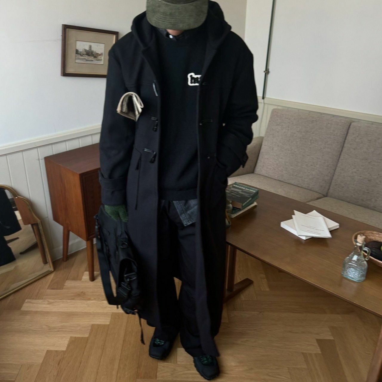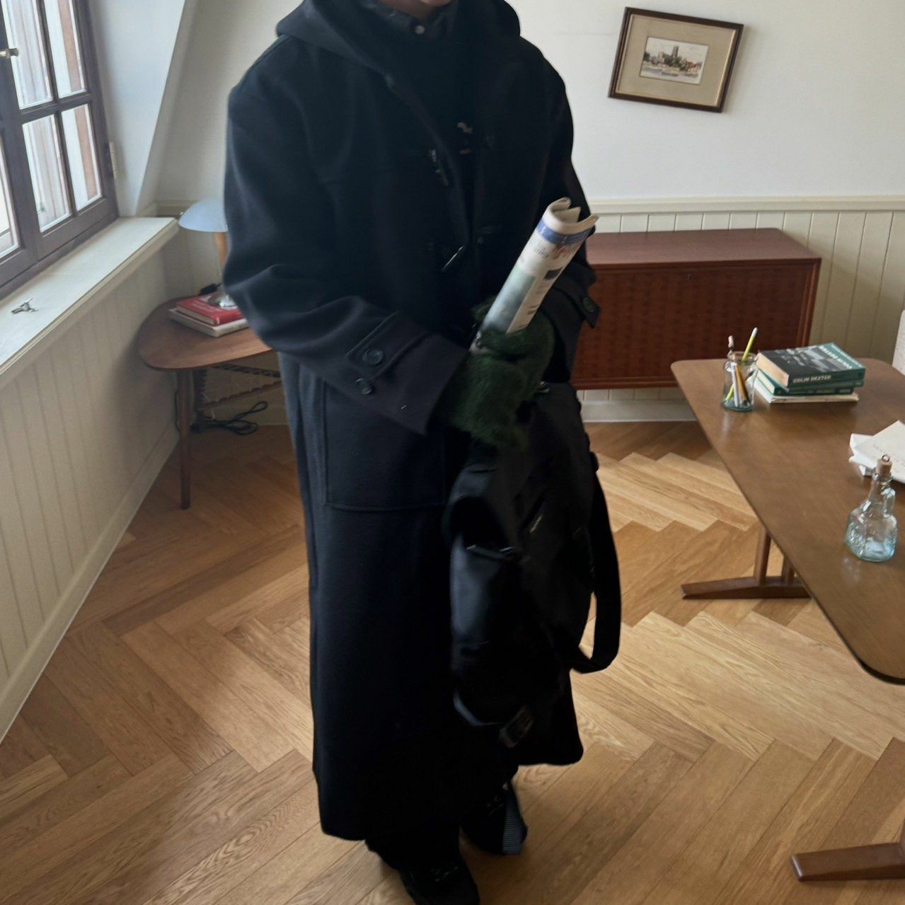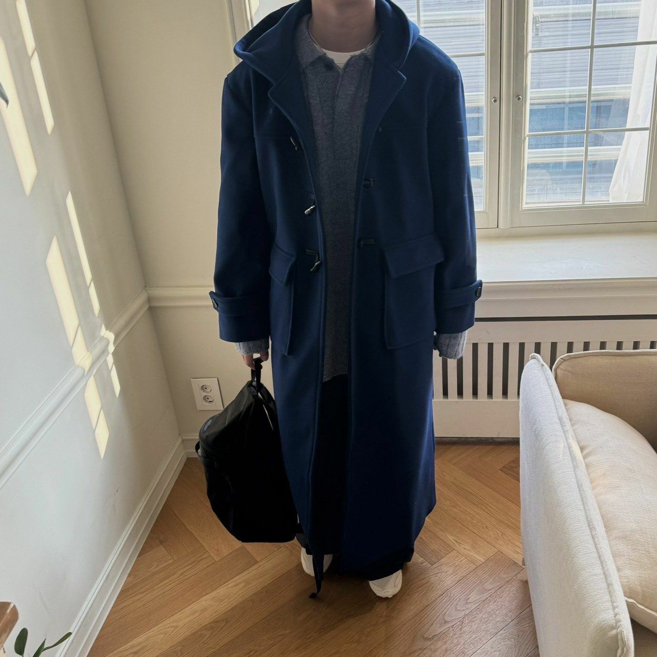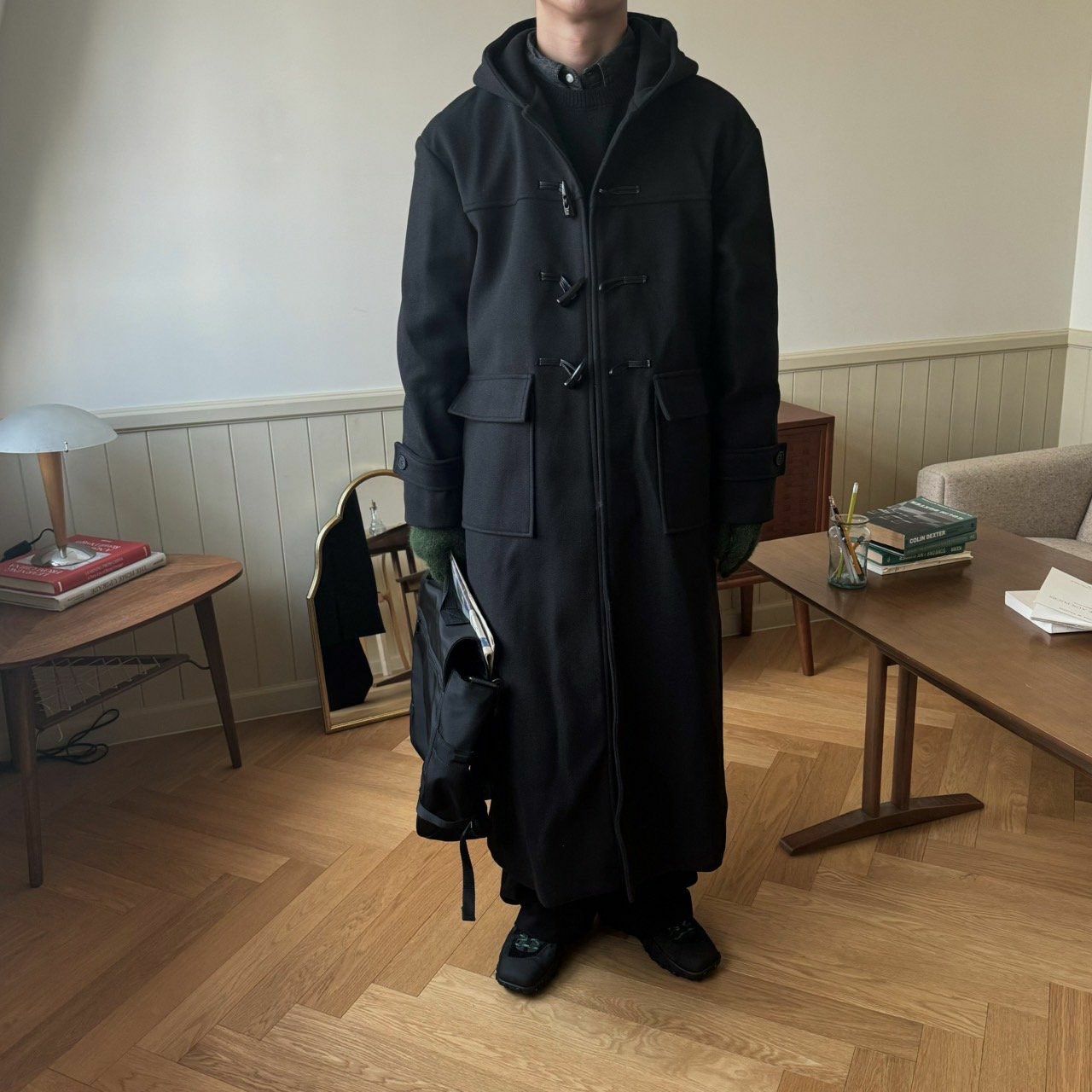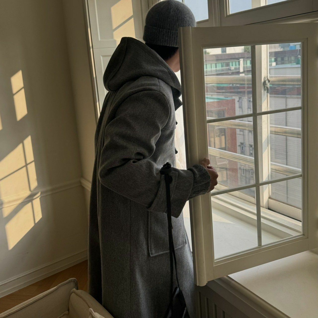 淨色牛角鈕連帽長褸 BY ATTENTION-301JK