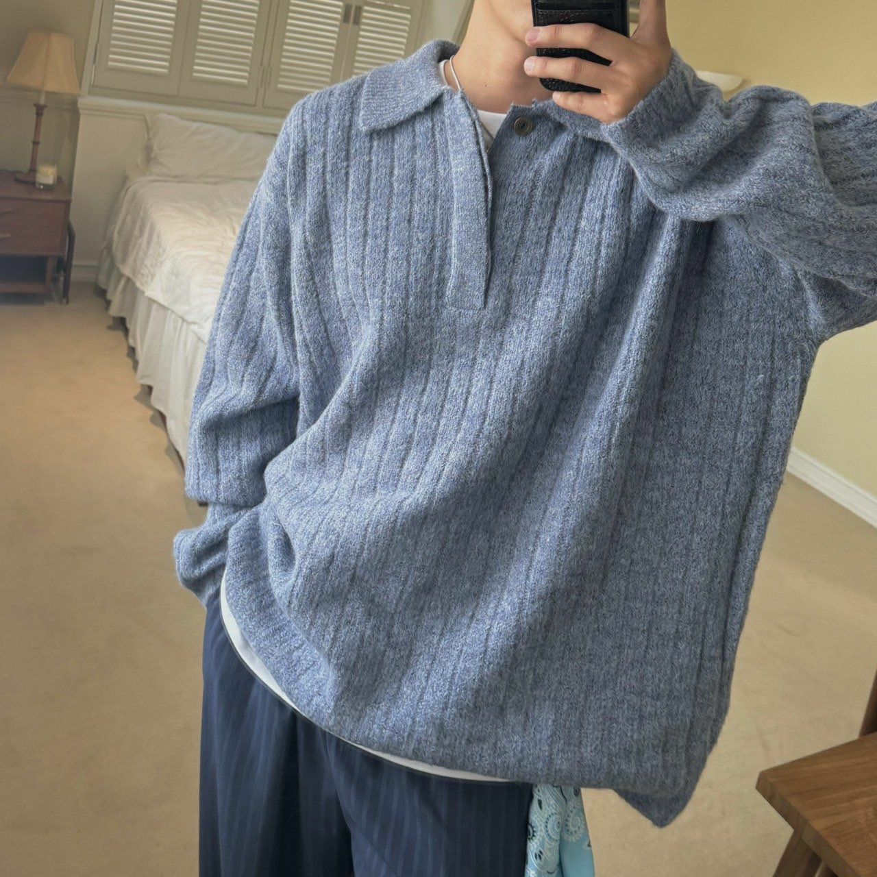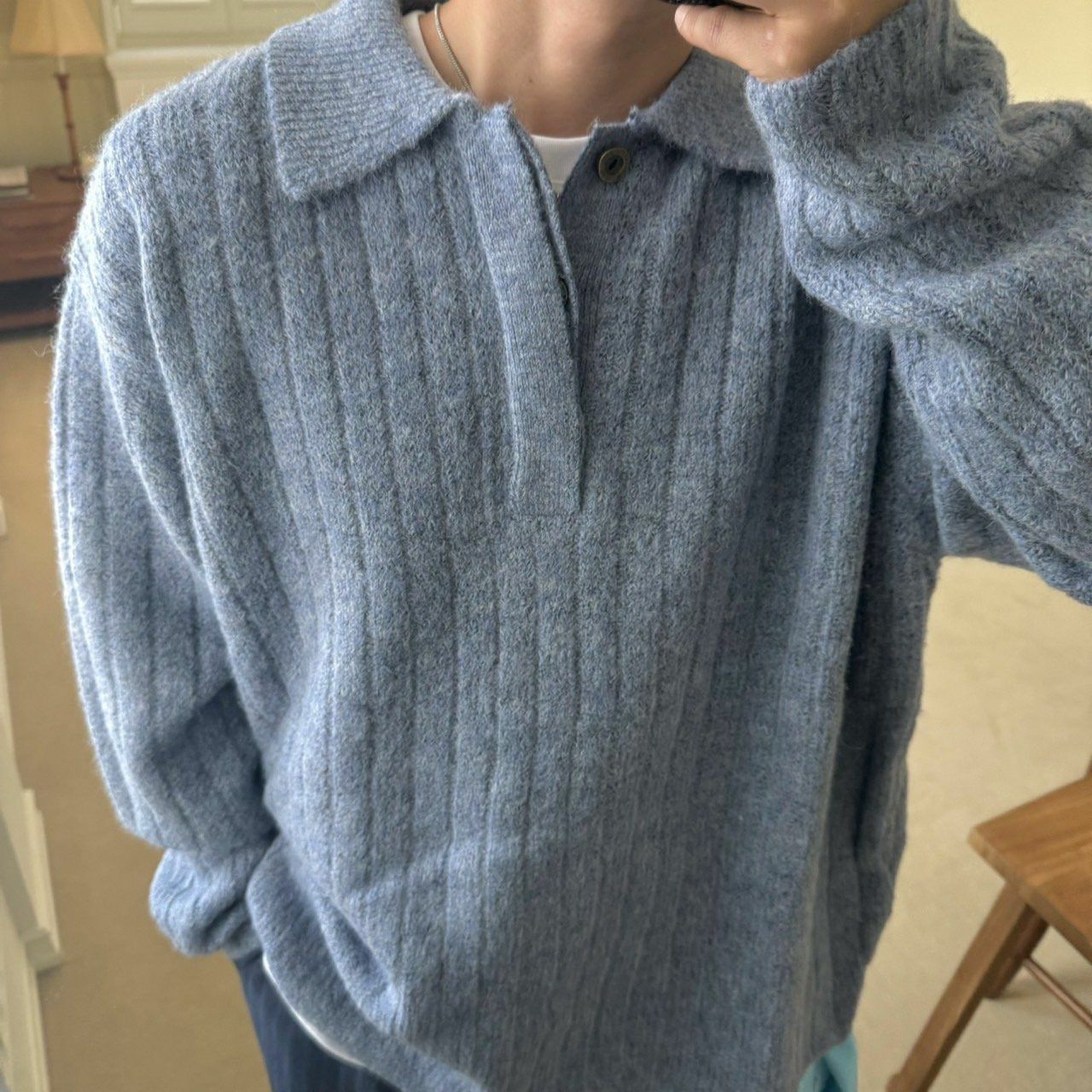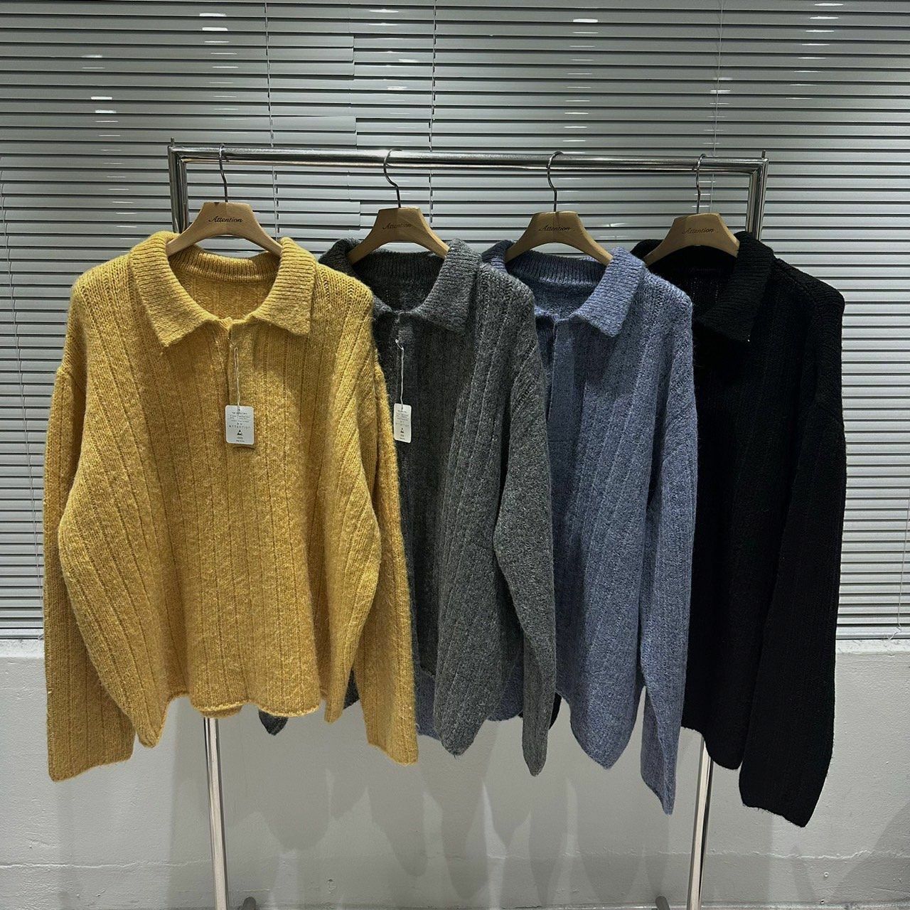 反領暗直紋針織衫 BY ATTENTION-303T
