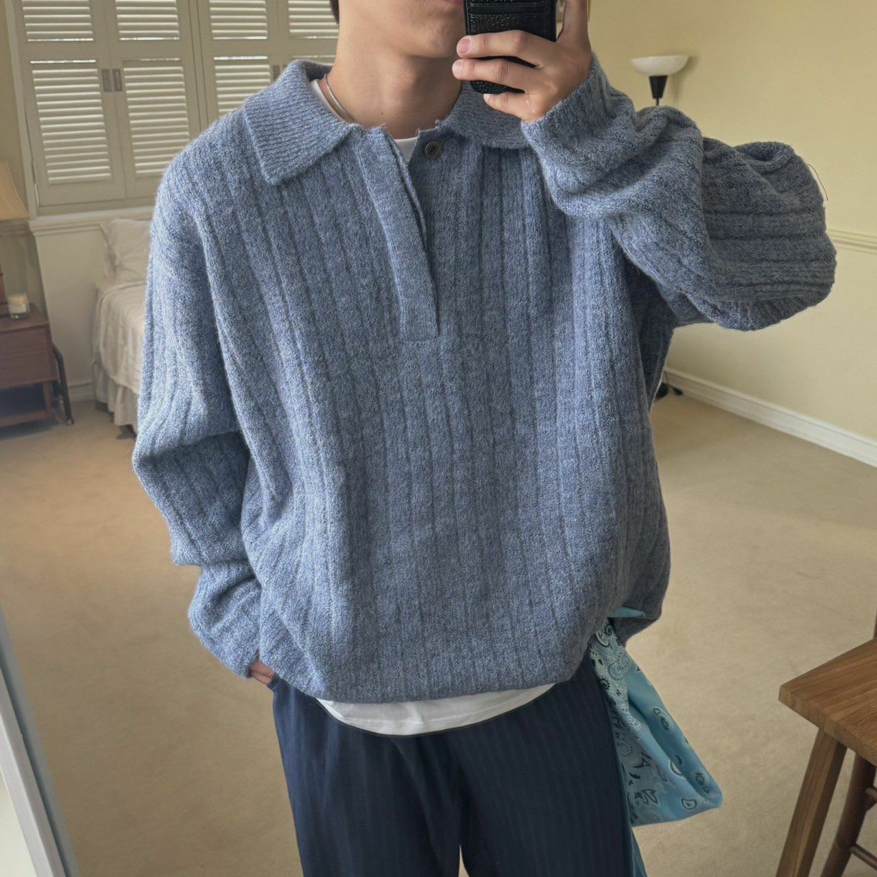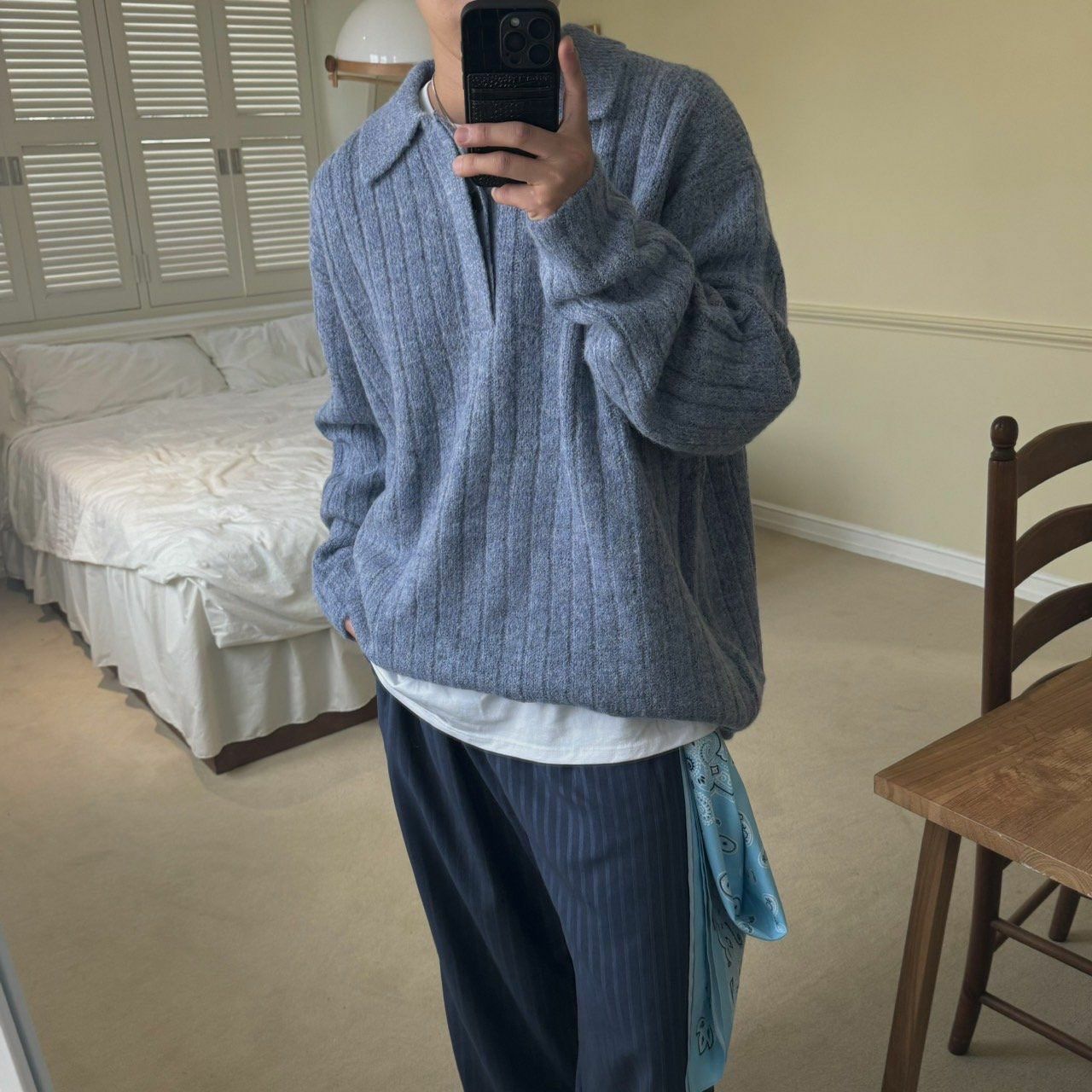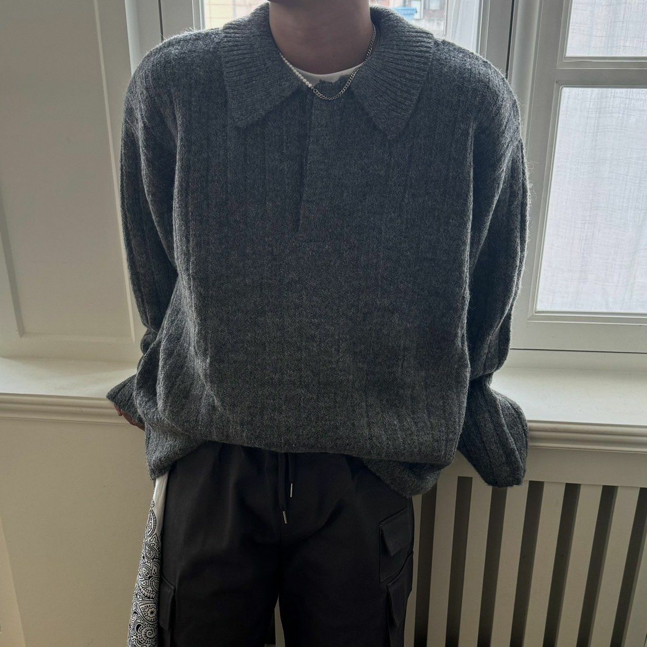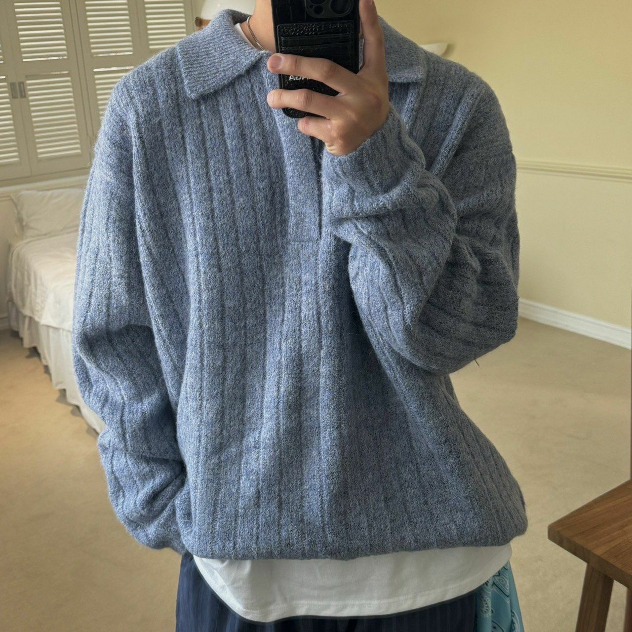 反領暗直紋針織衫 BY ATTENTION-303T