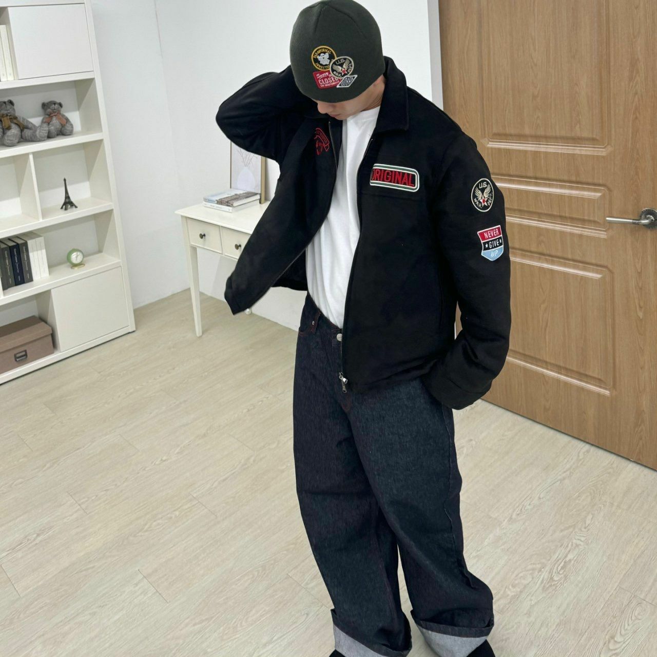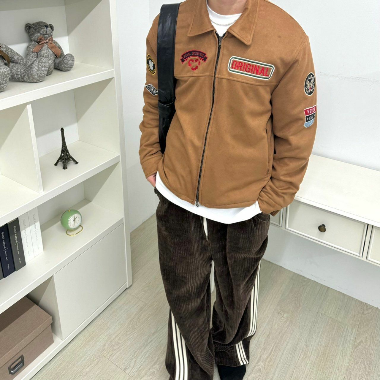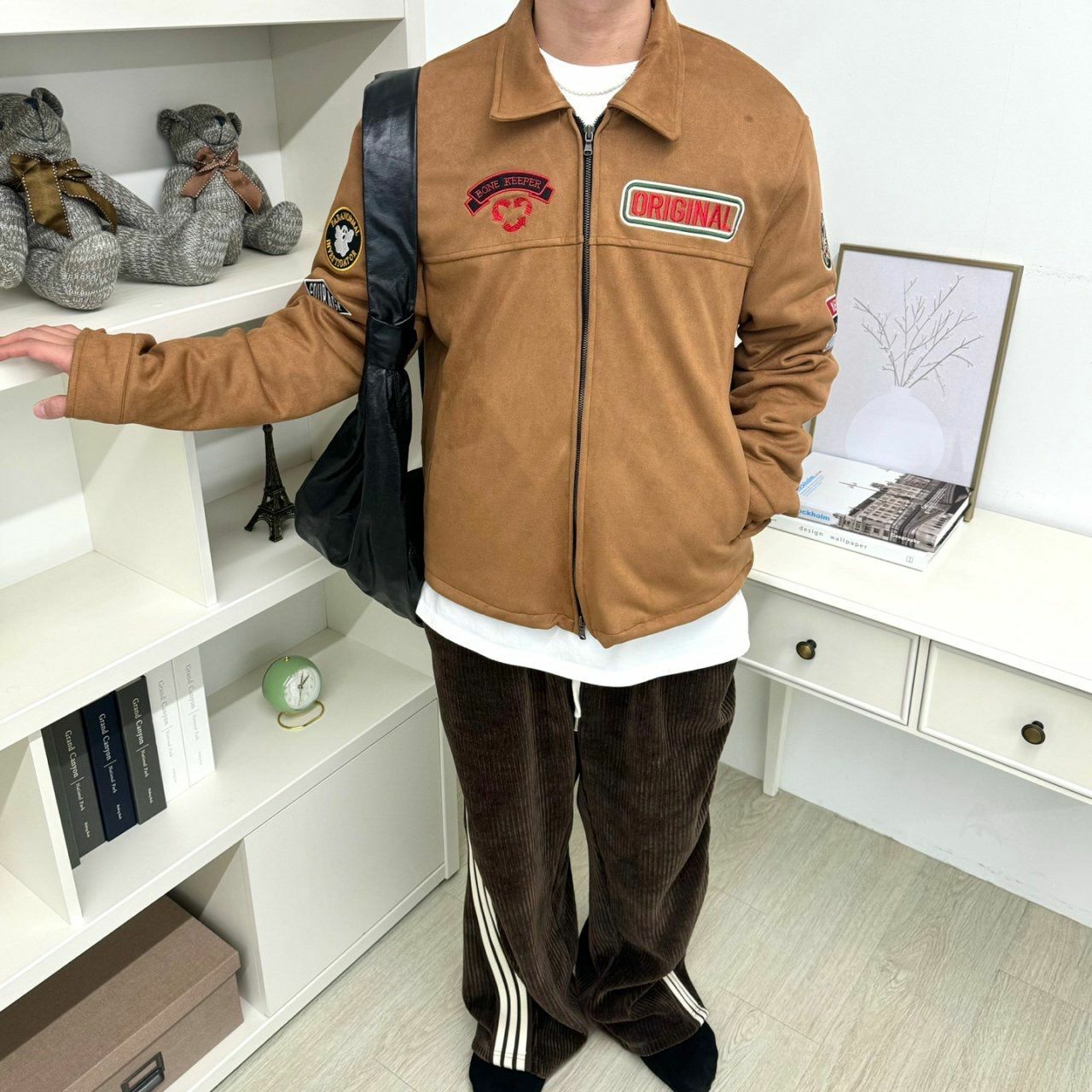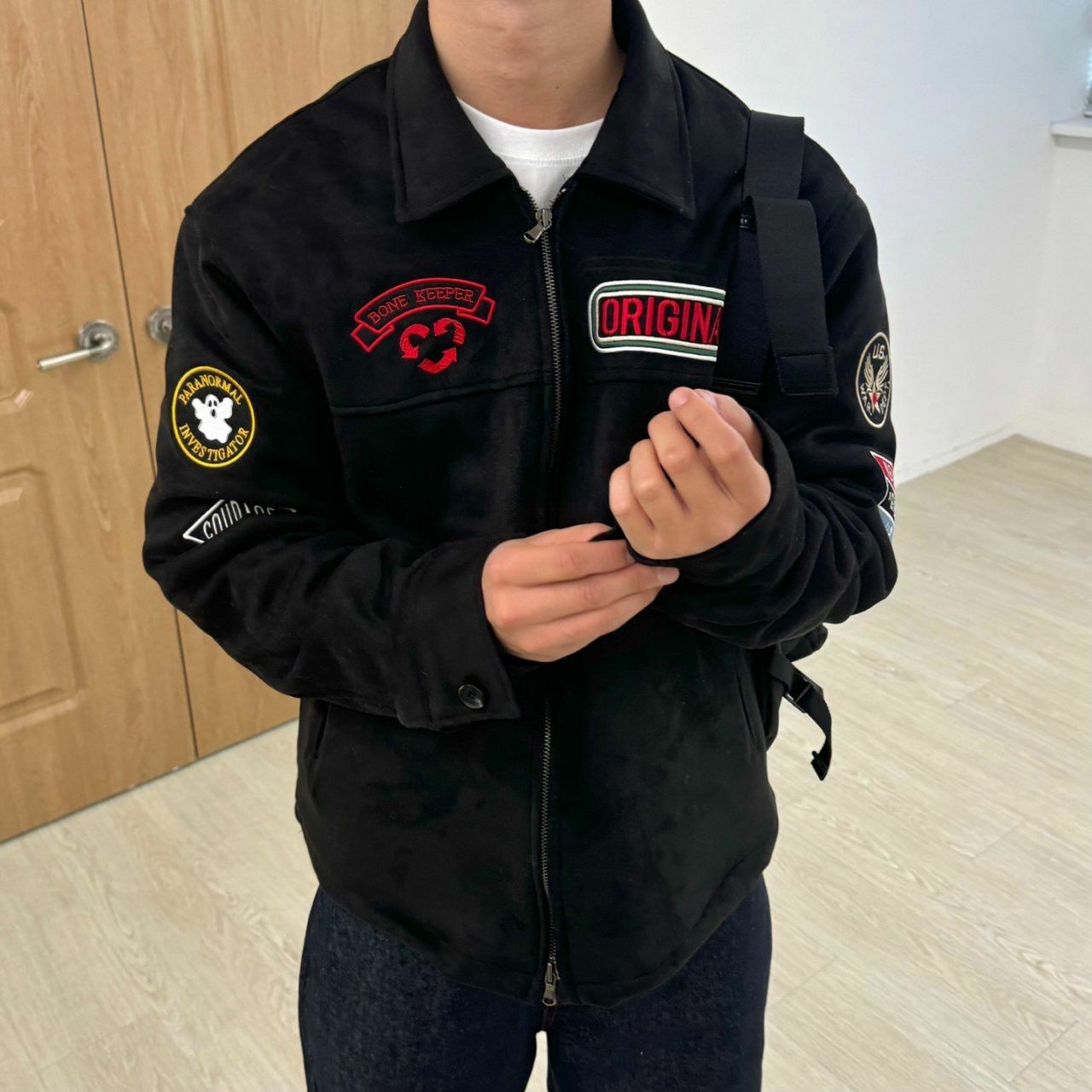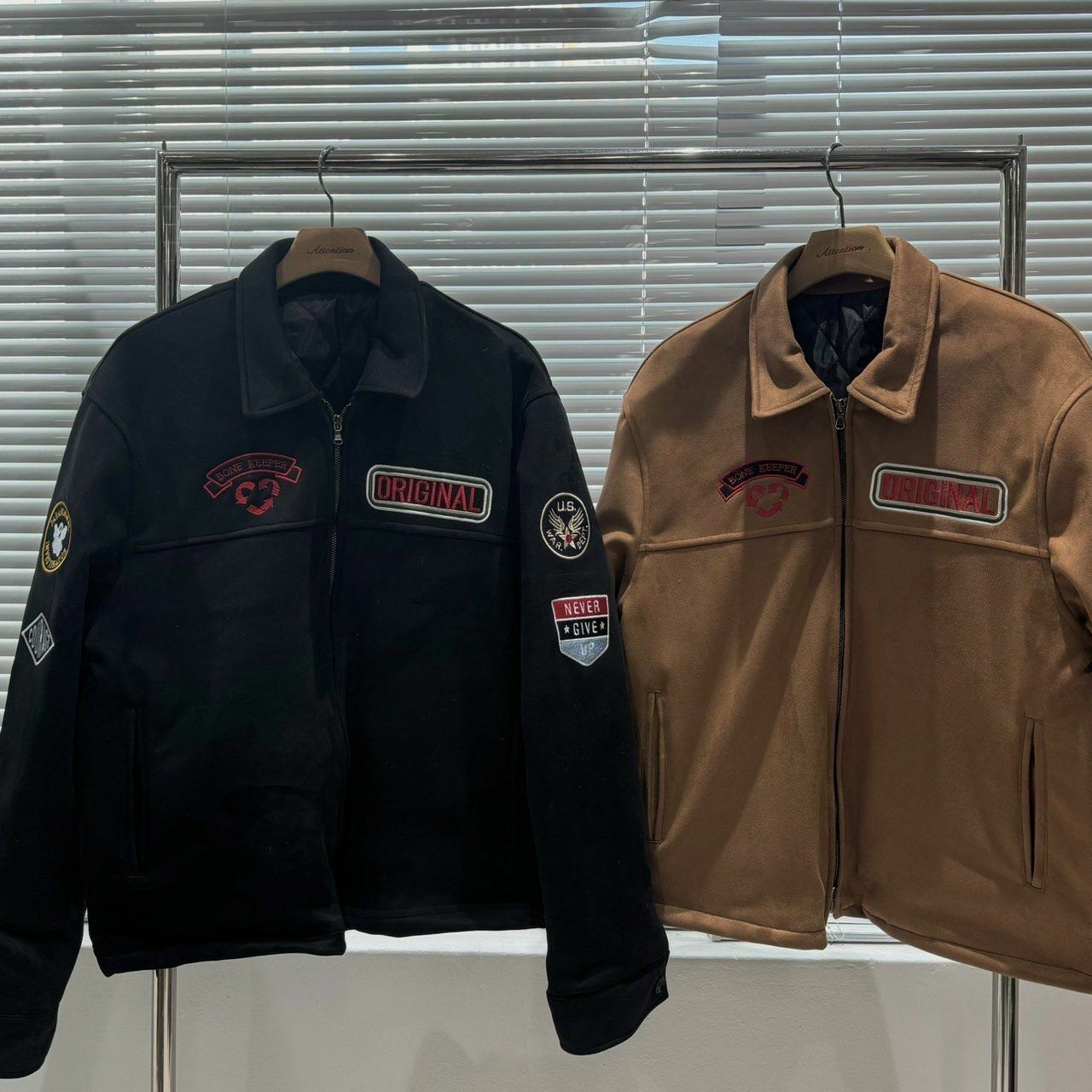 反領綉章拉鍊猄面褸 BY ATTENTION-330JK