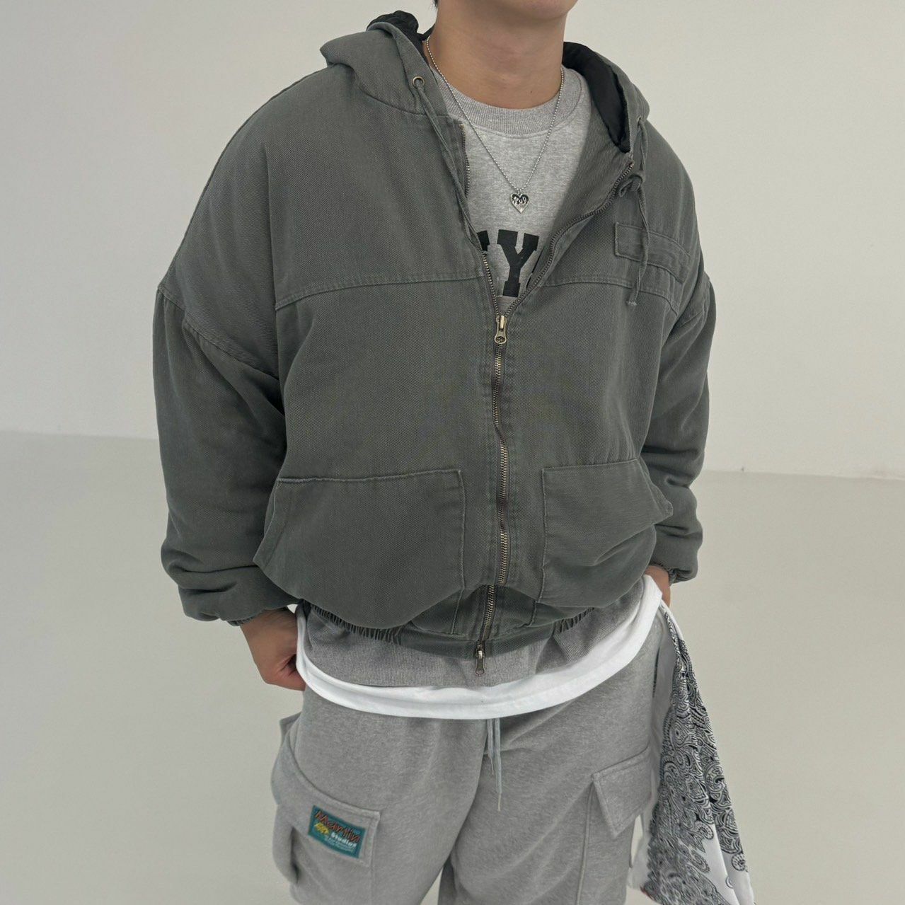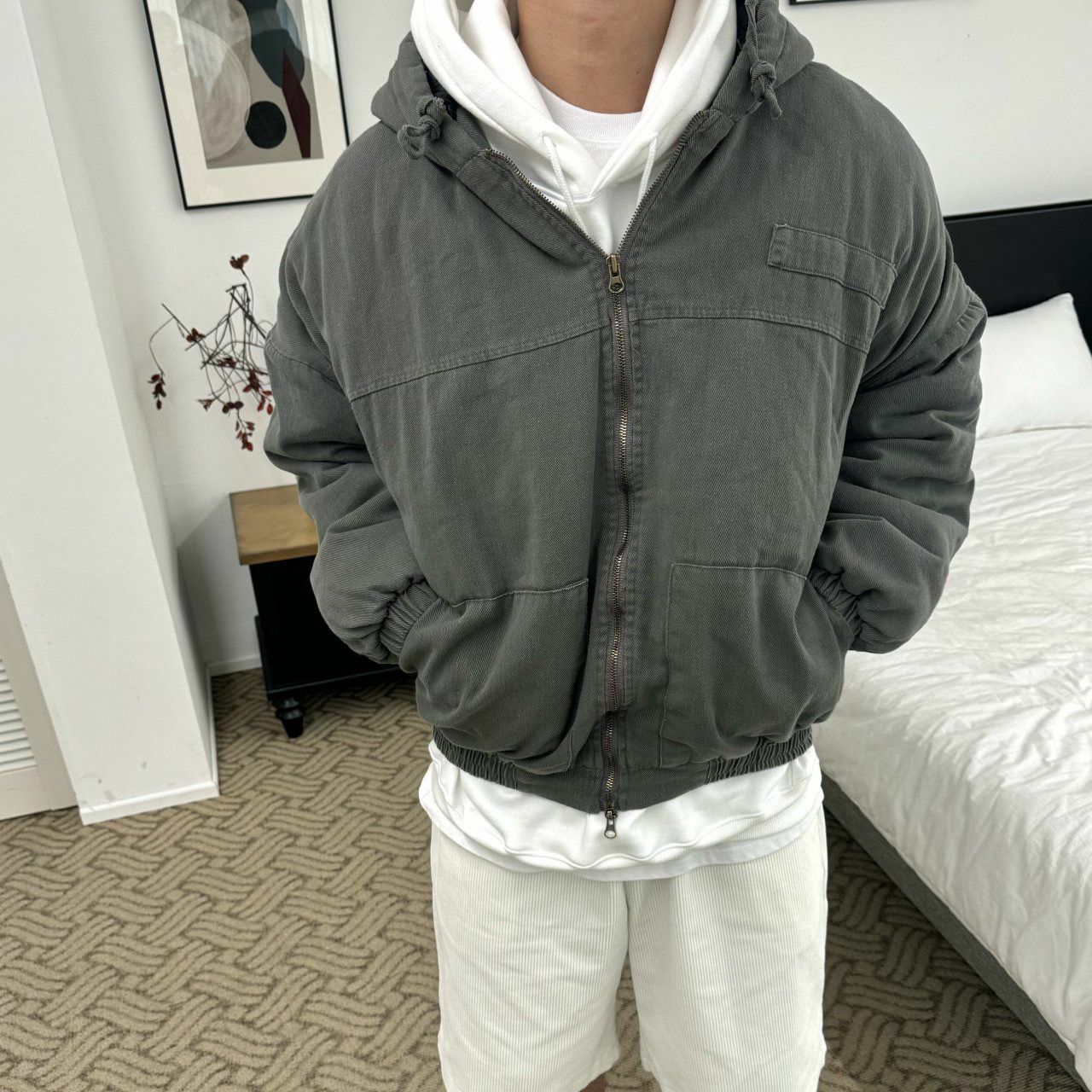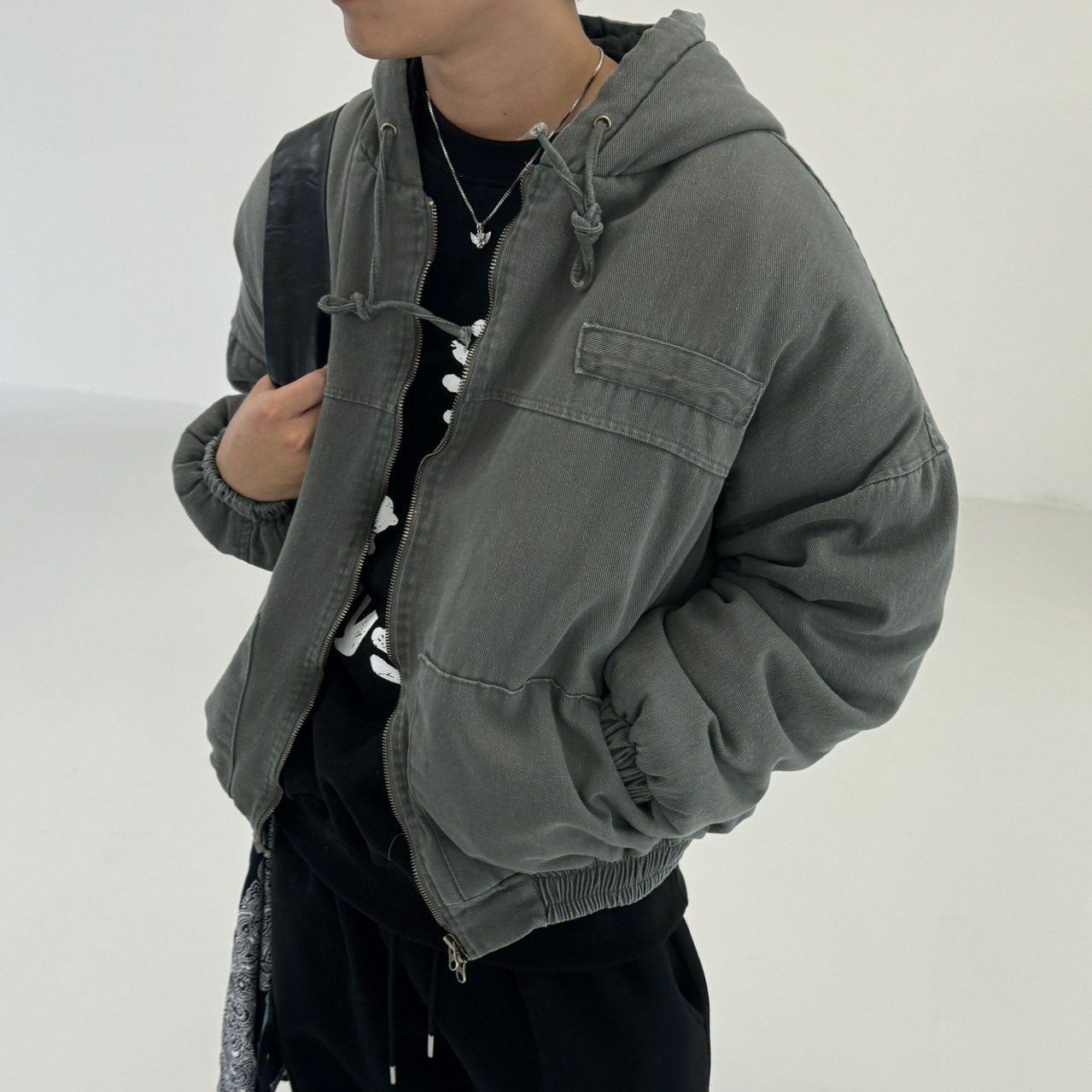 淨色連帽拉鍊外套(薄夾棉) BY ATTENTION-334JK