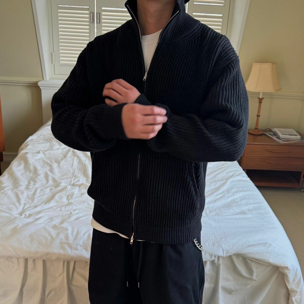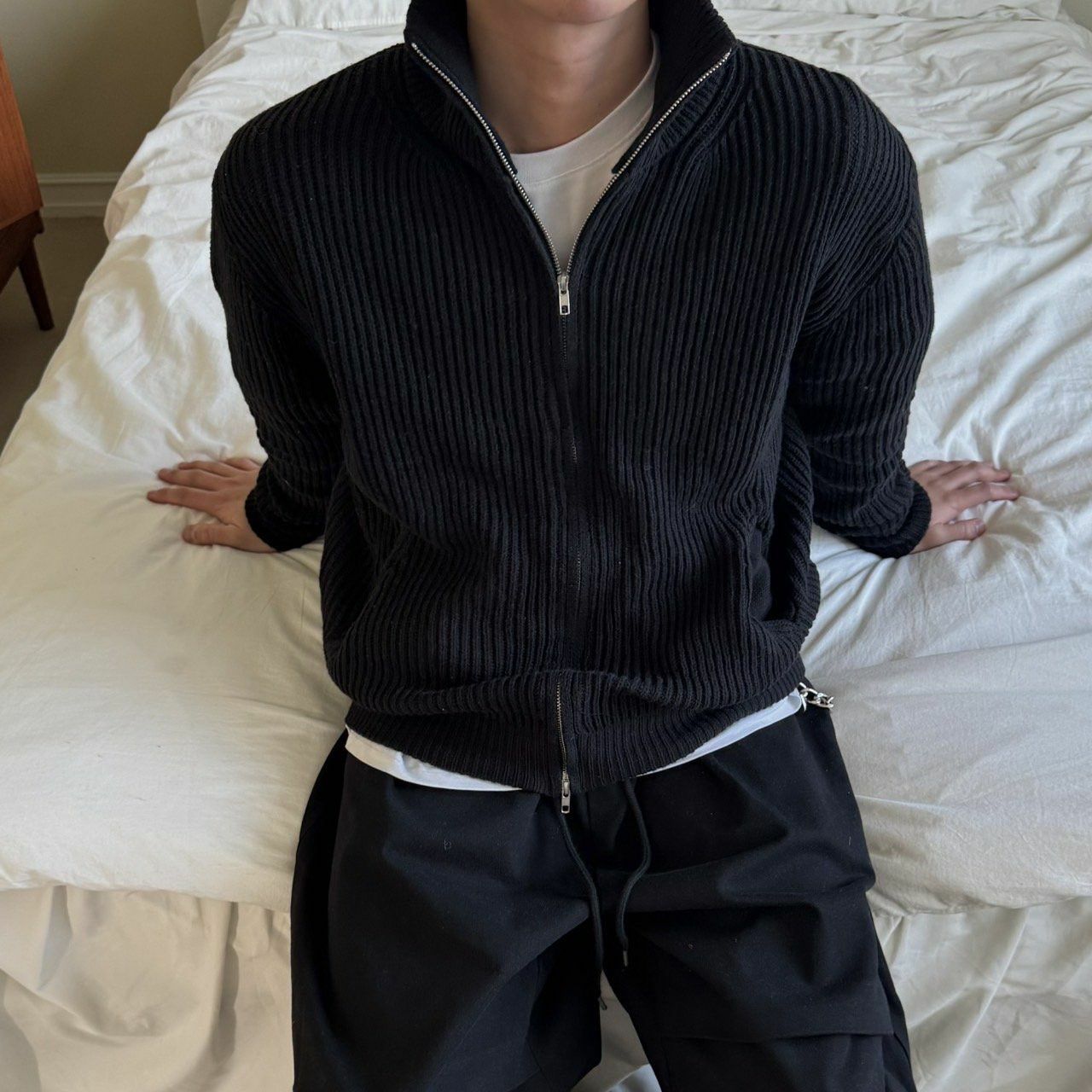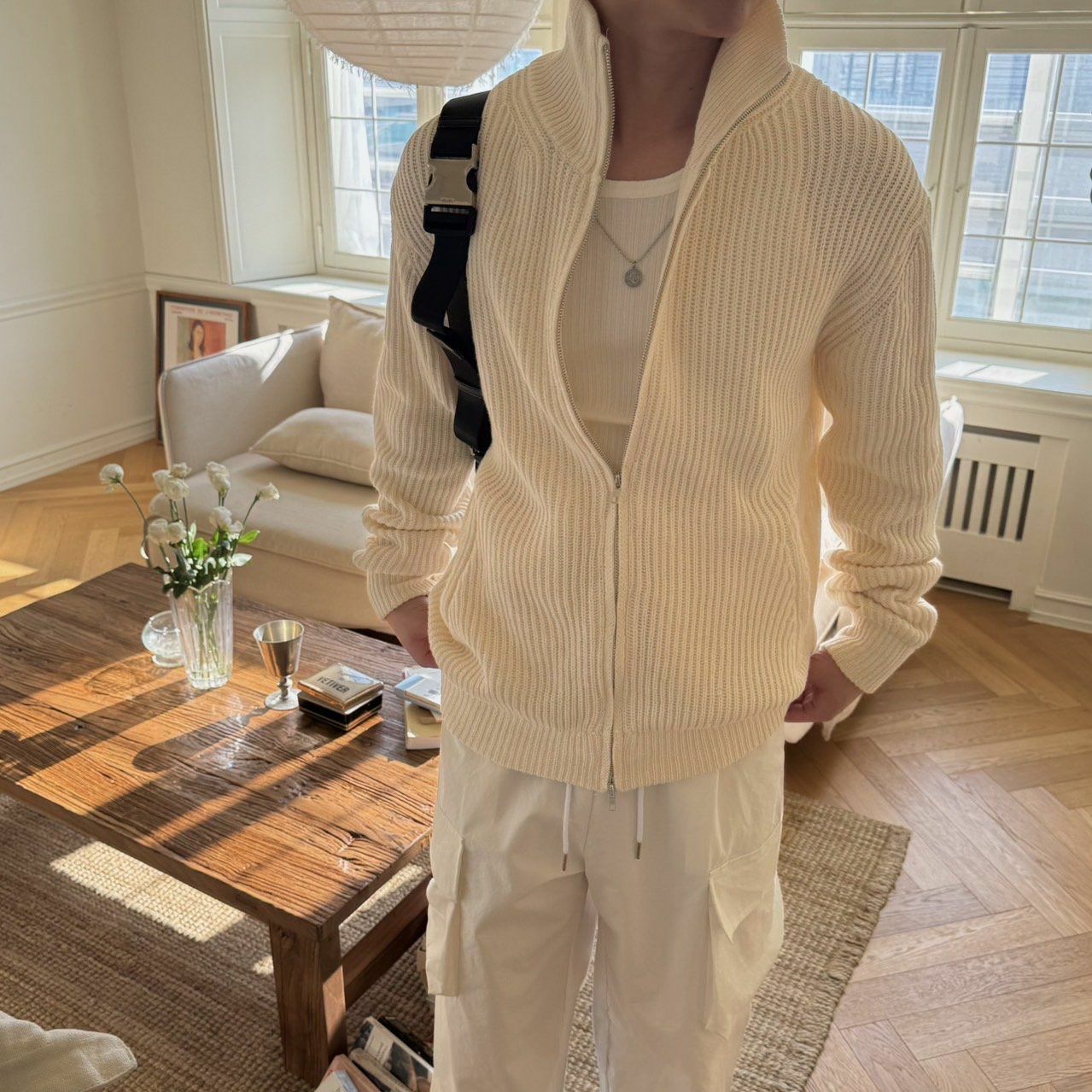 企領拉鍊針織外套 BY ATTENTION-343JK