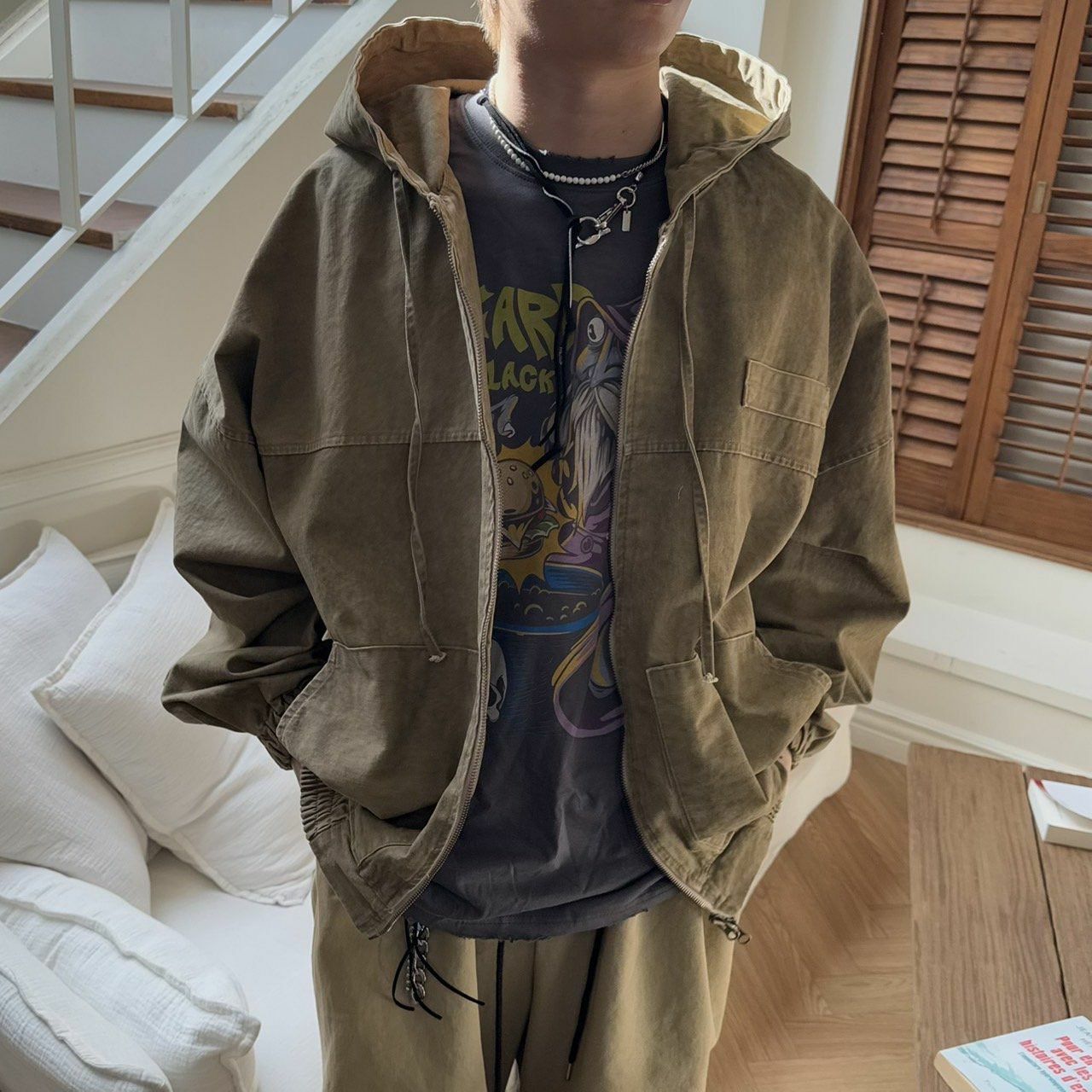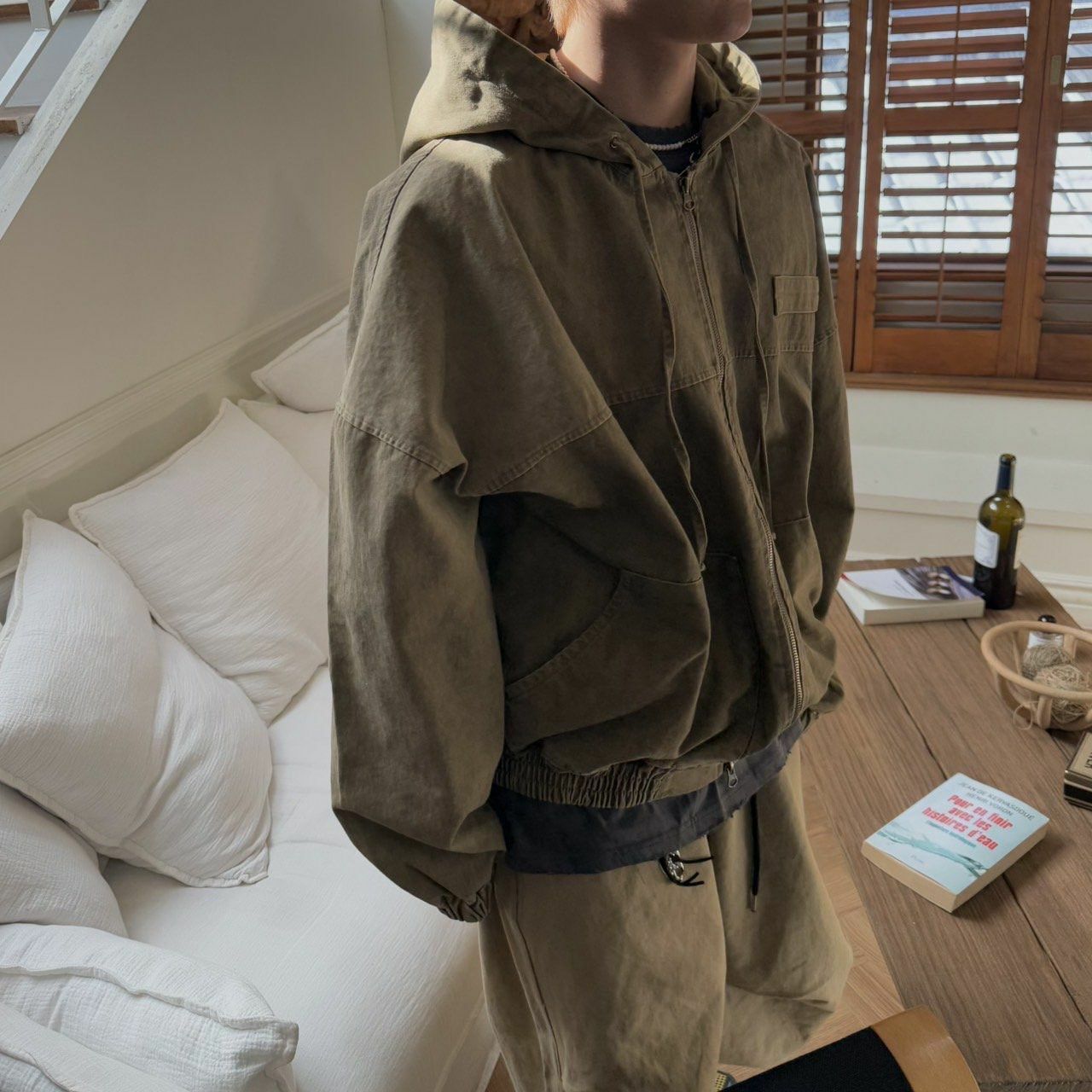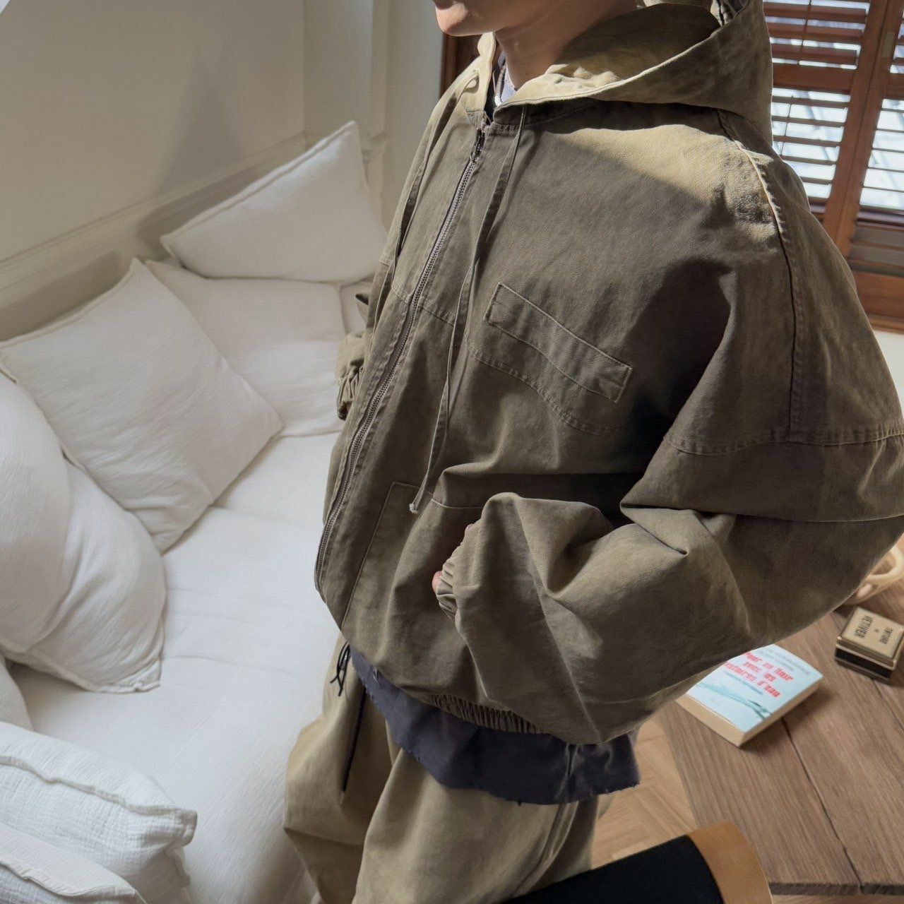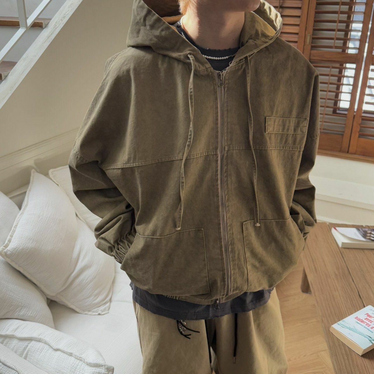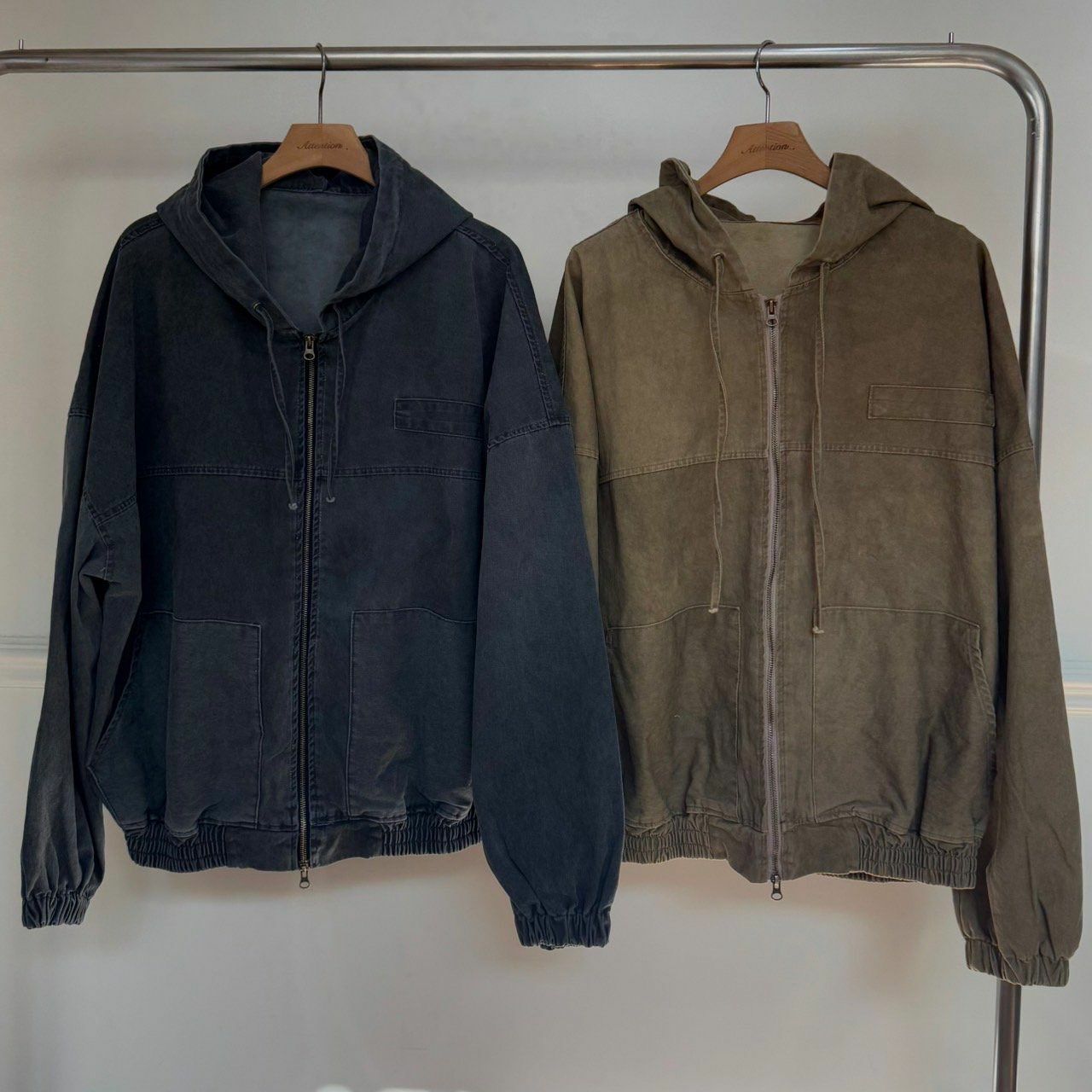 洗水淨色連帽拉鍊外套 BY ATTENTION-352JK