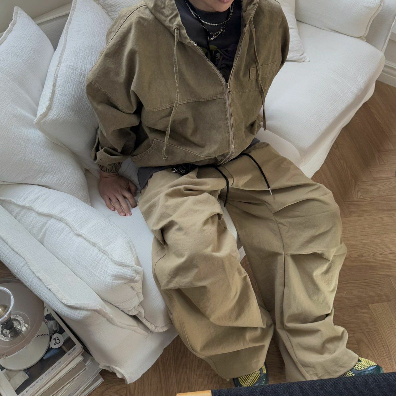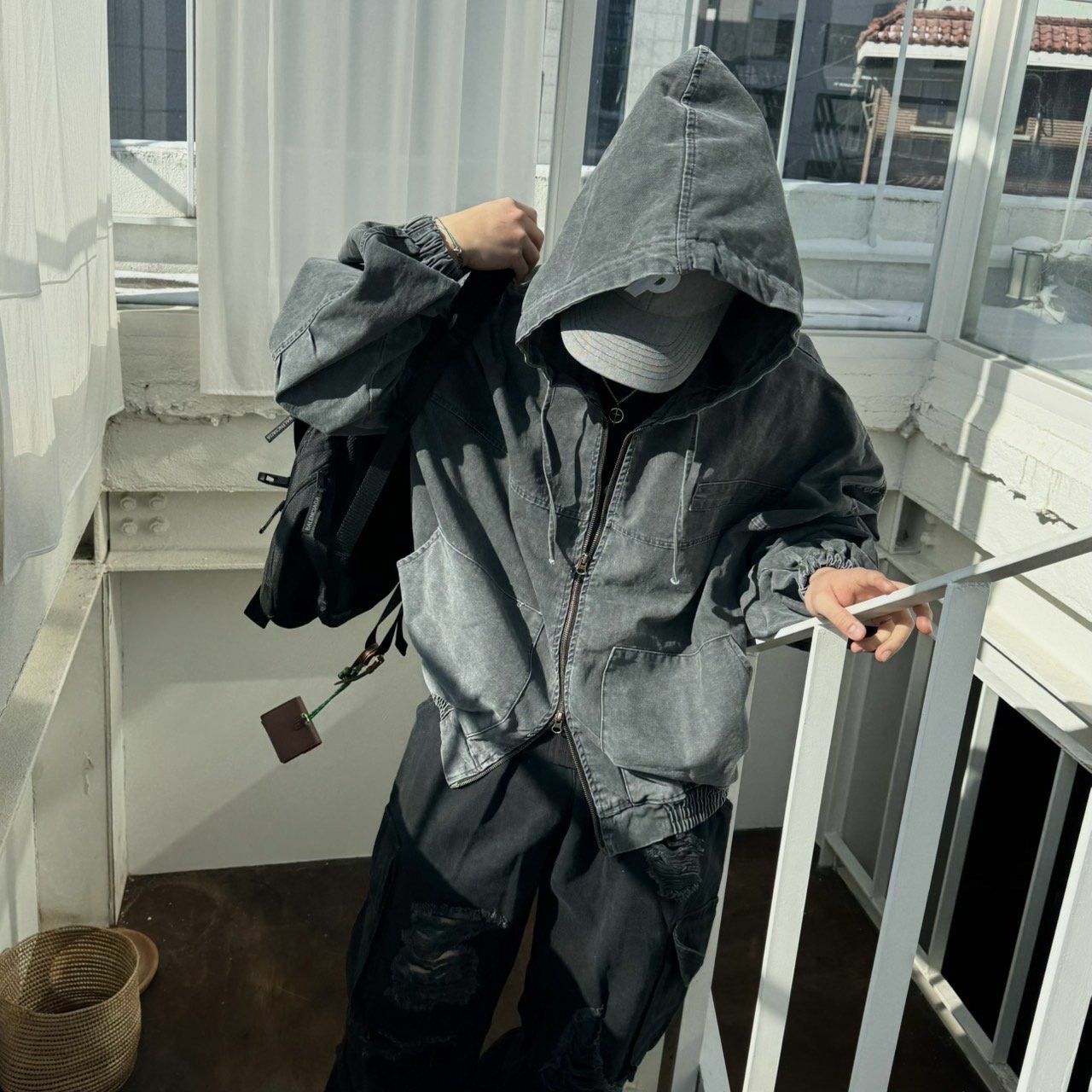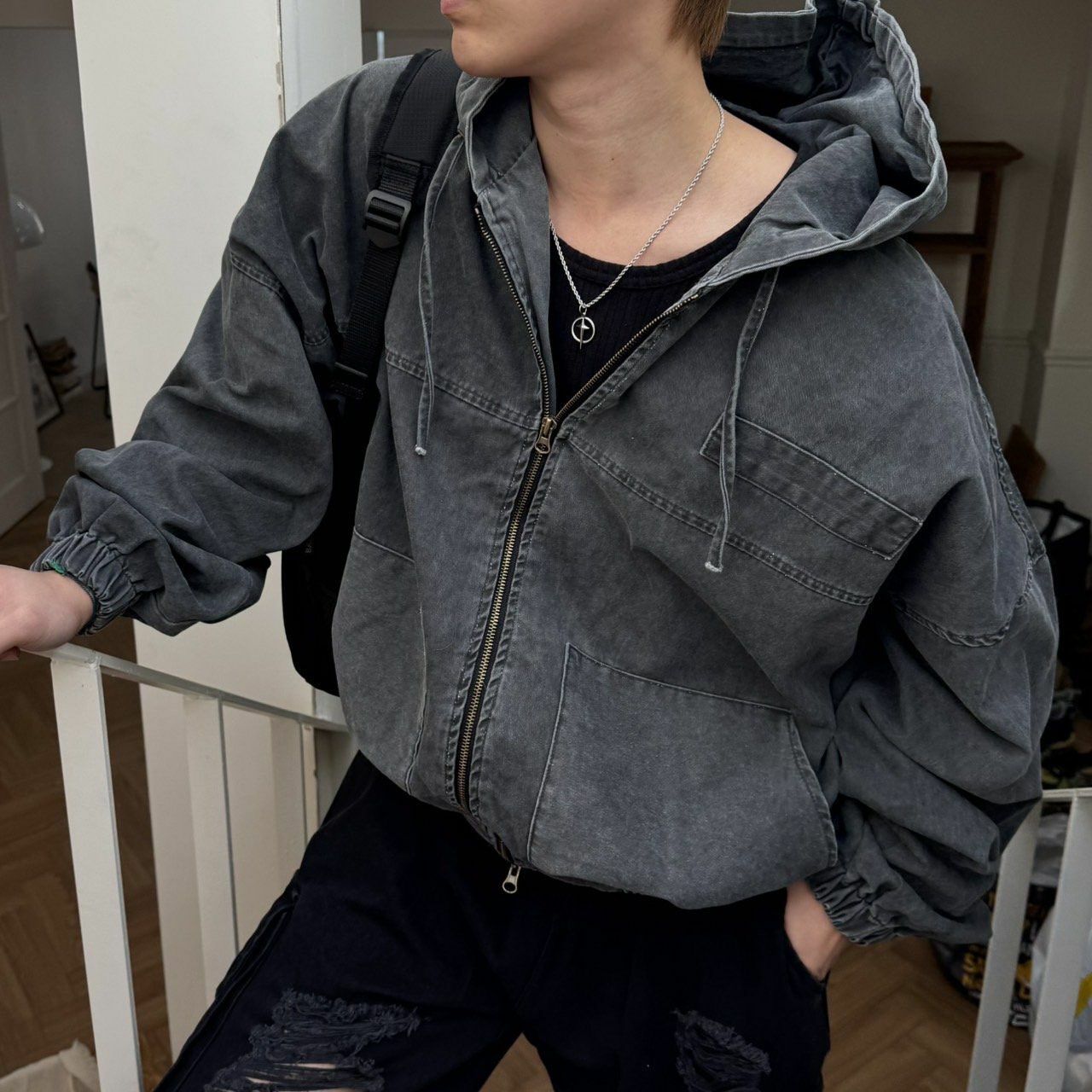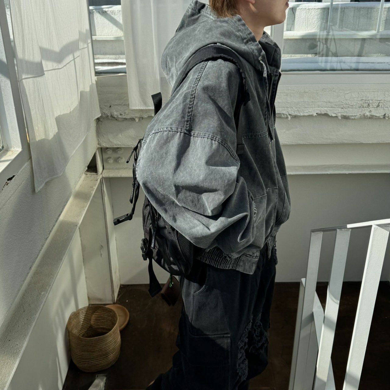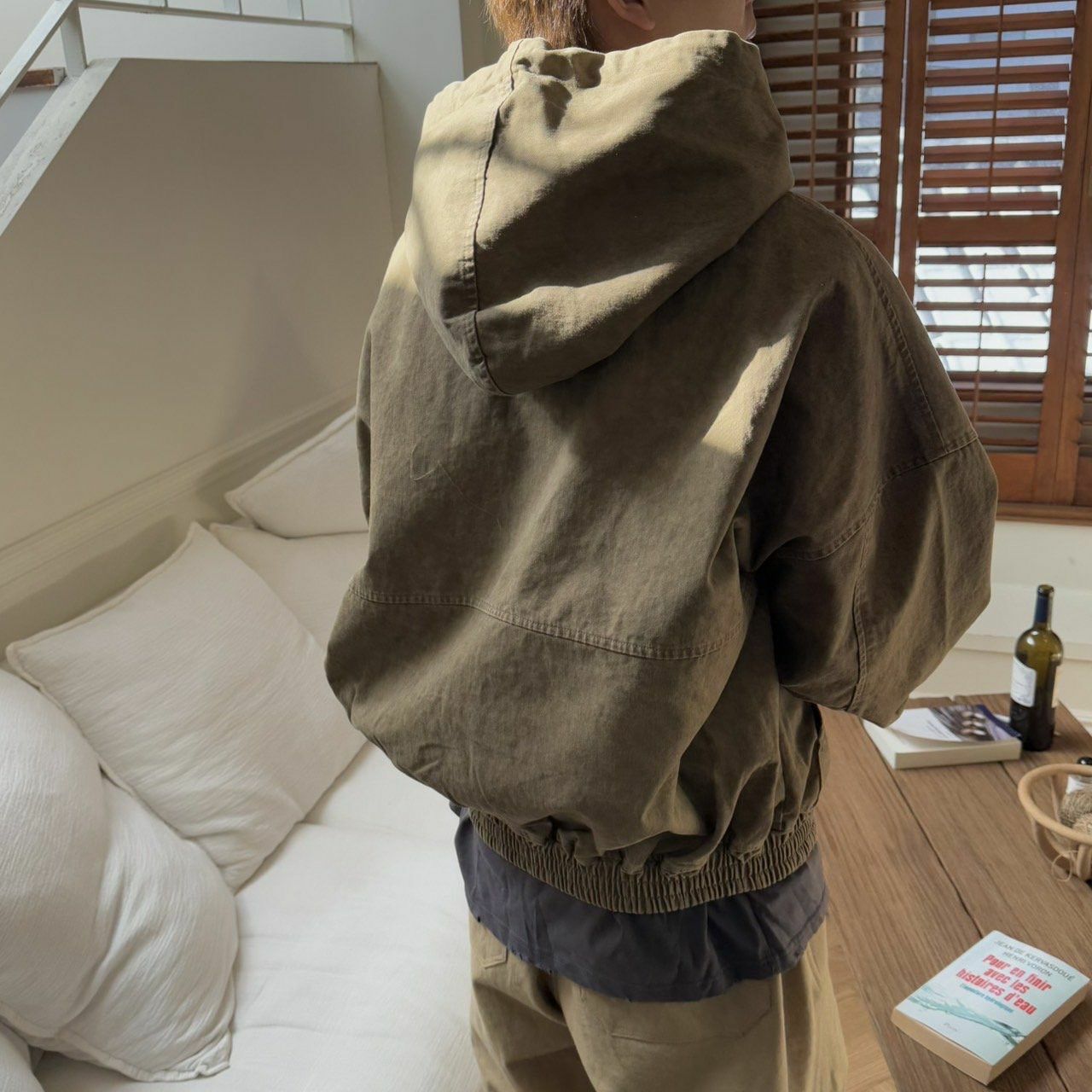 洗水淨色連帽拉鍊外套 BY ATTENTION-352JK