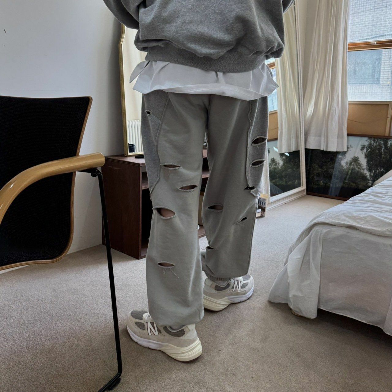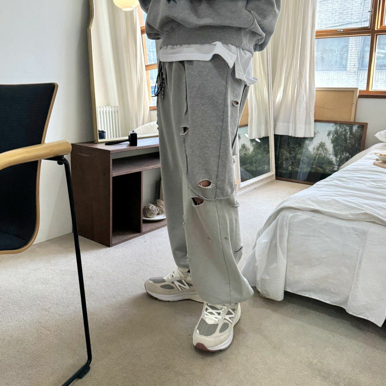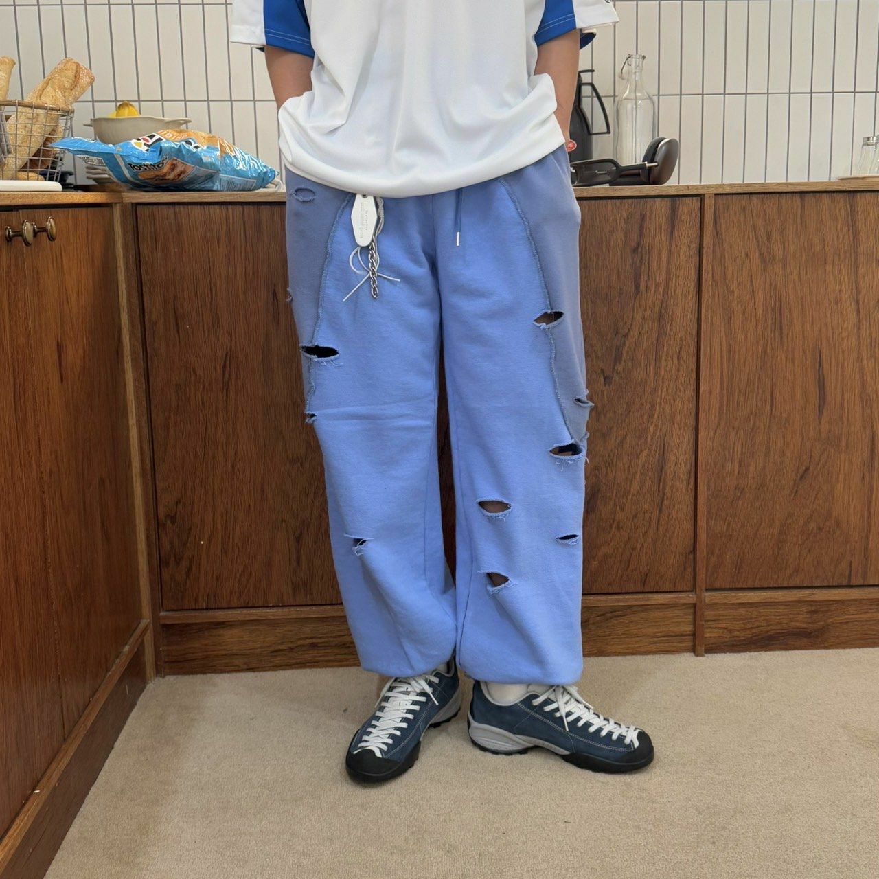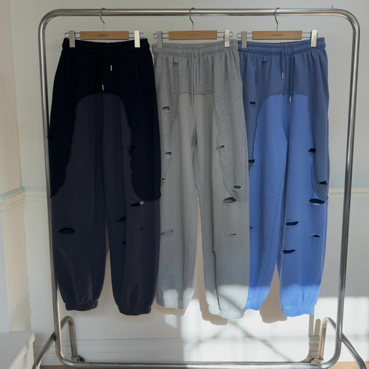 拼布破洞束腳鬆身運動褲 BY ATTENTION-355P