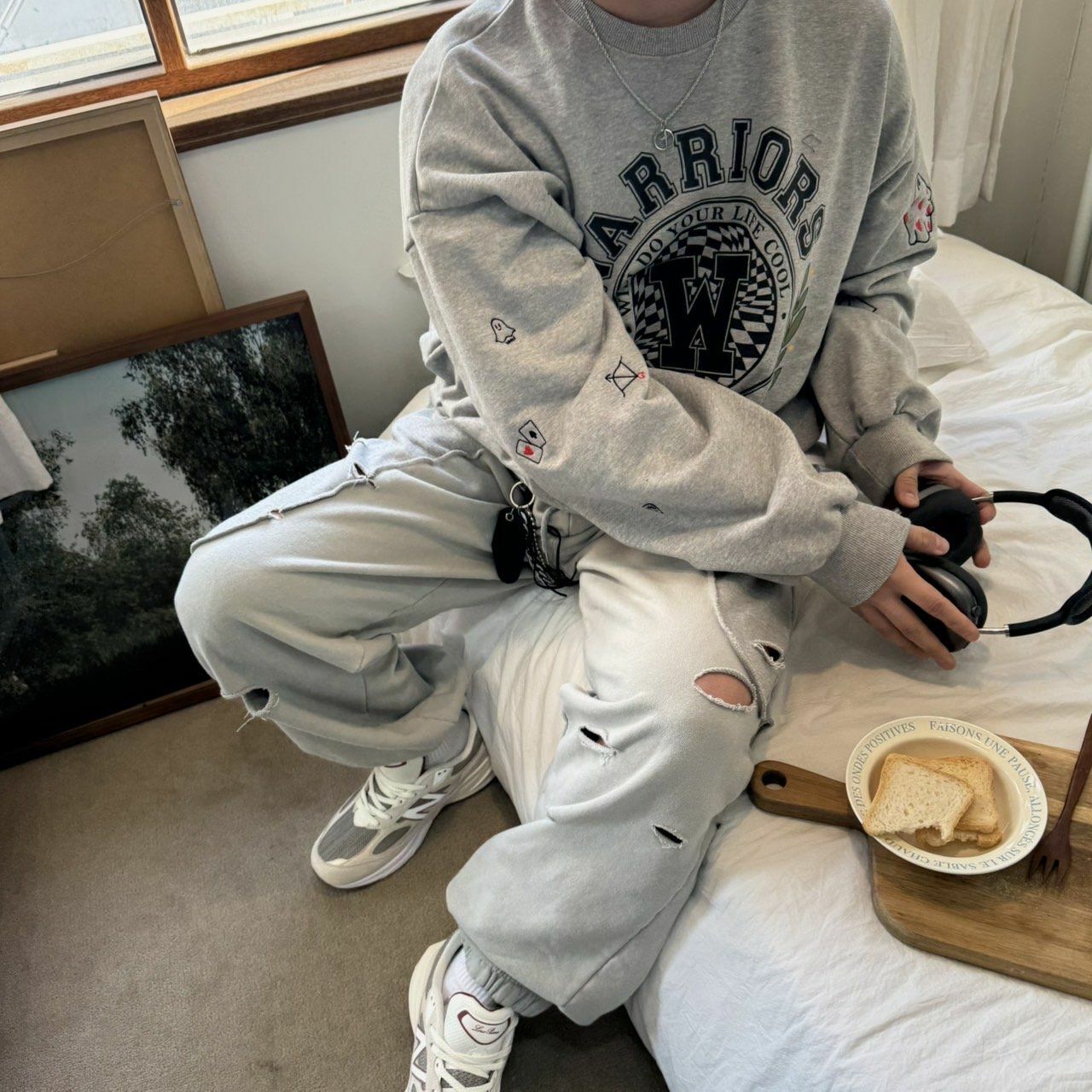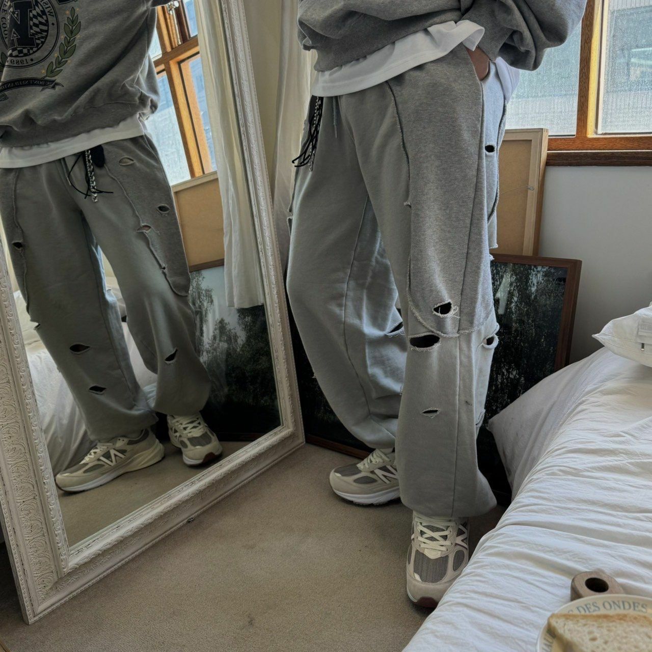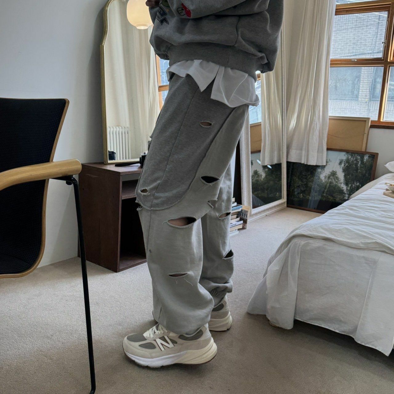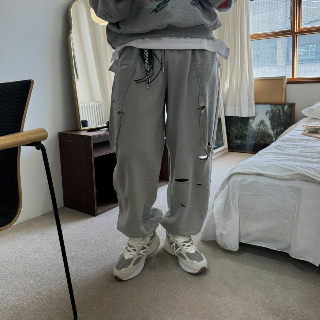 拼布破洞束腳鬆身運動褲 BY ATTENTION-355P