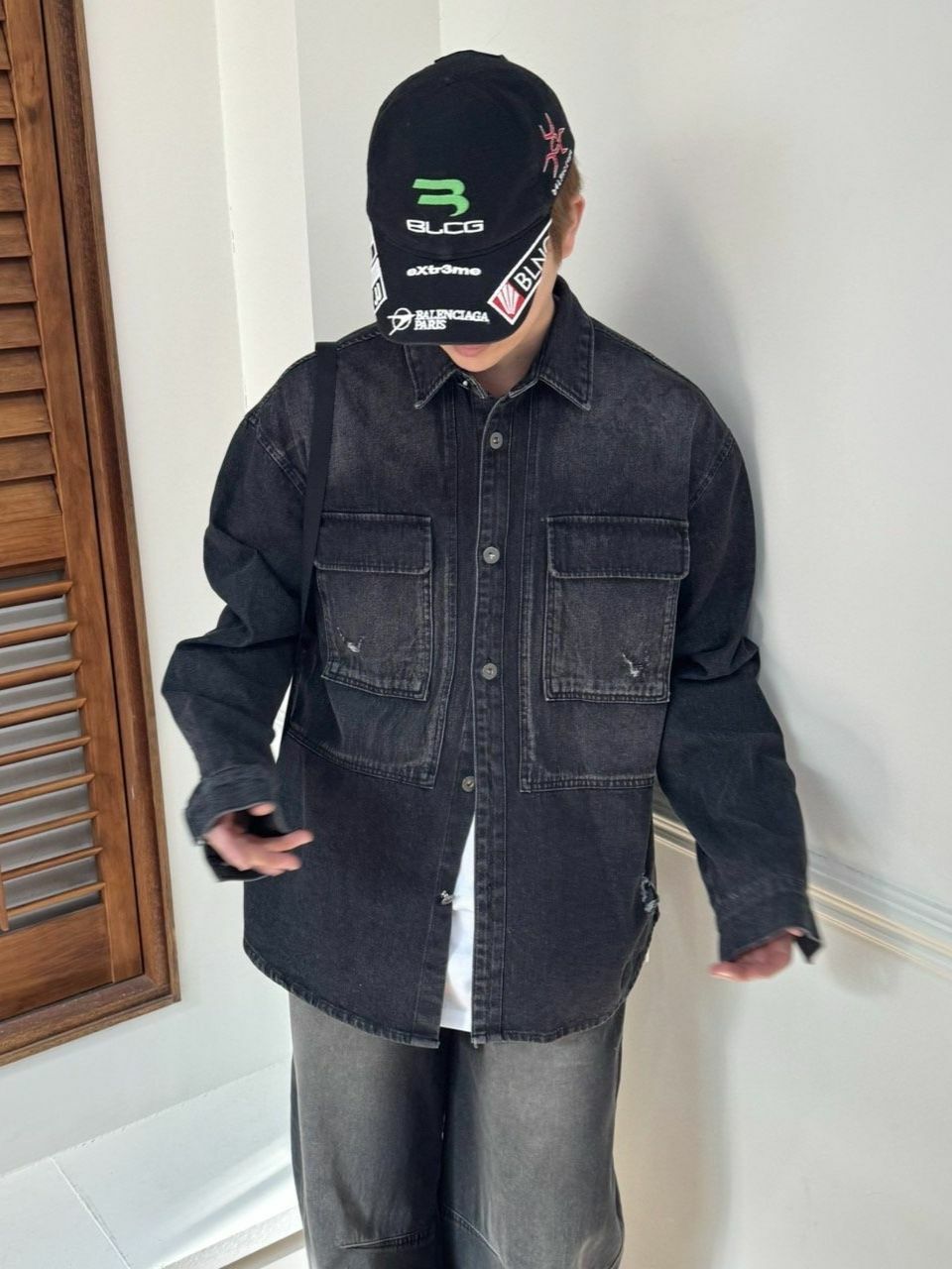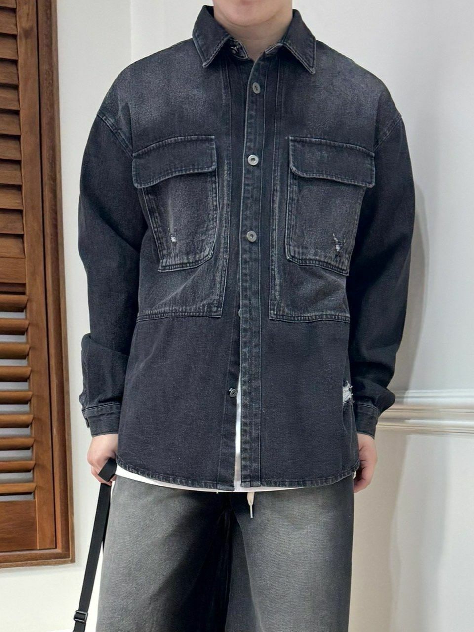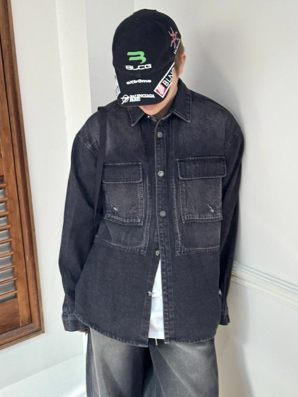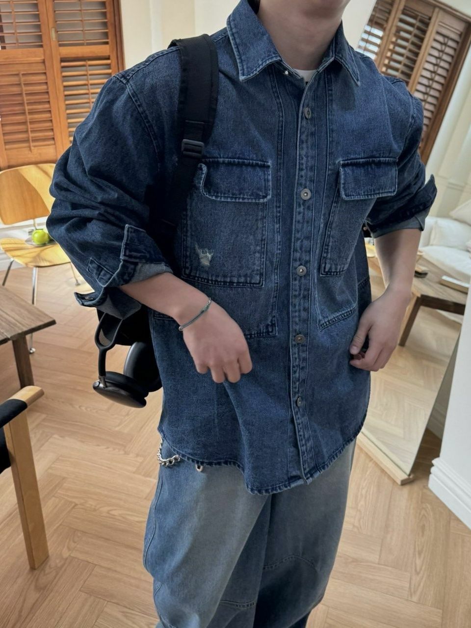 洗水牛仔長袖恤衫 BY ATTENTION-361JK