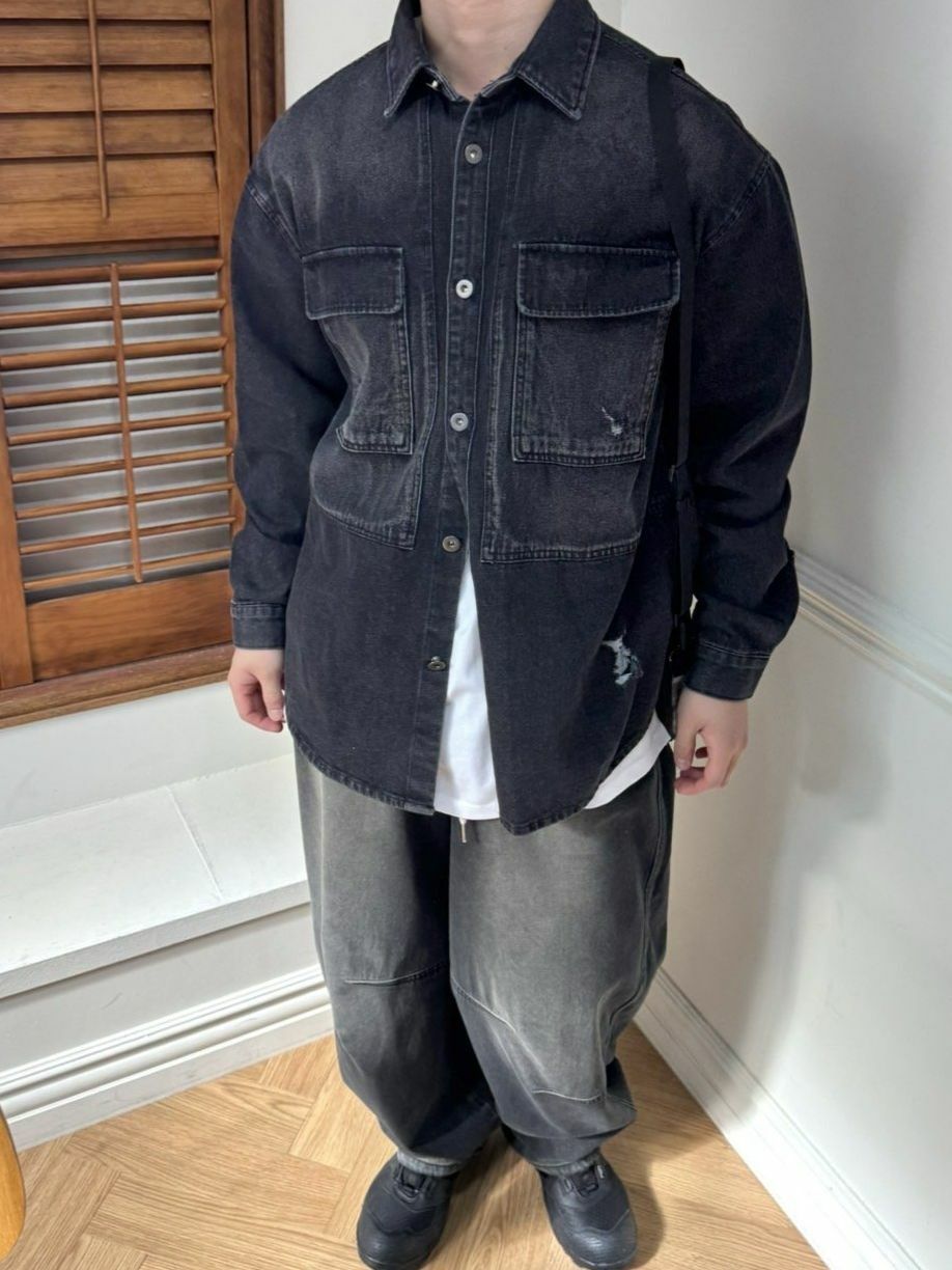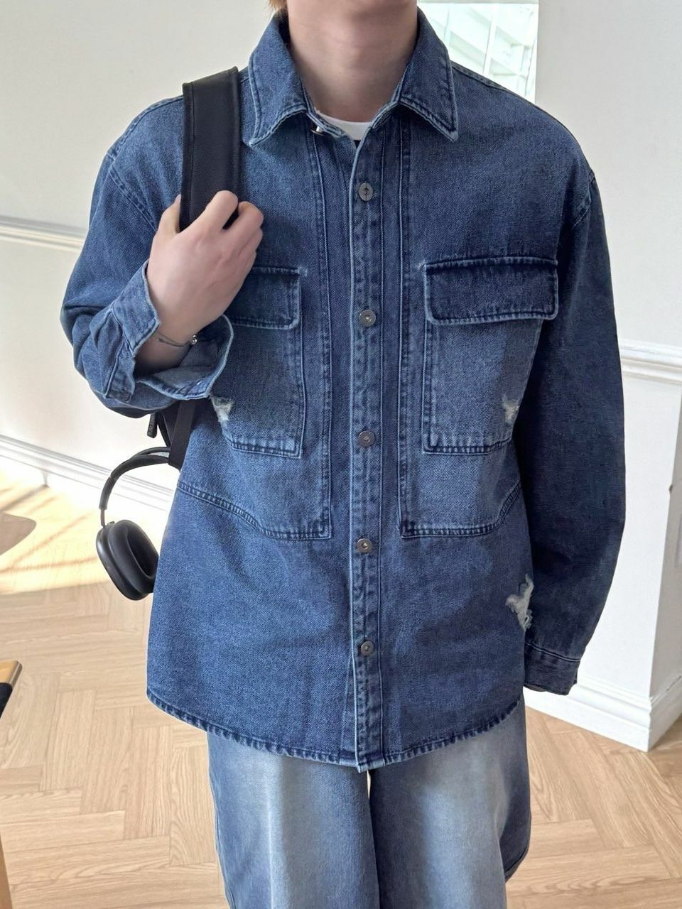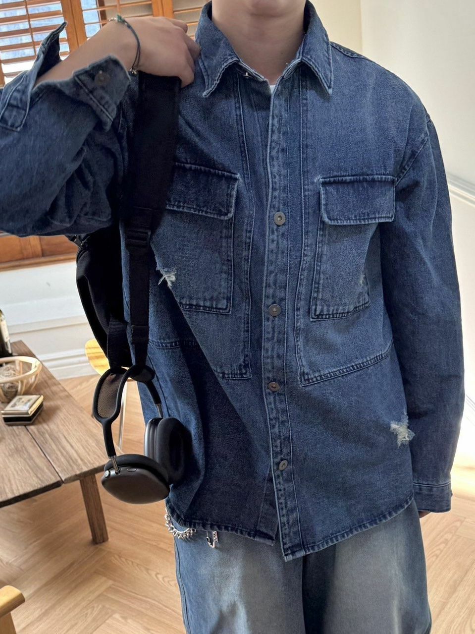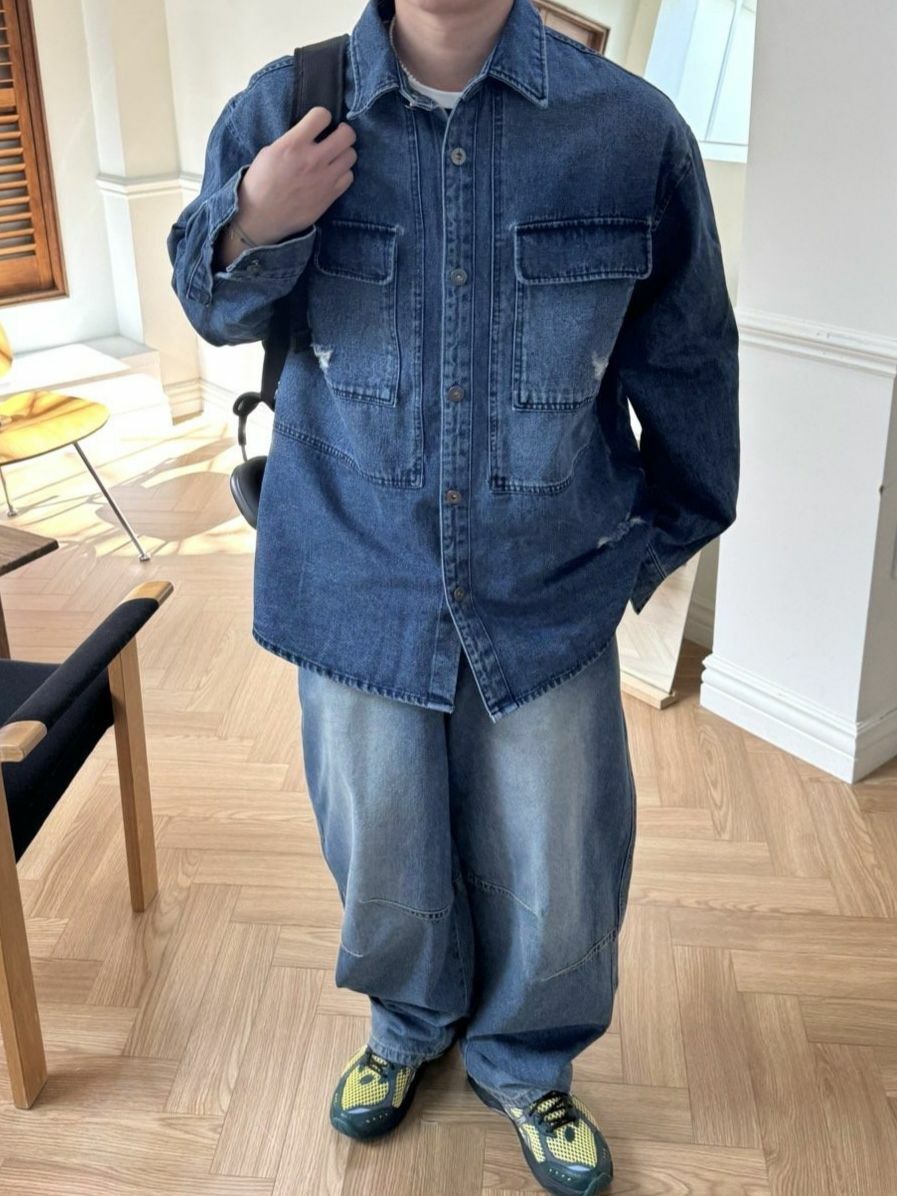 洗水牛仔長袖恤衫 BY ATTENTION-361JK