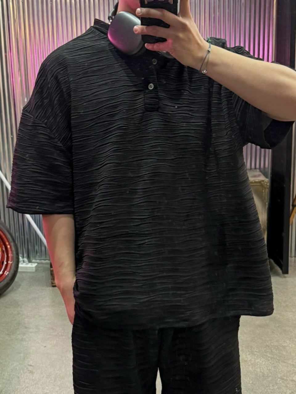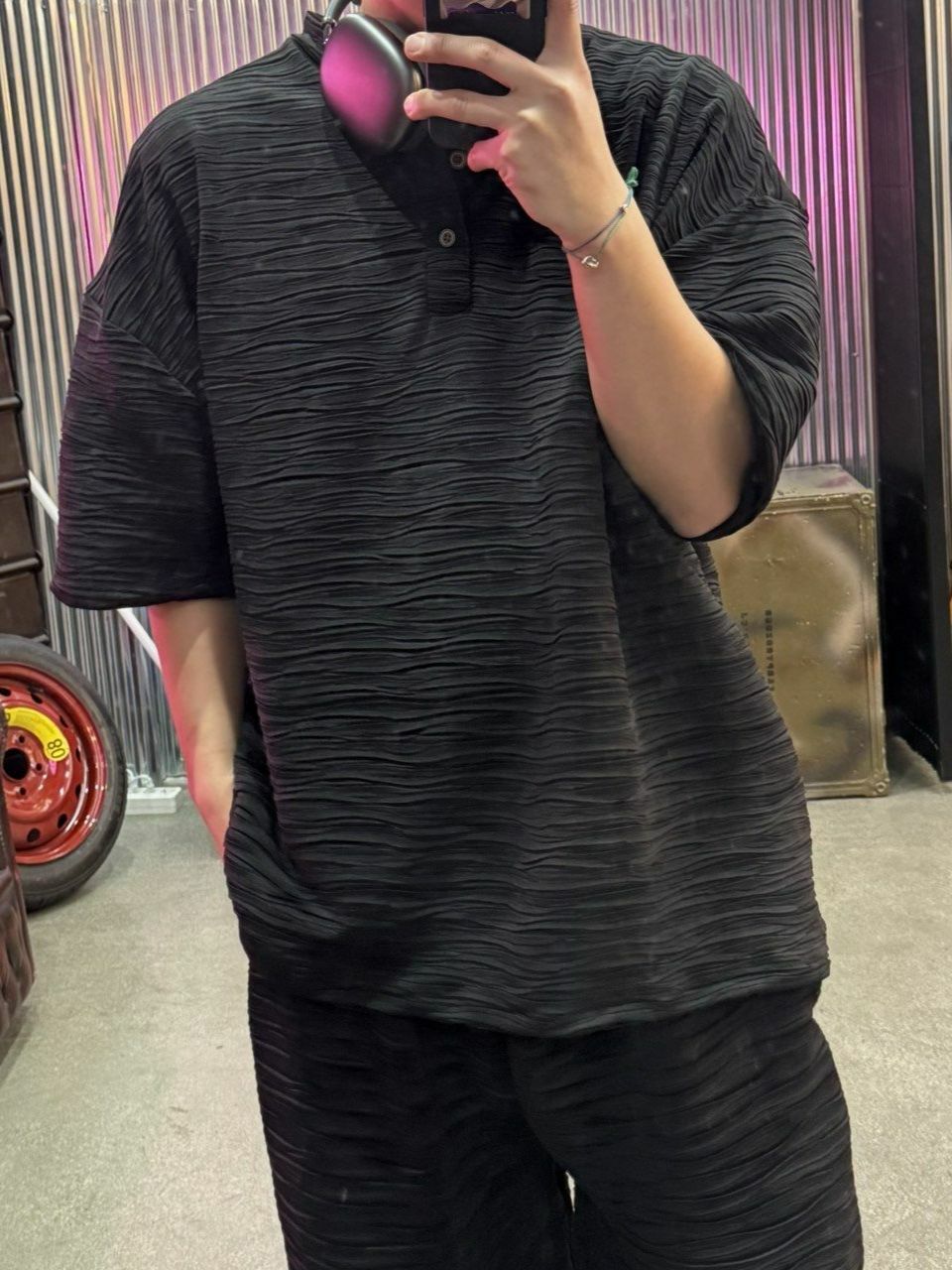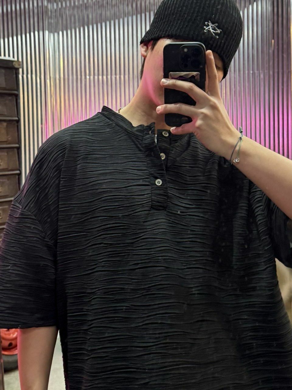 暗紋半開胸短袖Tee BY ATTENTION-375T