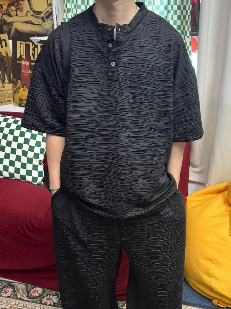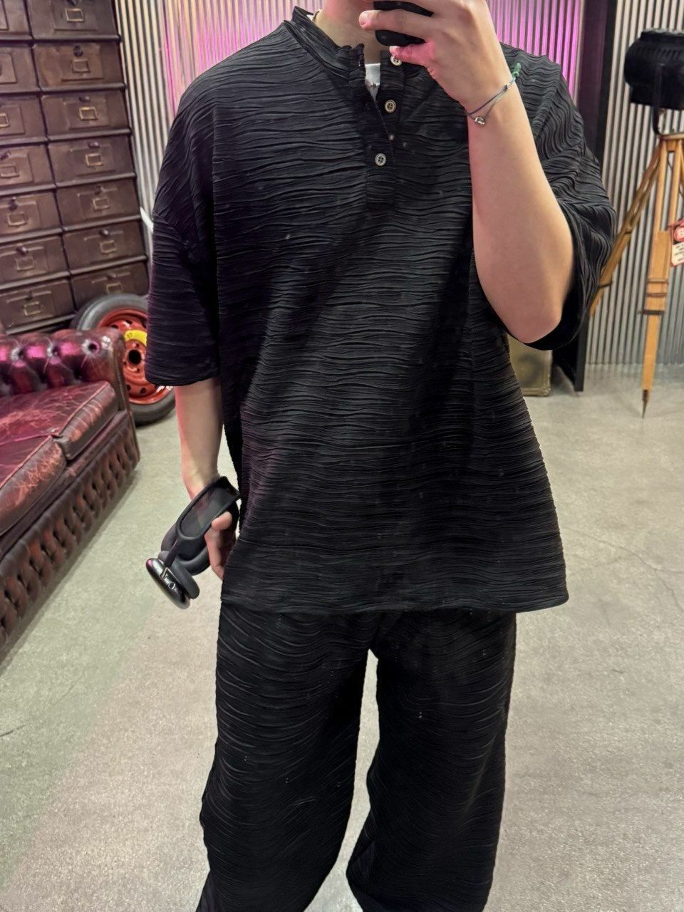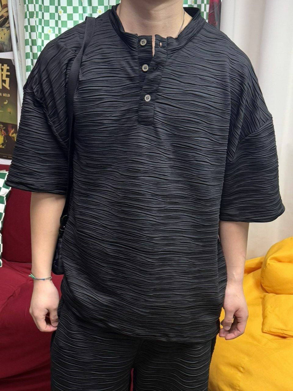 暗紋半開胸短袖Tee BY ATTENTION-375T
