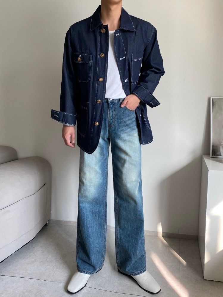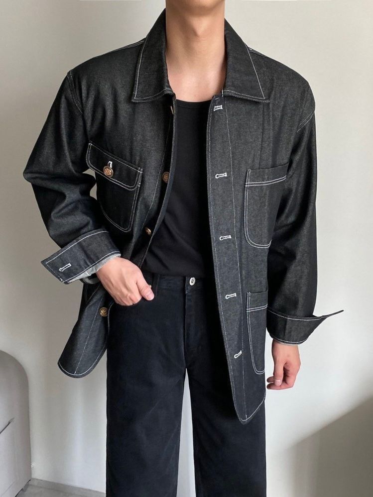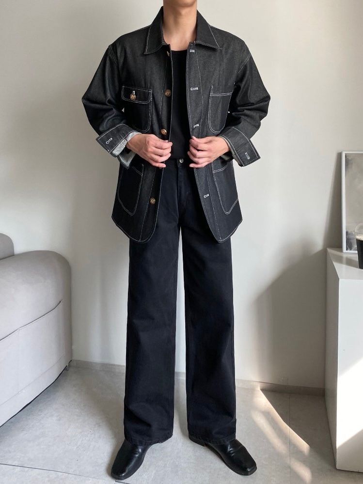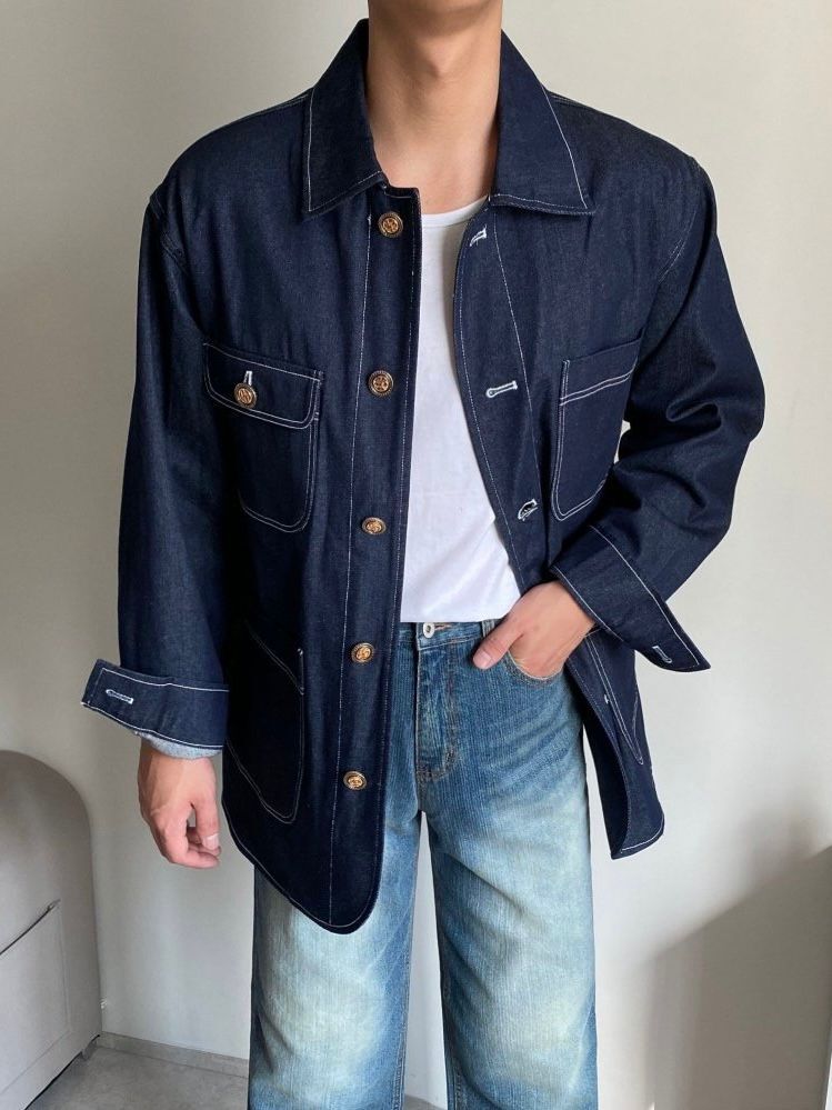 淨色扣鈕牛仔褸 C_y-116JK